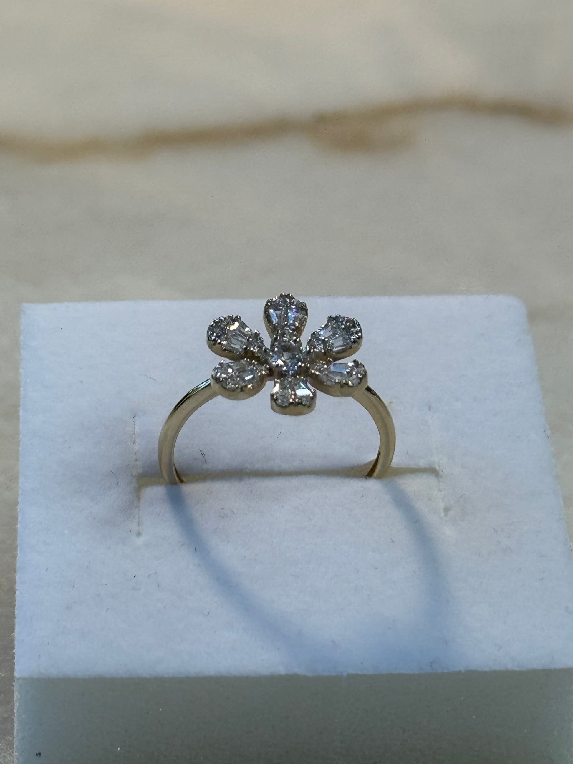 🌸 14K Gold Flower Ring with Cubic Zirconia 🌸
