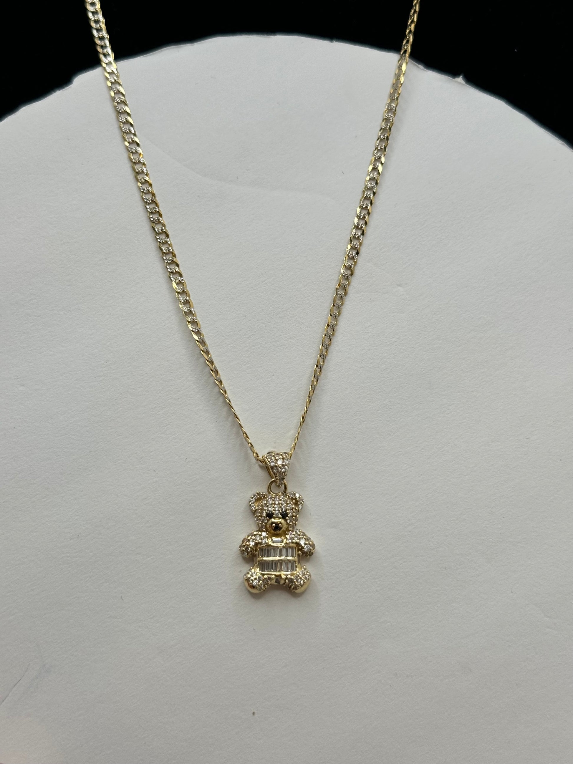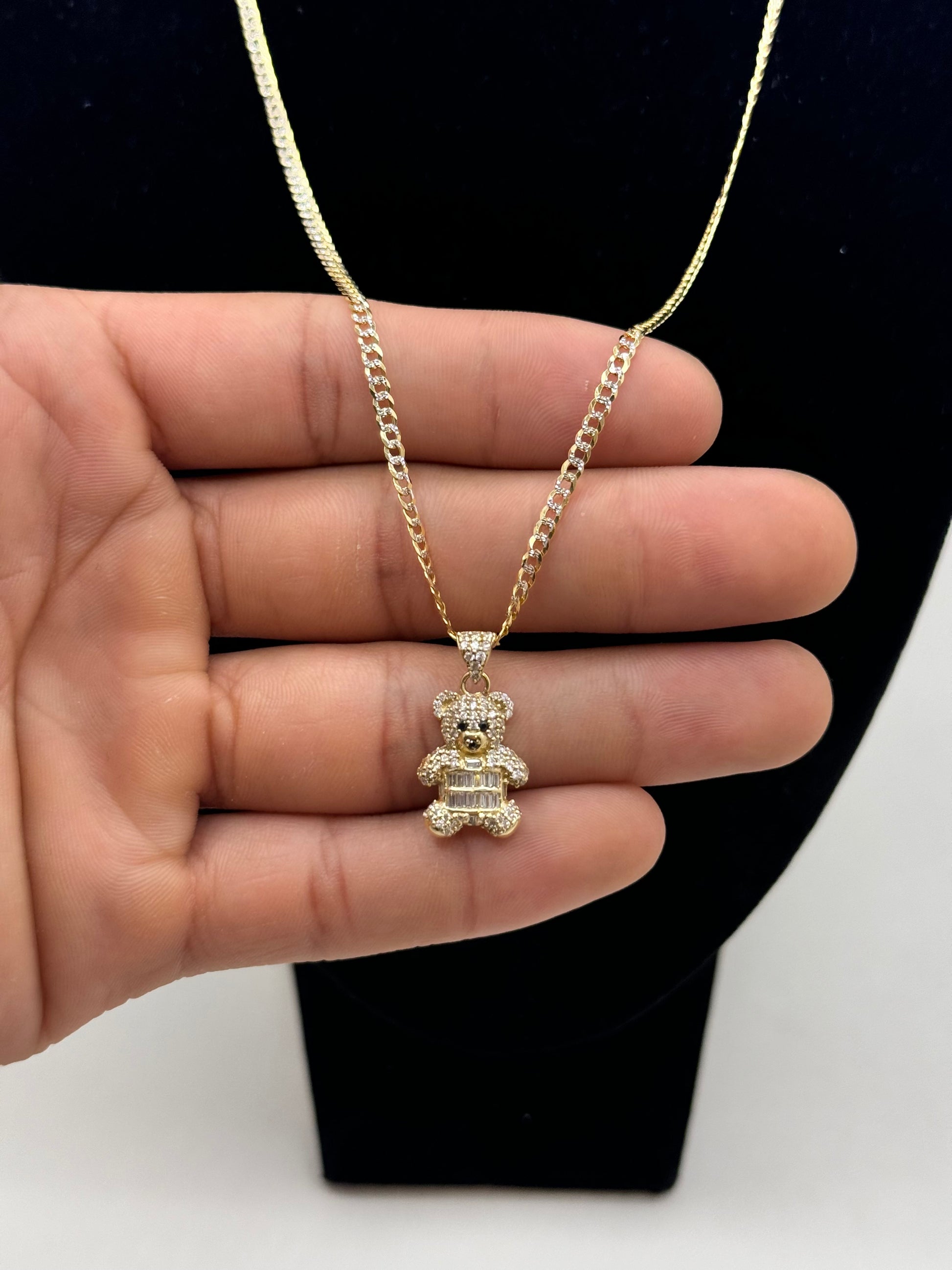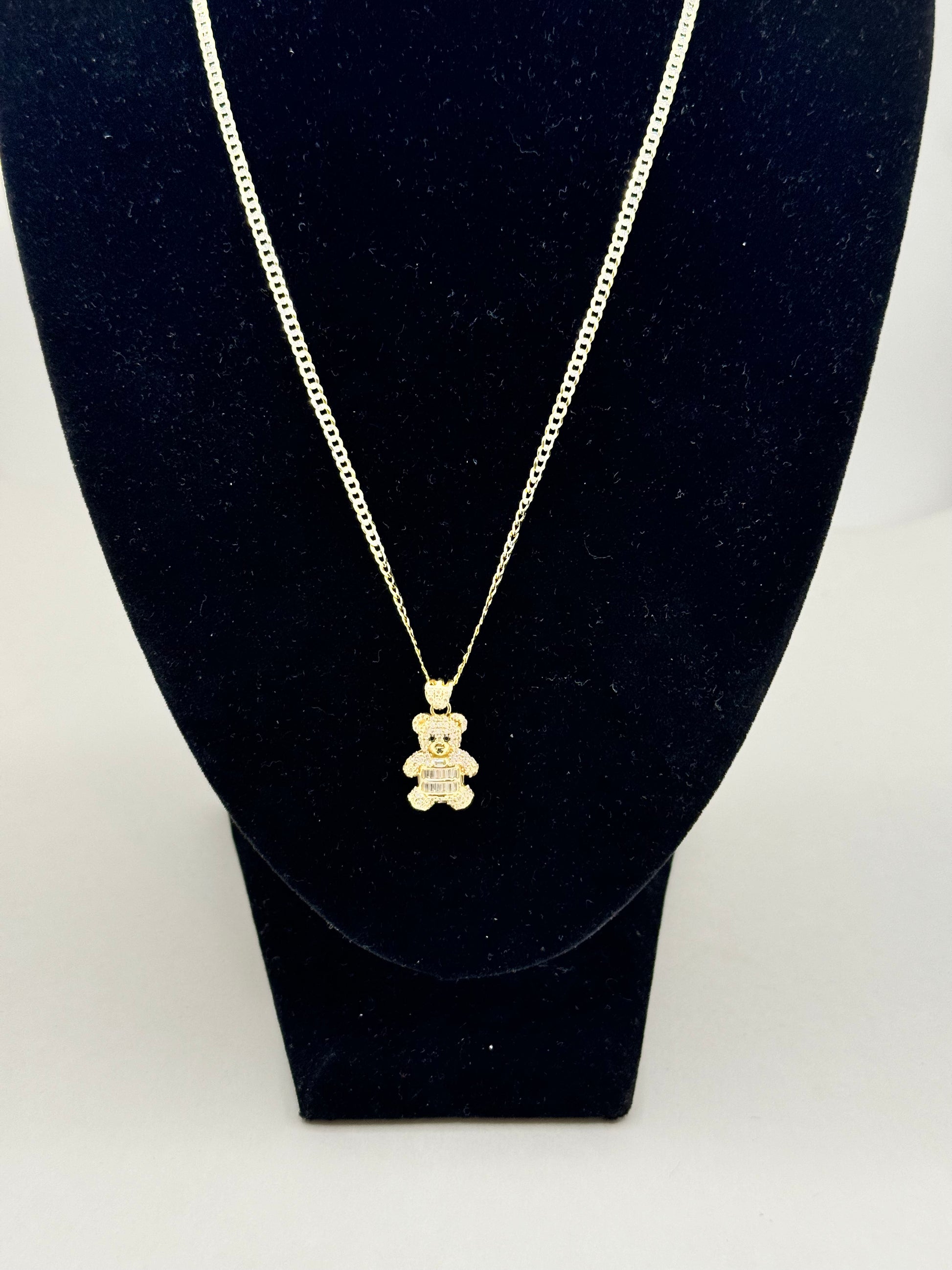 14K Gold 2-Tone Chain with Teddy Bear Pendant – Adorable Elegance
