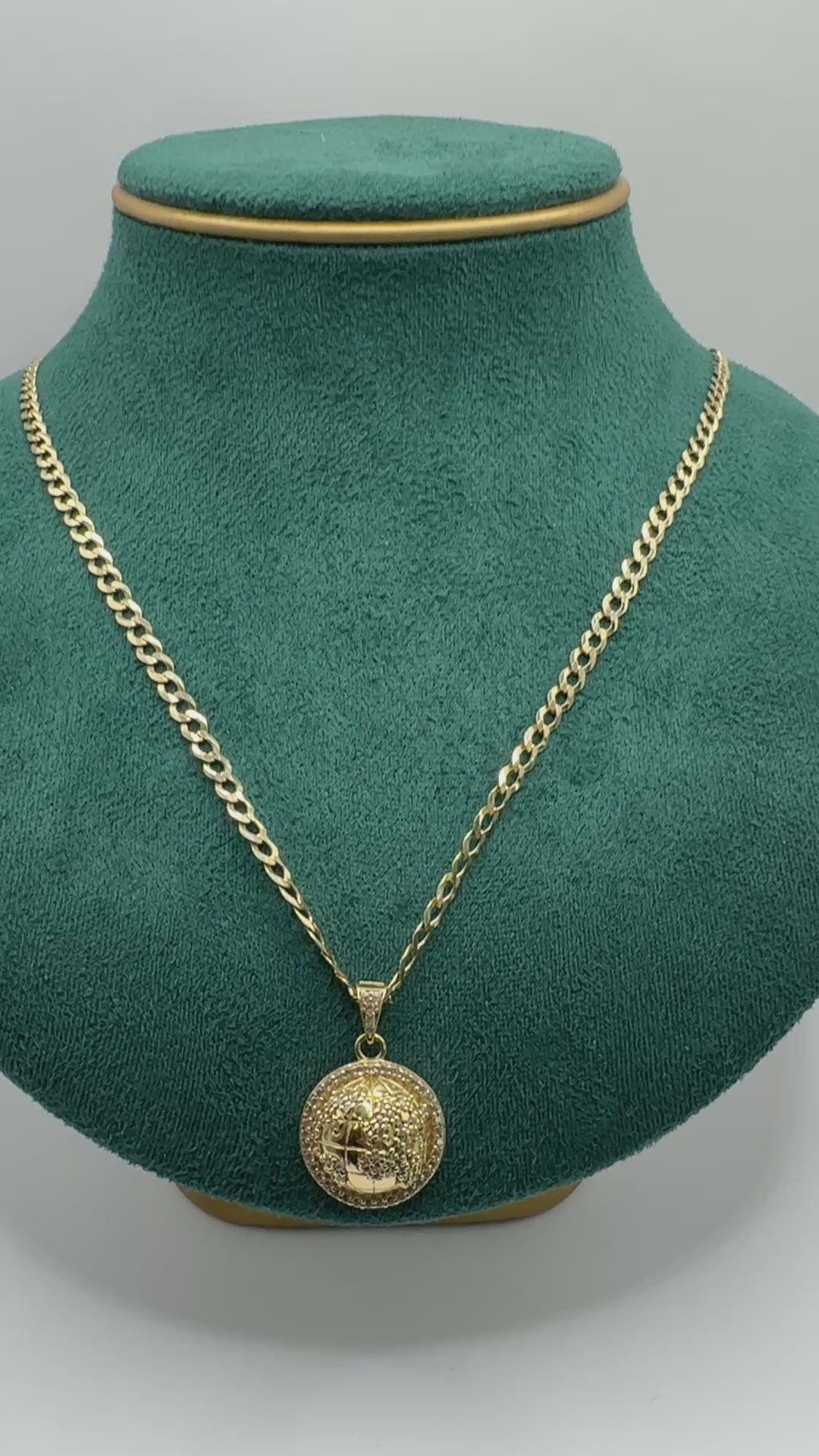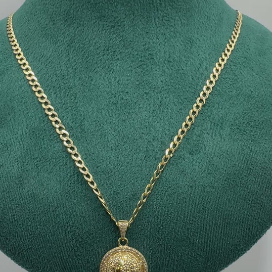 π 14K Gold Curb Link Chain with World Pendant β 24 Inches | Unisex