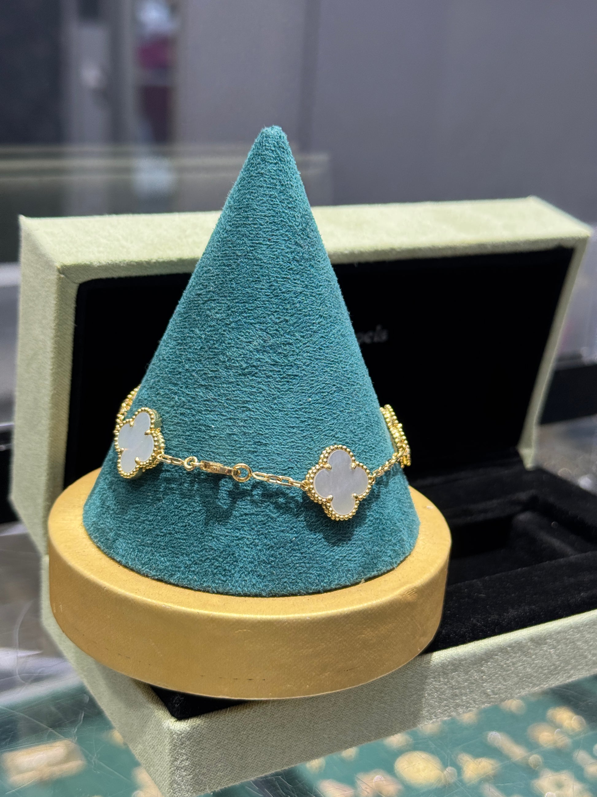 ✨ Elegant and timeless, this 18K gold VL clover bracelet is designed for women who appreciate luxury with meaning. The clover symbol represents luck, love, and prosperity, making it perfect for everyday wear or a special gift.