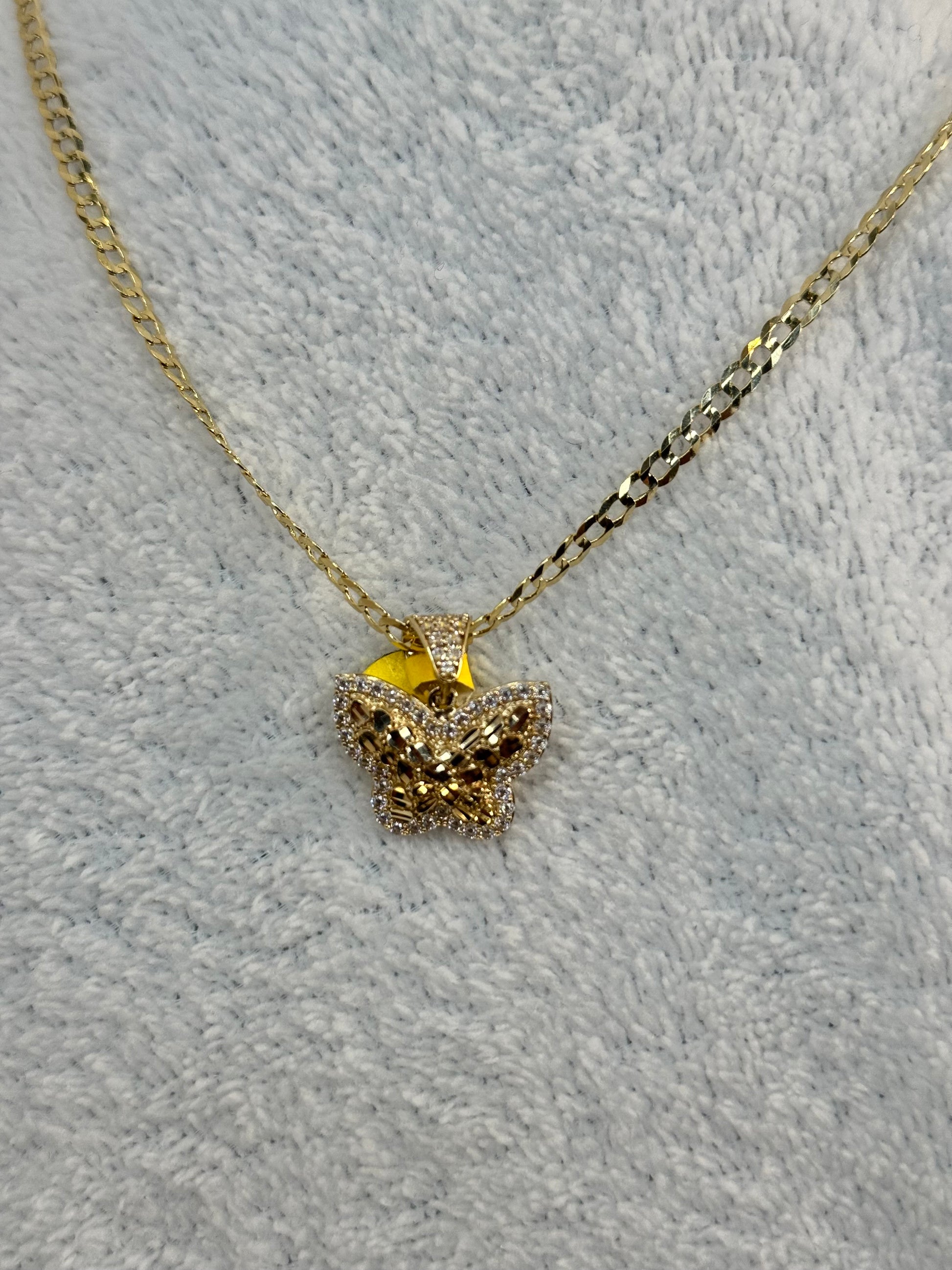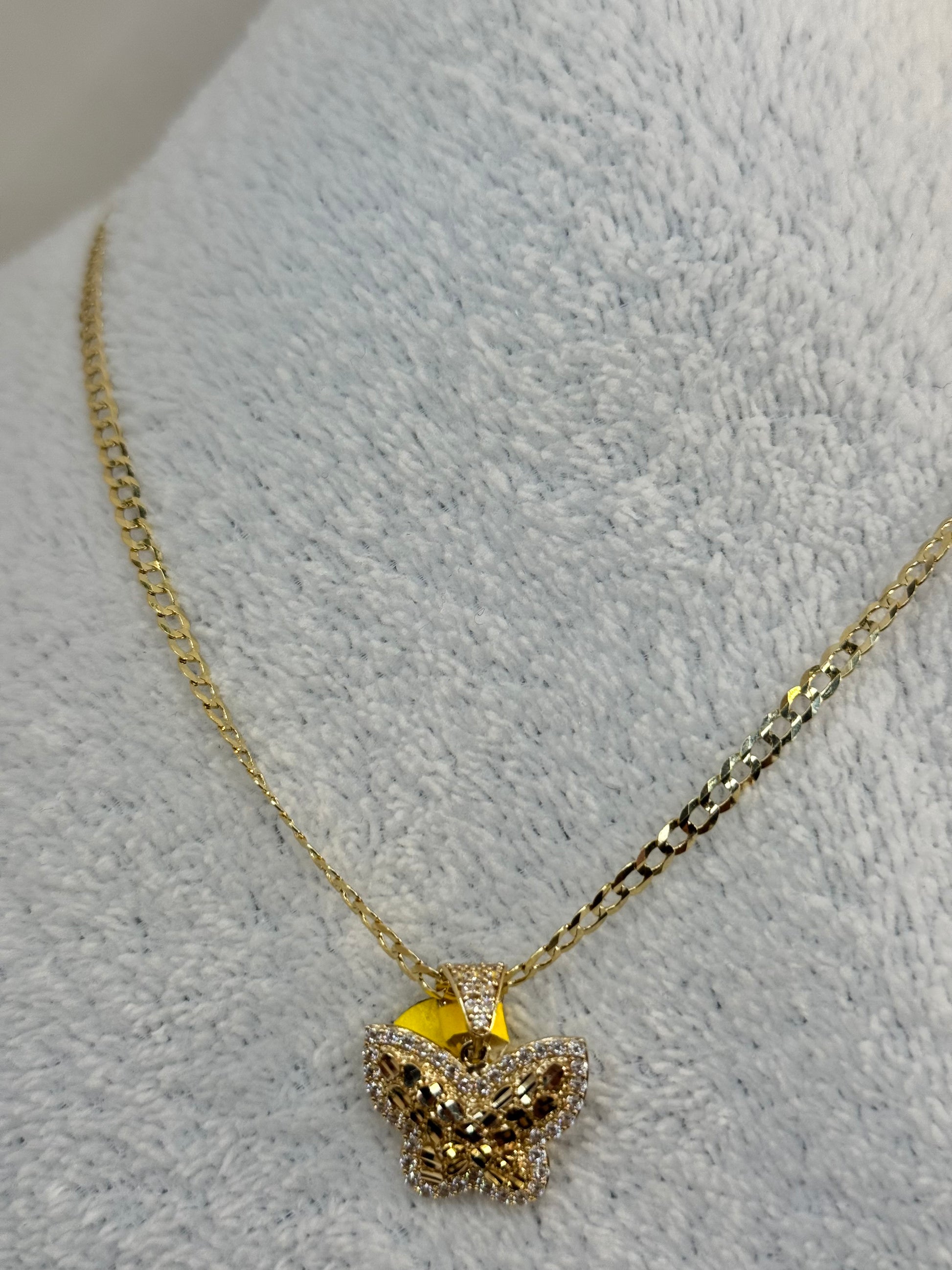 14k gold 16 inch curbed link necklace with butterfly pendant
