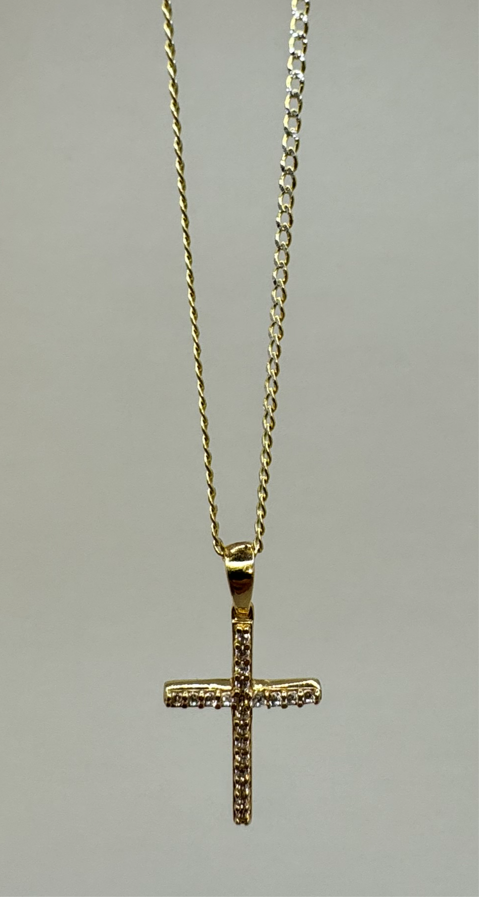 14k Gold 2 tone Cuban link chain necklace with cross pendant