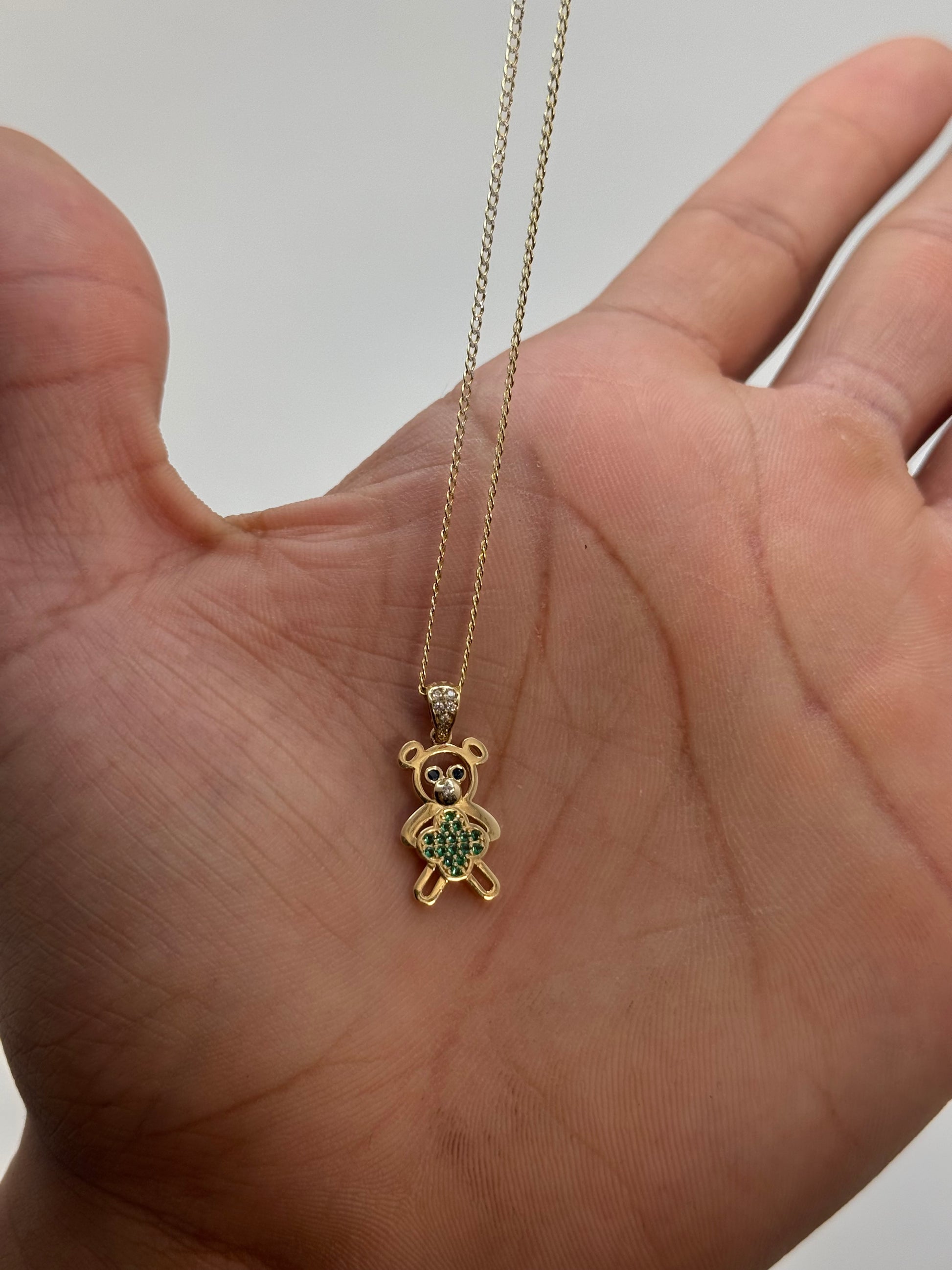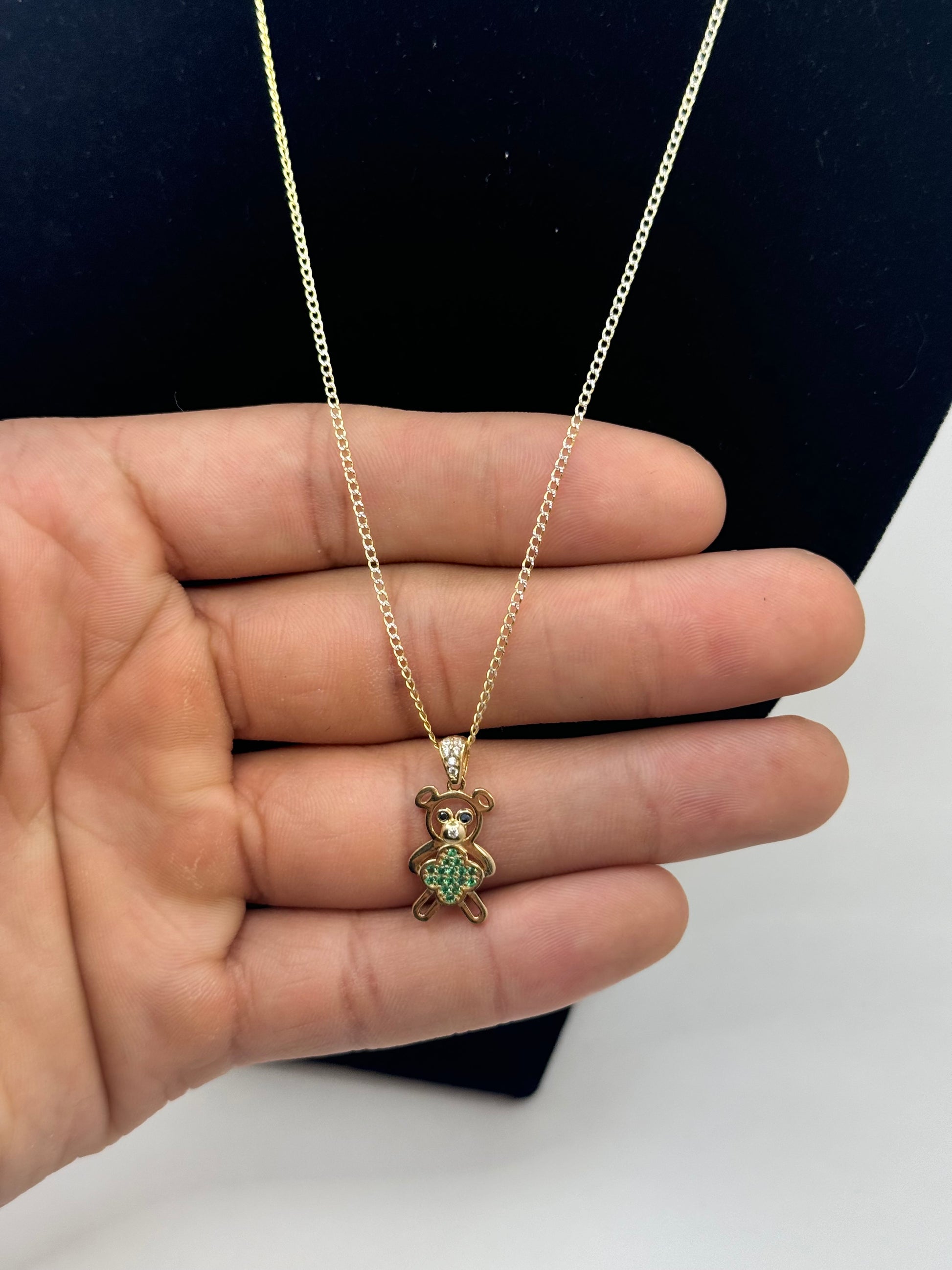 14k Gold 2 tone Cuban link with teddy bear pendant unisex