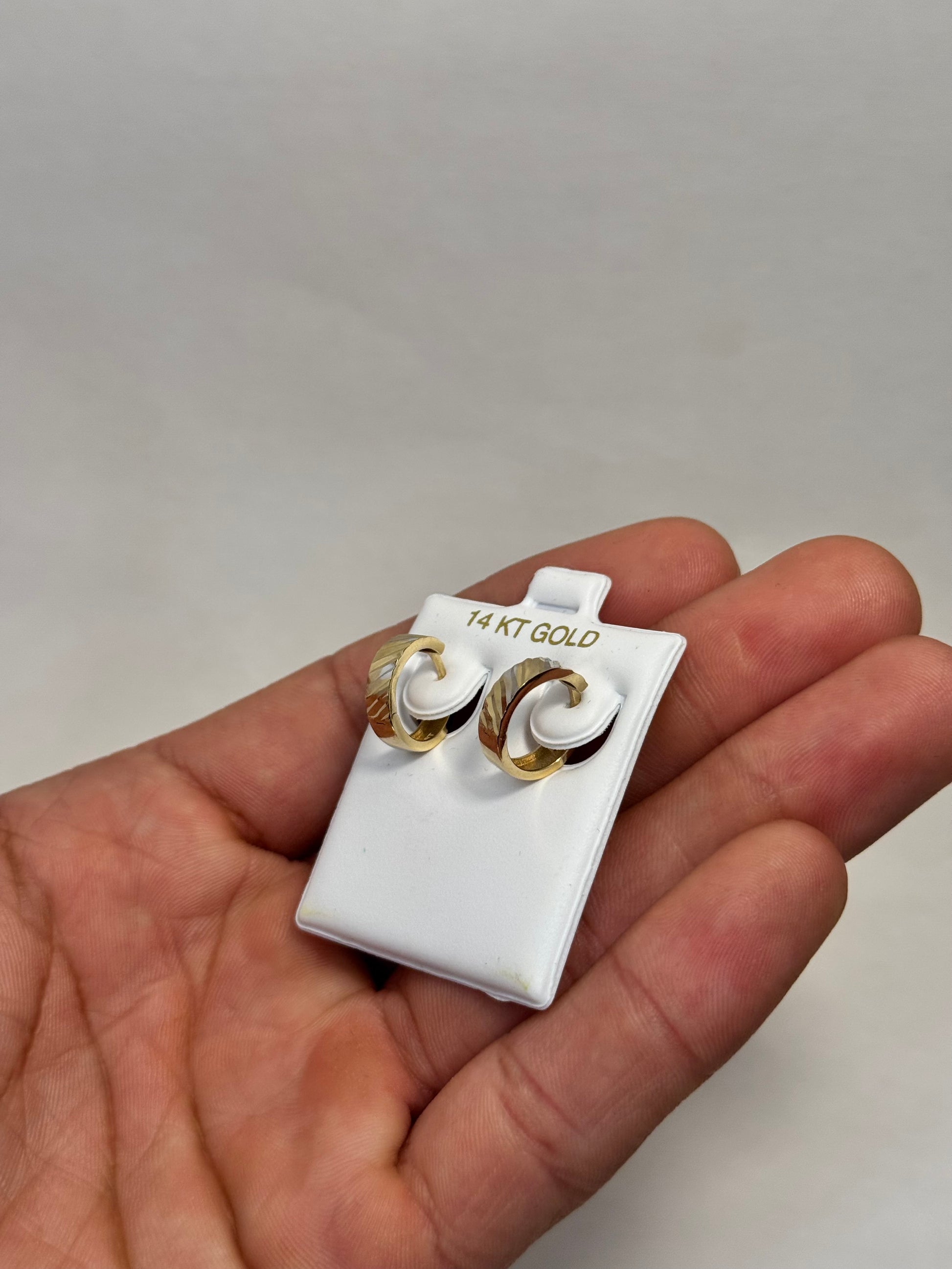 14k gold 2 tone round earrings for men