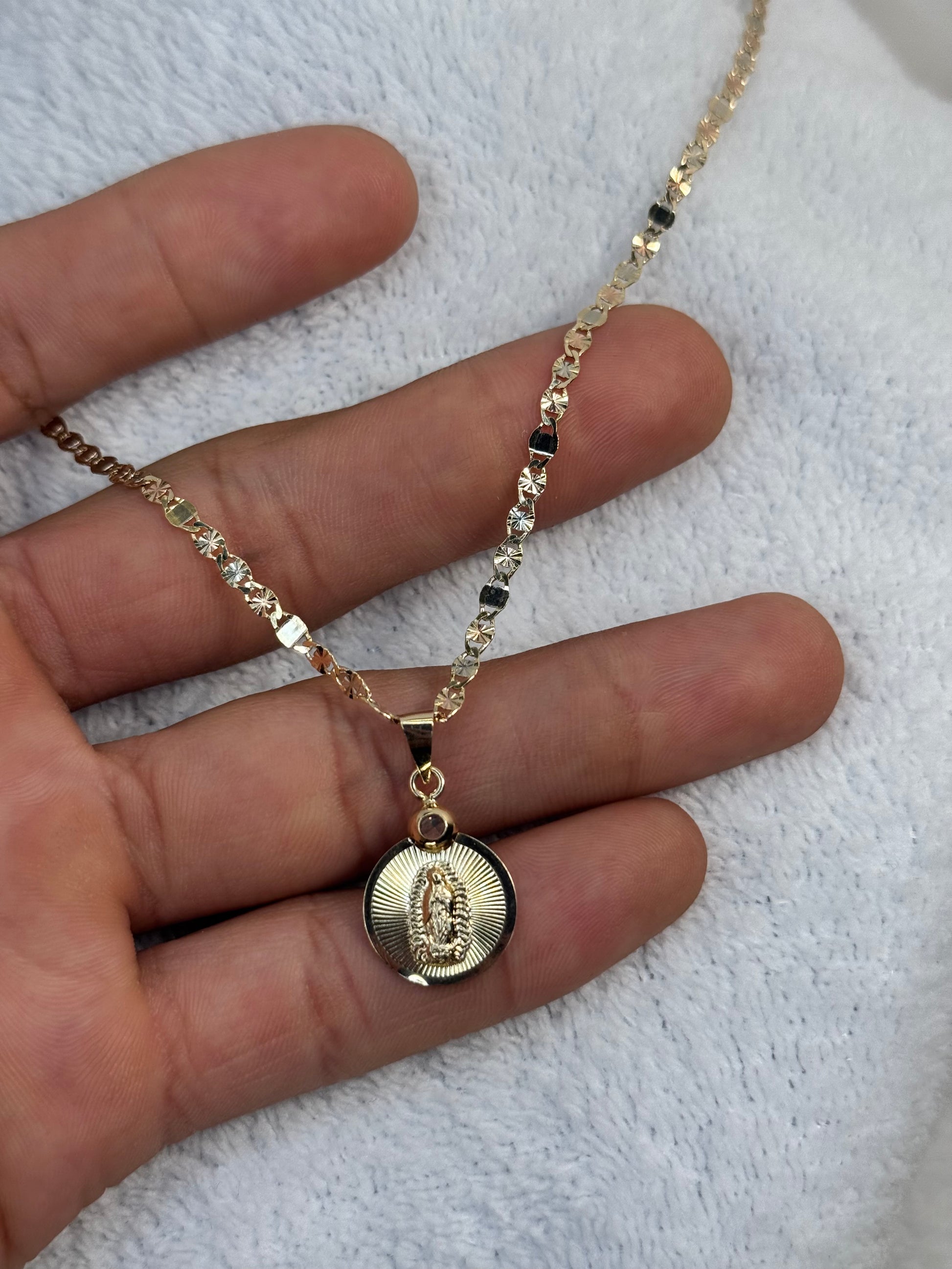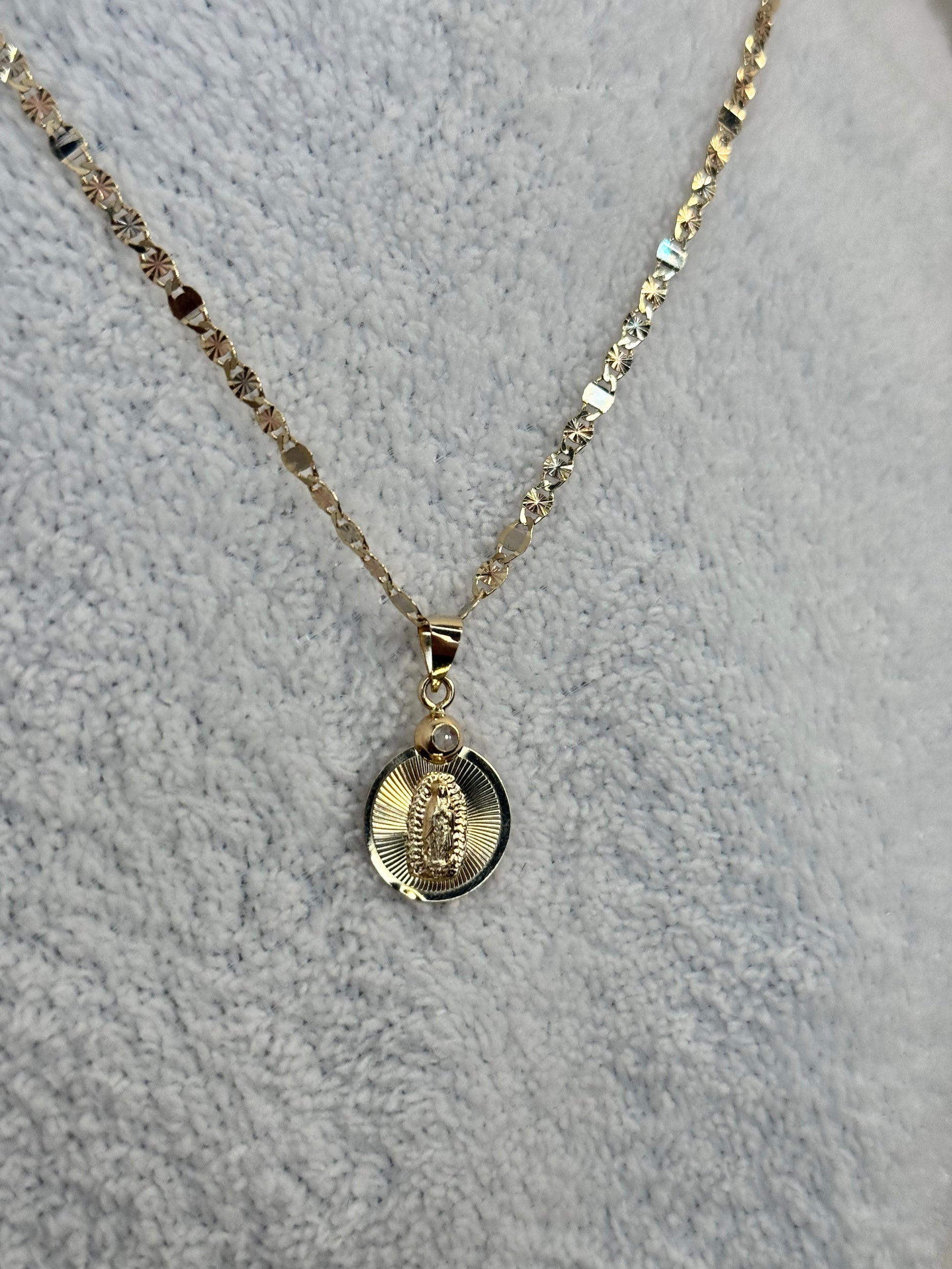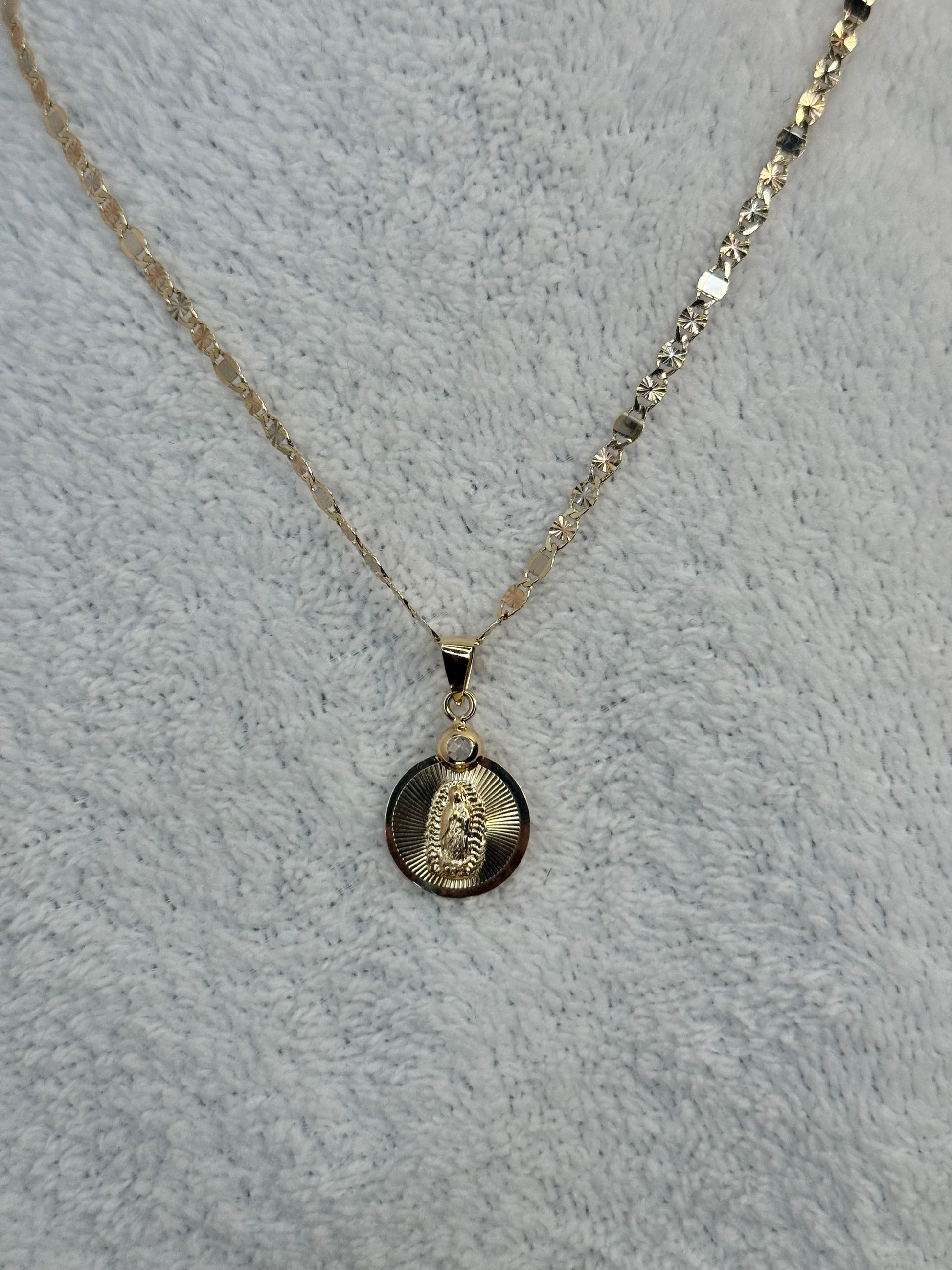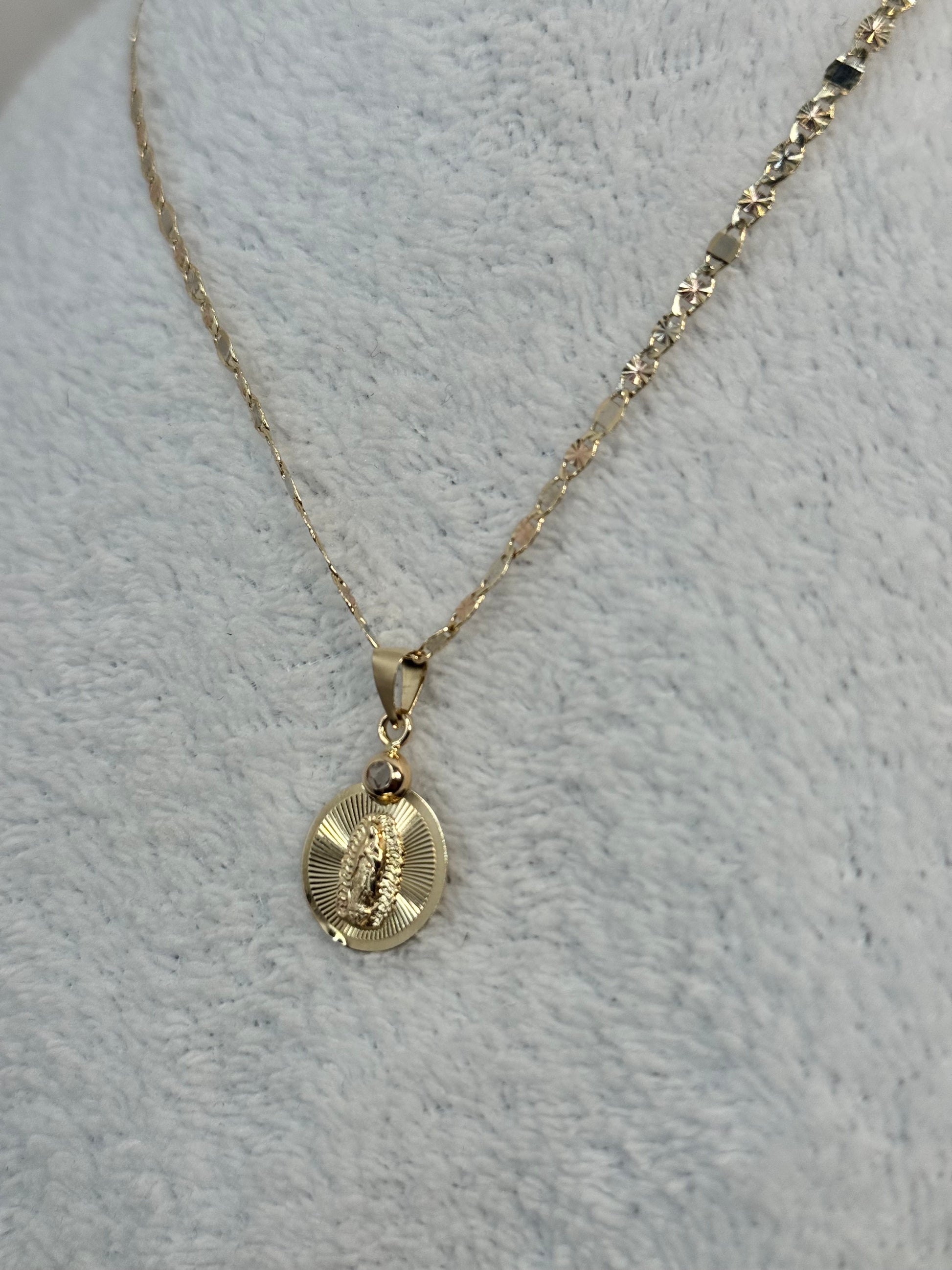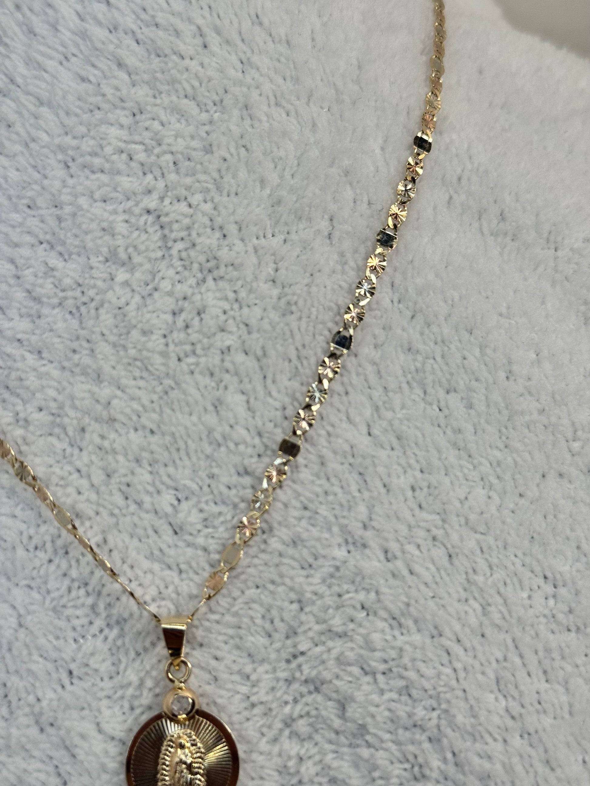 14k Gold 3 tone chain necklace with Virgin Mary pendant