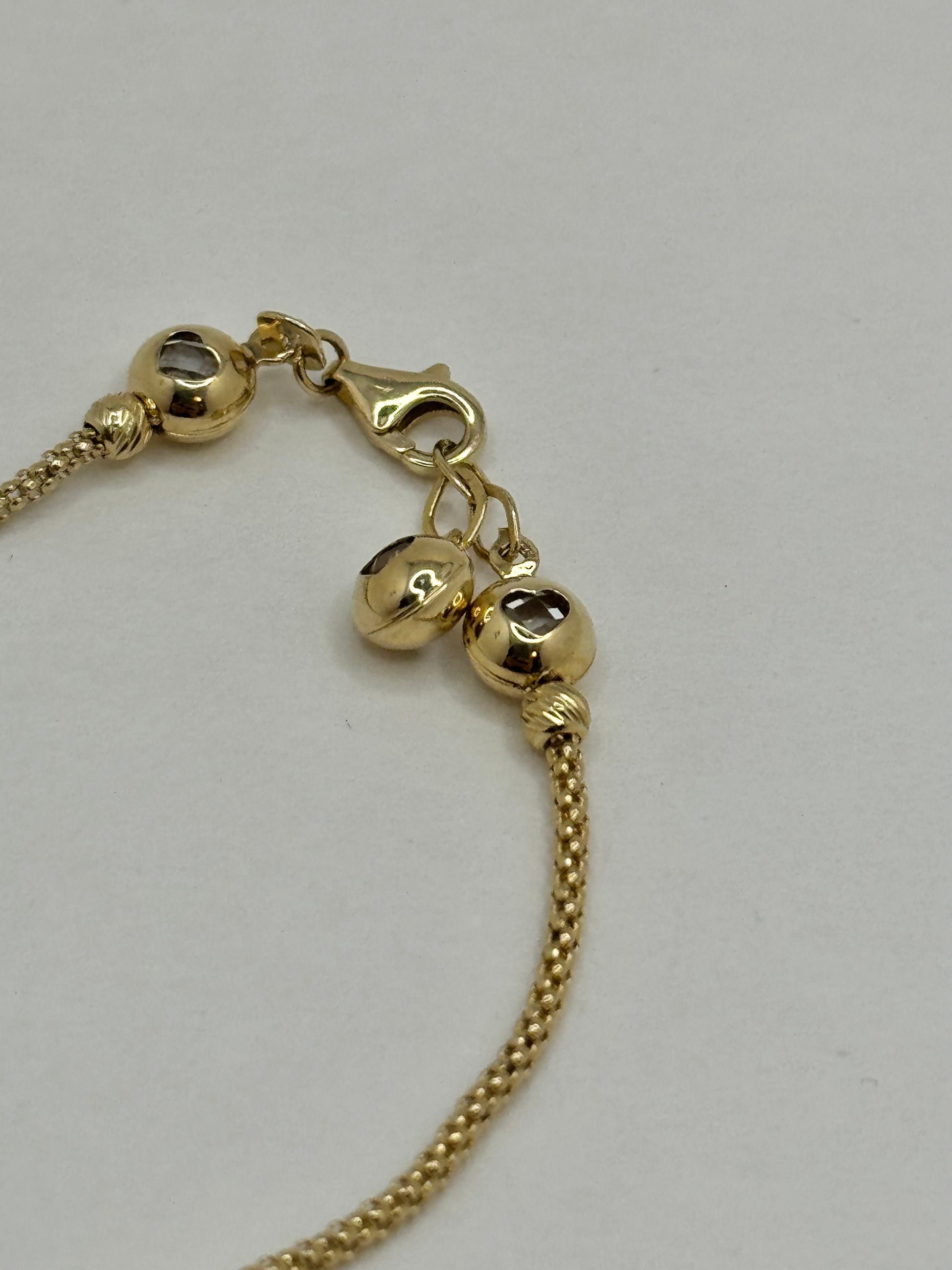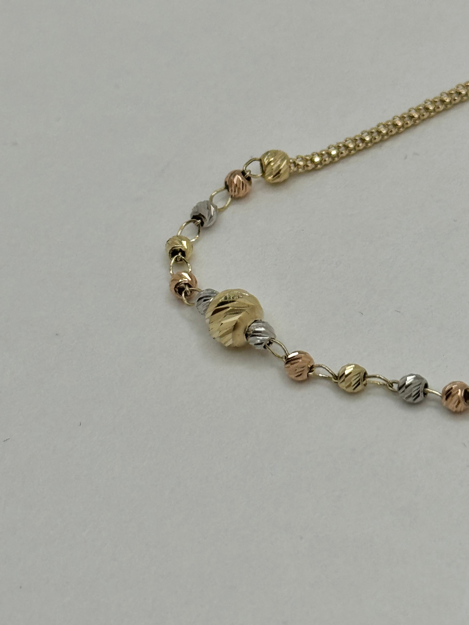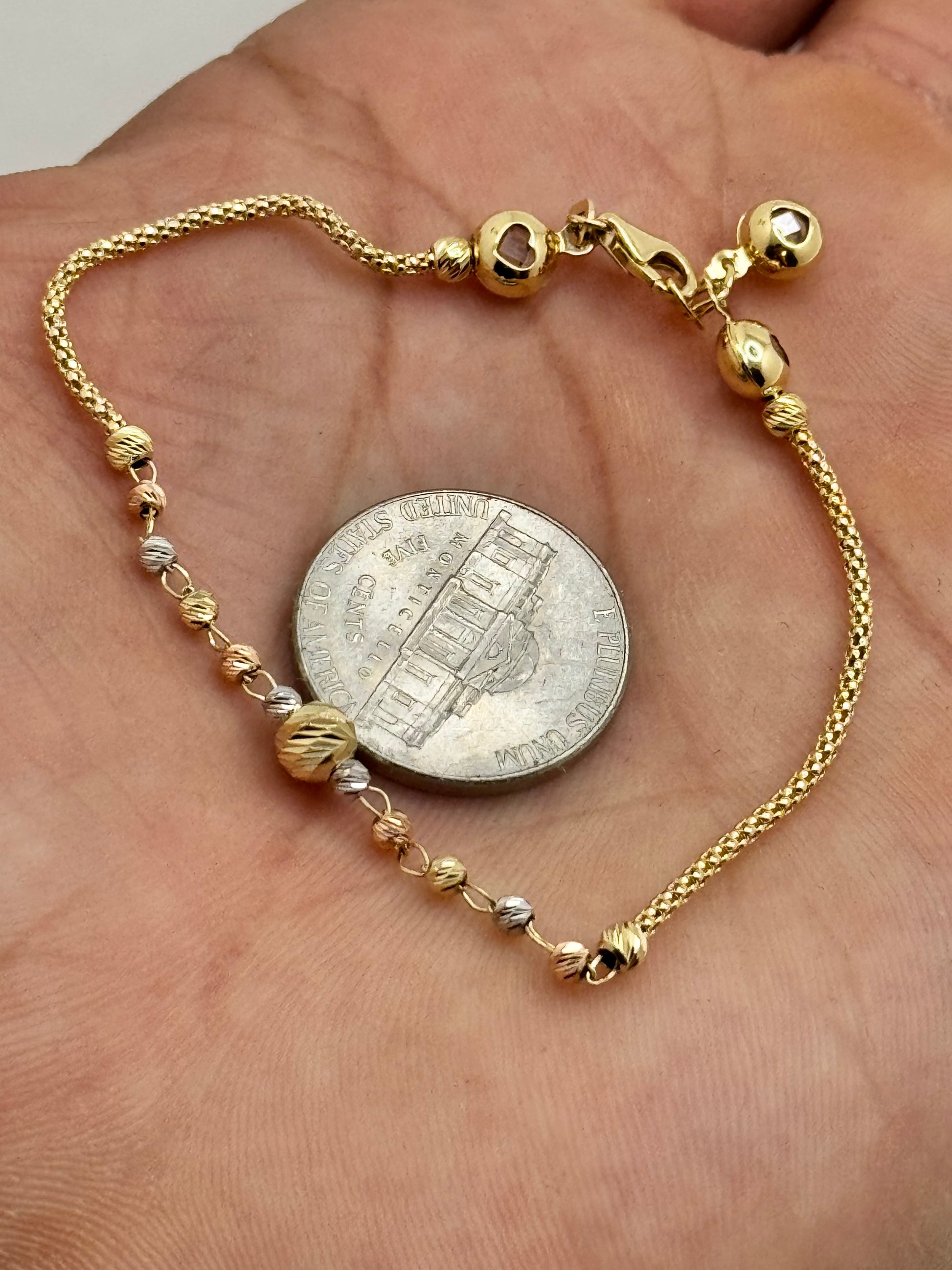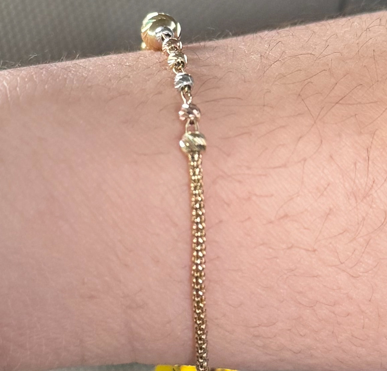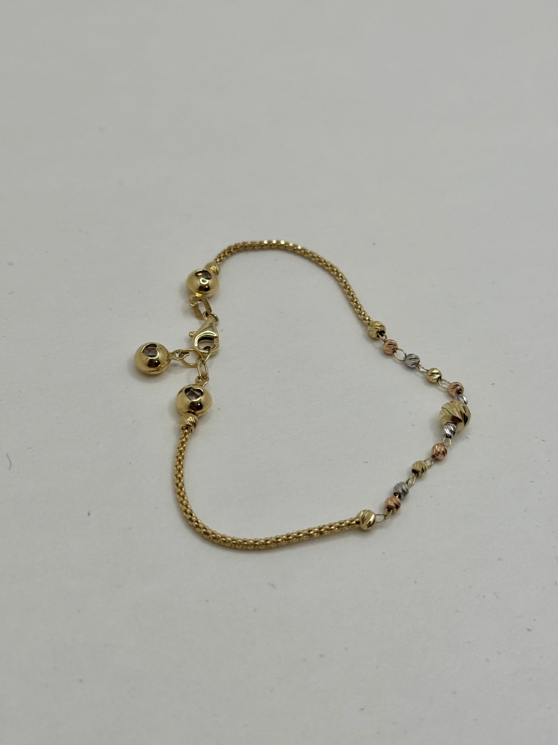 Crafted from 14k yellow gold, this 7-inch bracelet features elegant beaded stations along its length for a stunning and versatile accessory for women