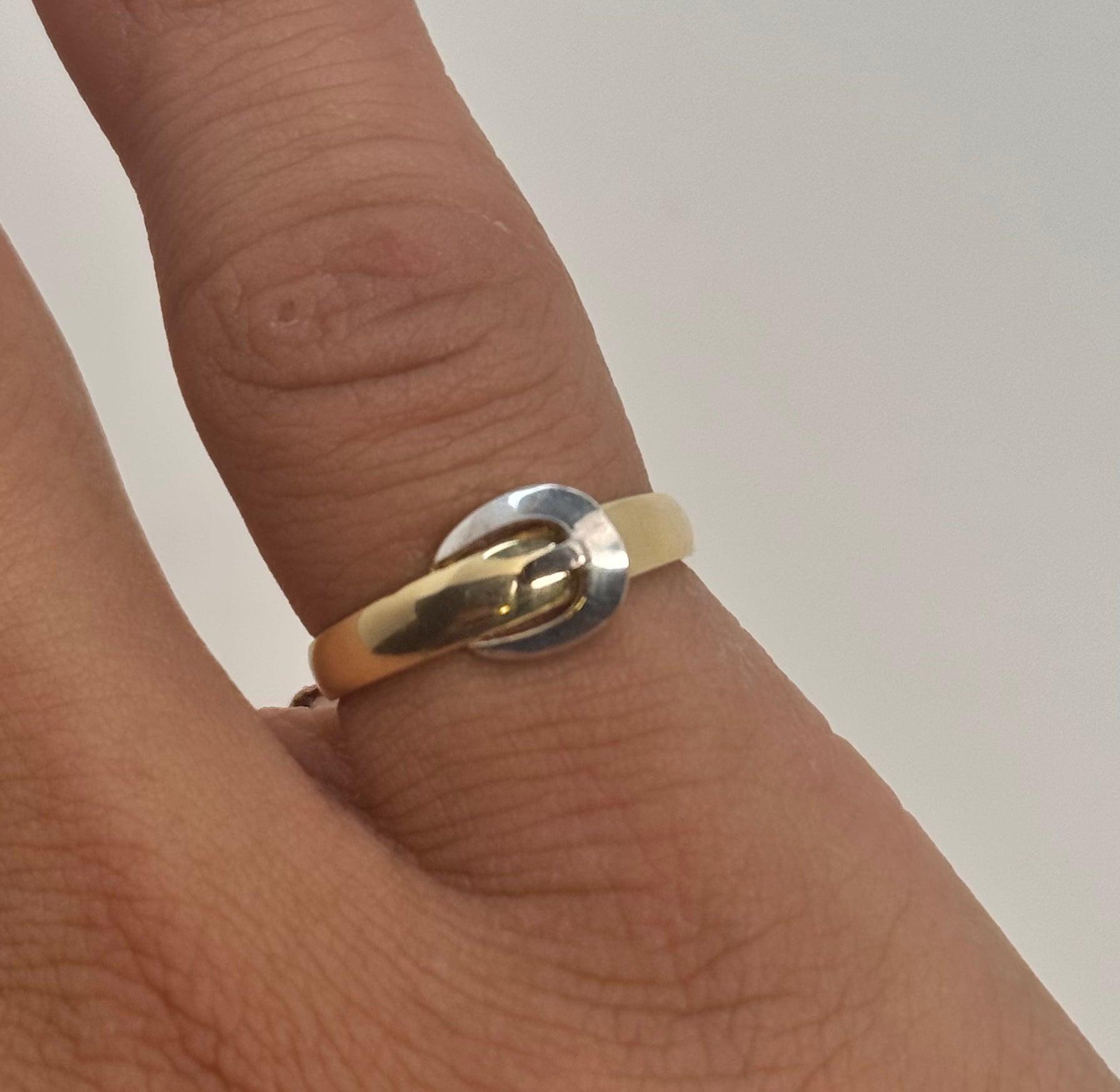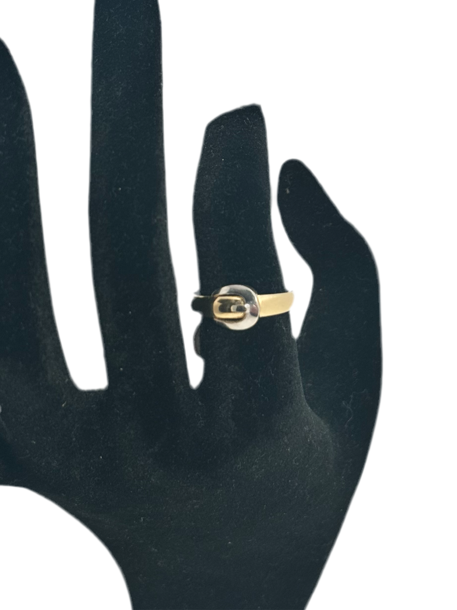 This 14k gold belt buckle ring in size 6.5 is a perfect accessory for any woman. Crafted from high-quality gold, it adds a touch of elegance and sophistication to any outfit. With its unique belt buckle design, it will make you stand out and add a stylish statement to your look.
