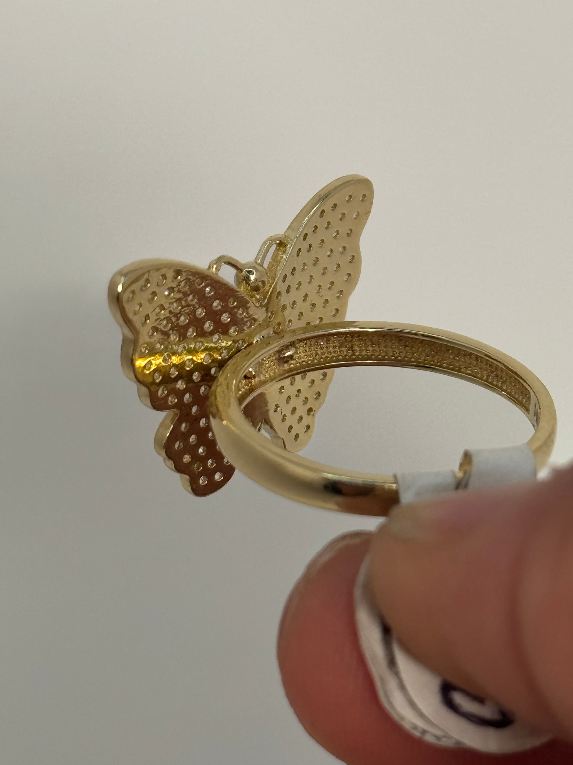 This 14K solid gold Butterfly ring is the perfect accessory for any woman. The delicately crafted design features a beautiful butterfly in a size 8, making it a unique and elegant addition to any outfit. With its high quality 14K gold material, this ring will add a touch of luxury to your look.