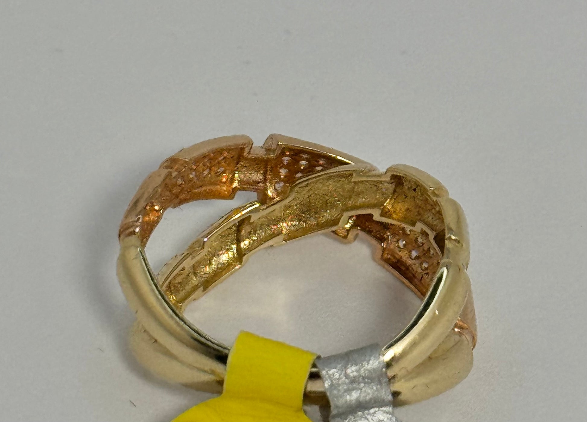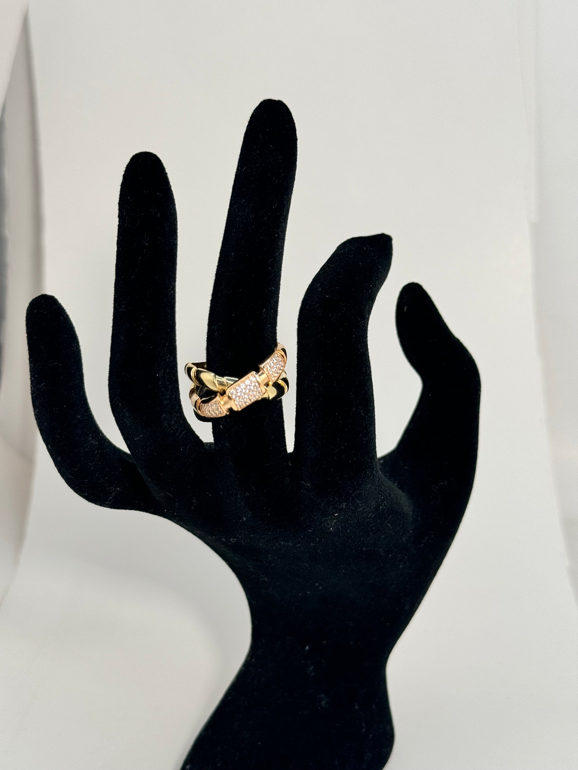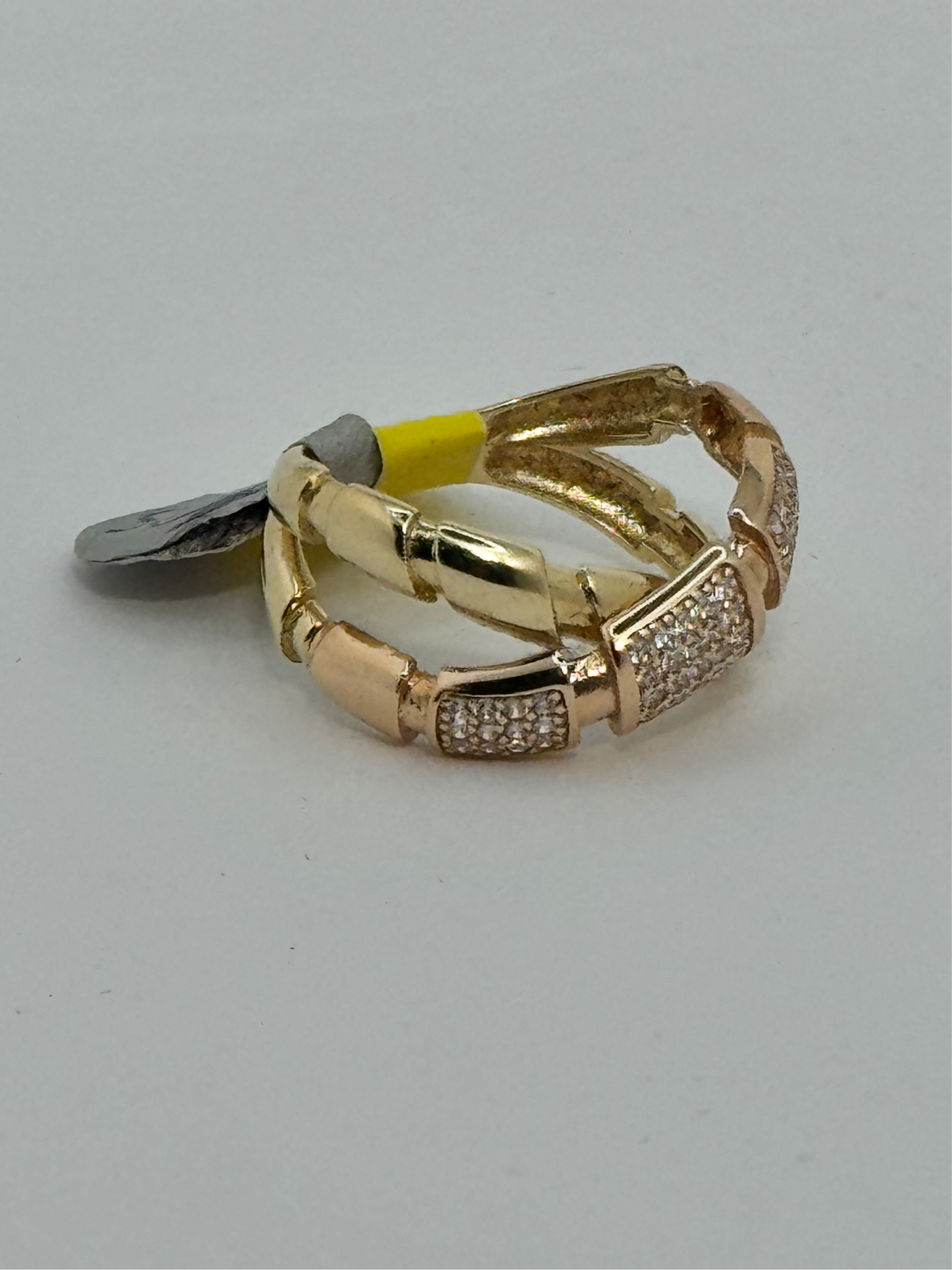 14k Gold Criss cross ring for woman with zirconia stones