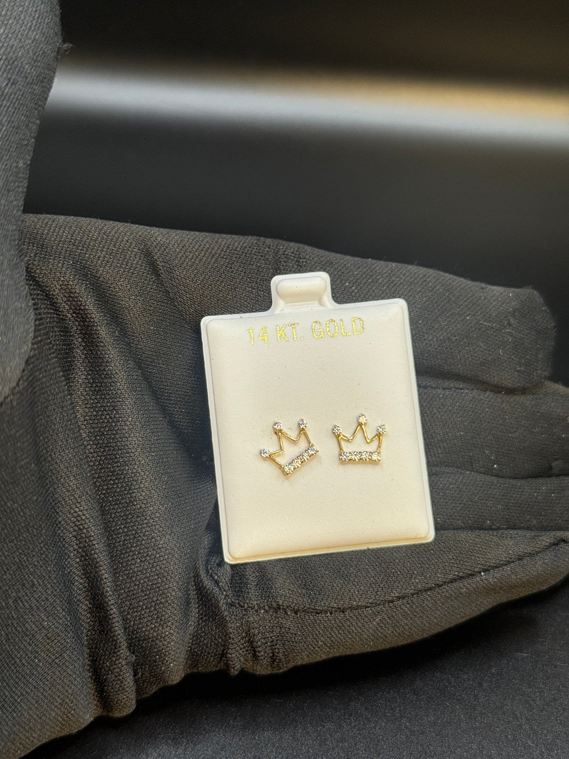 14K Gold Crown Stud Earrings for Women – Sparkling Royalty 💎