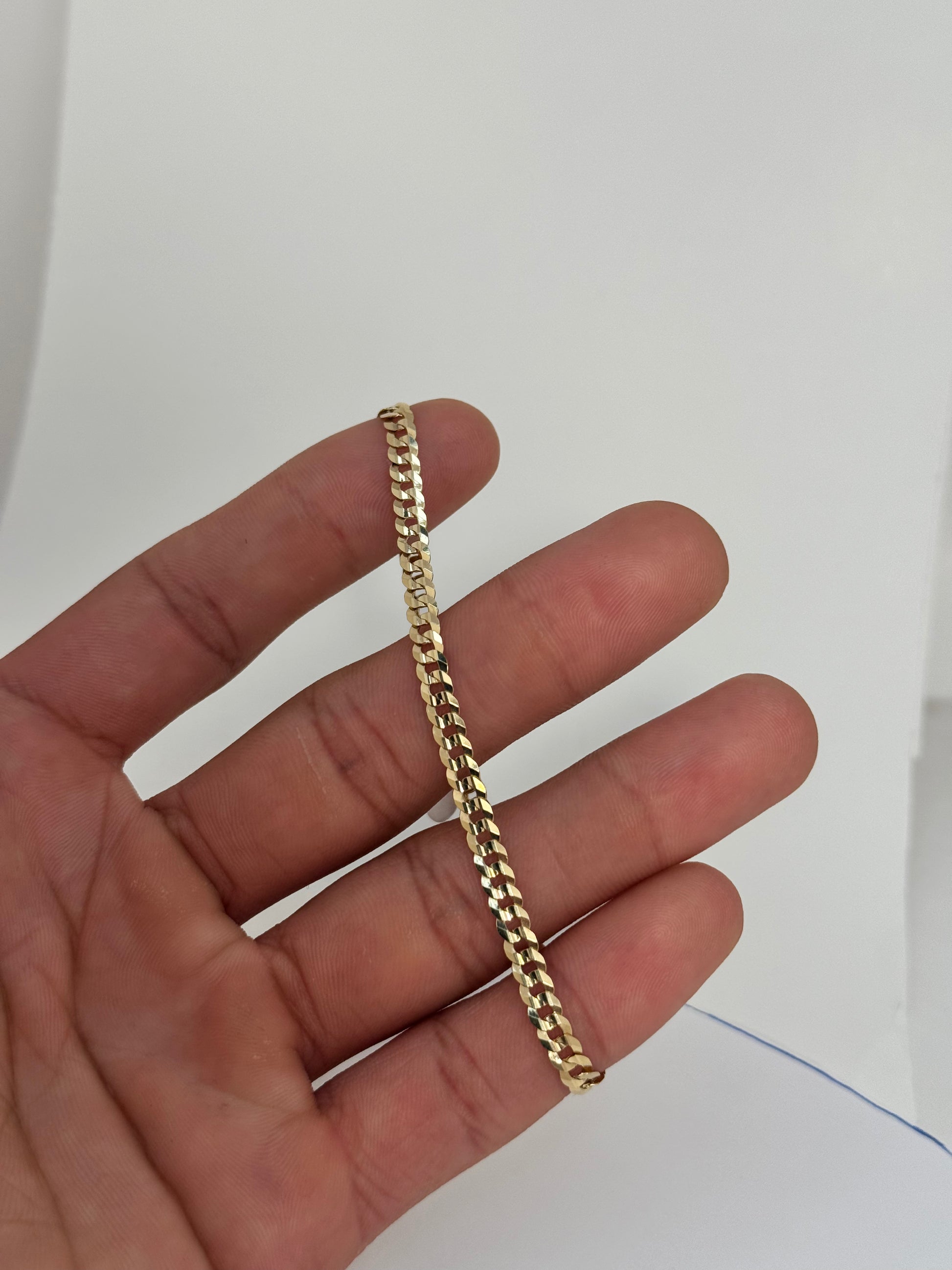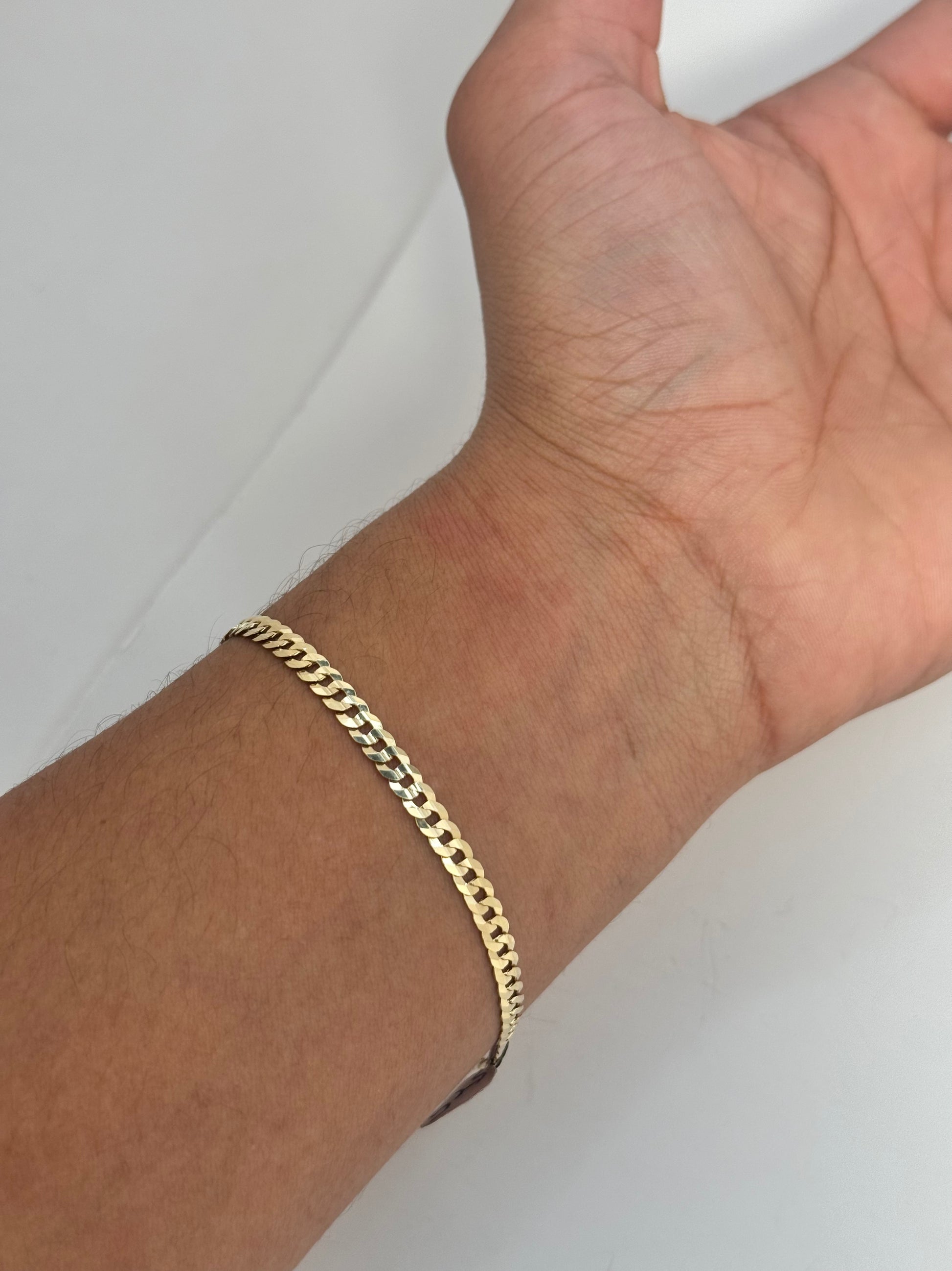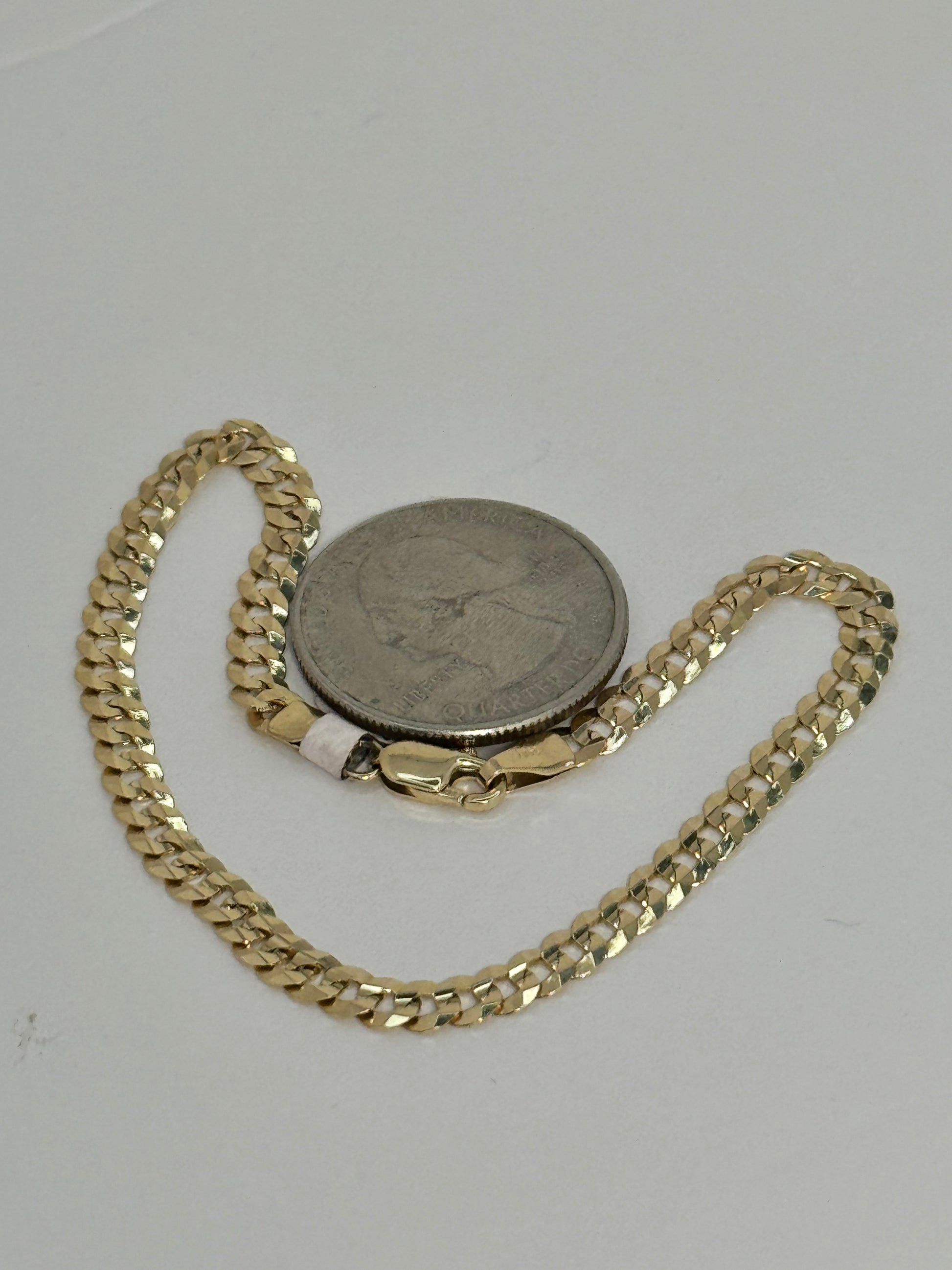 This 14k gold Cuban link bracelet is a timeless and sophisticated piece. Made with single tone yellow gold, it measures 8 inches in length. Crafted with expertise and precision, this bracelet is a stunning addition to any jewelry collection. Its elegant design is sure to make a statement and elevate any outfit.