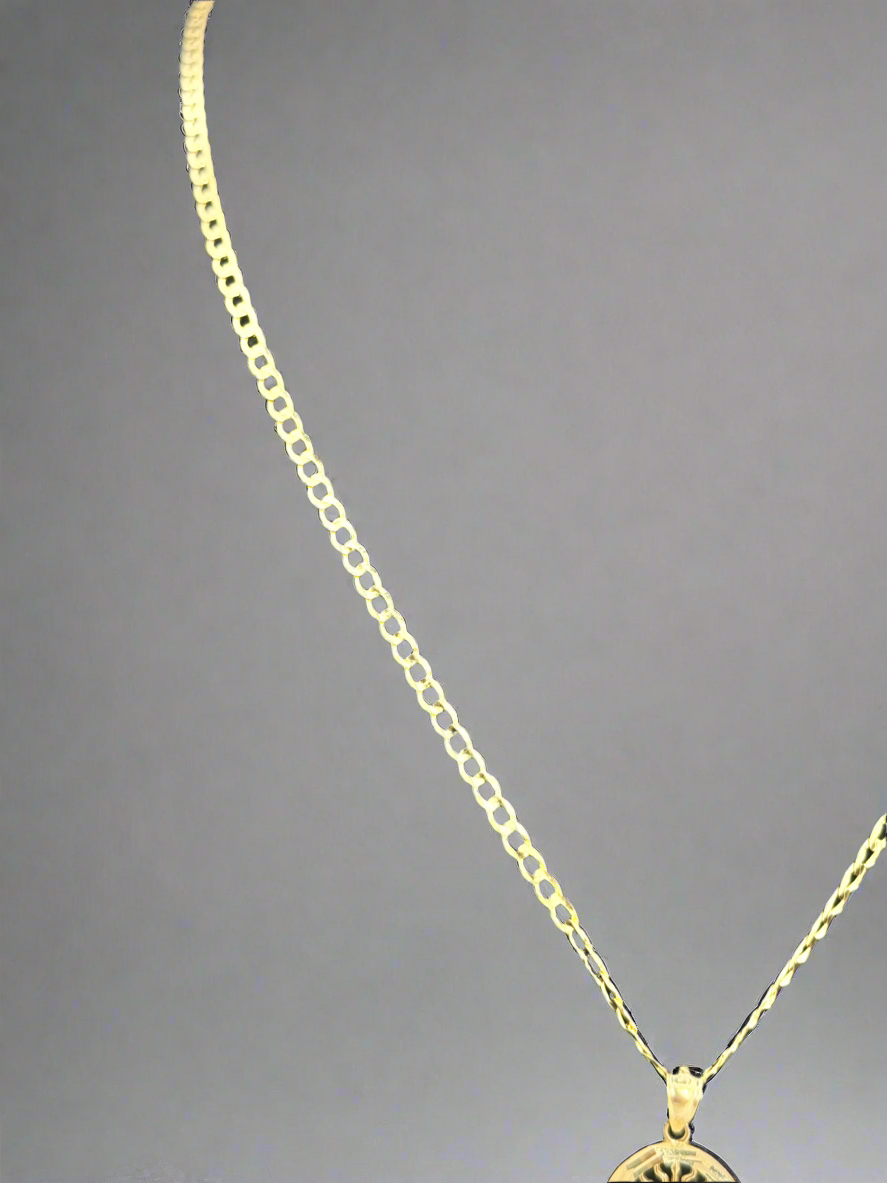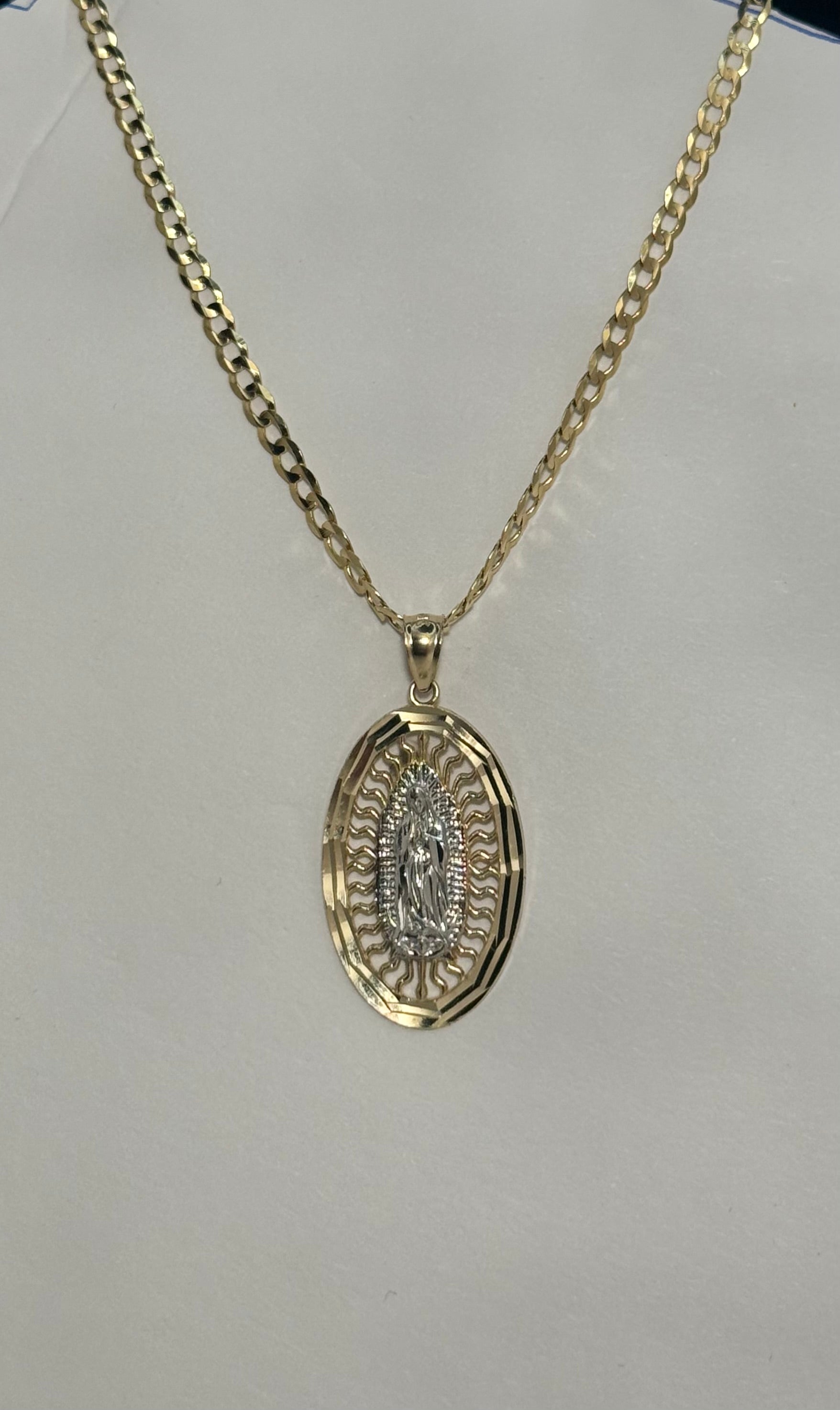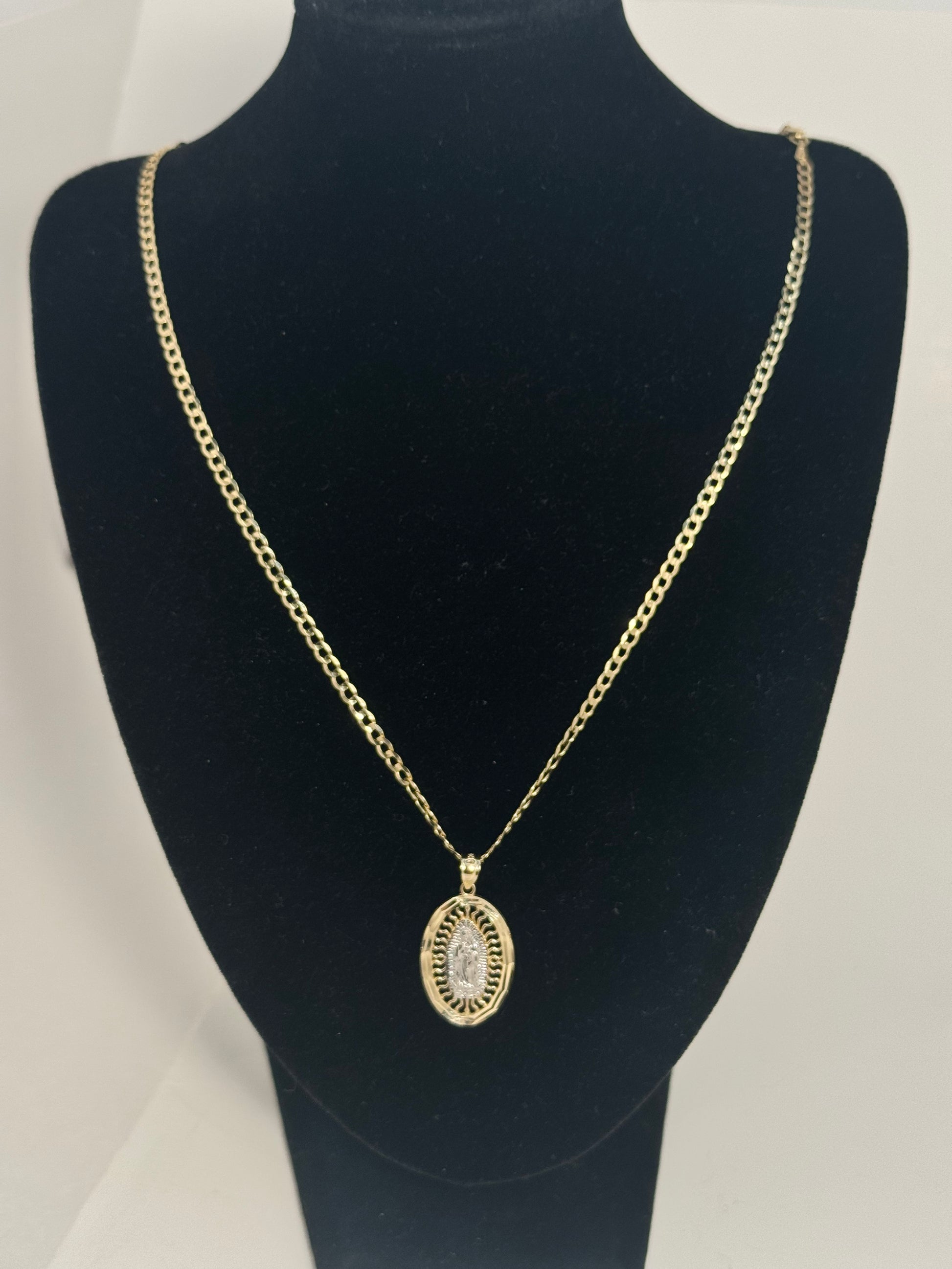 14k gold Cuban link chain necklace with Virgin Mary 2 tone pendant
