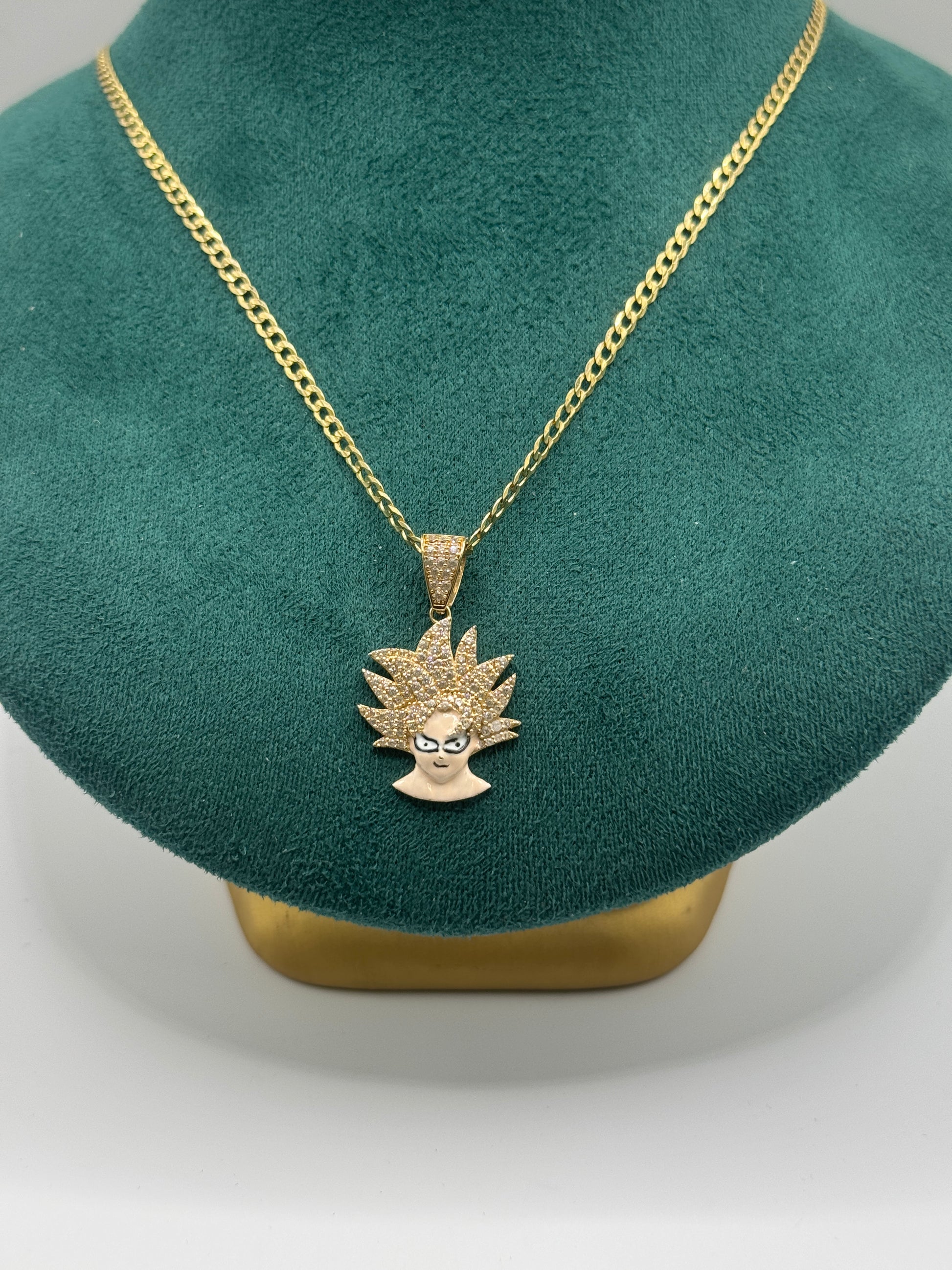 Bold 14K gold curb link chain paired with a detailed Dragon Ball Z character pendant, combining anime culture with real gold luxury. A standout piece for collectors and fans who want style with personality.