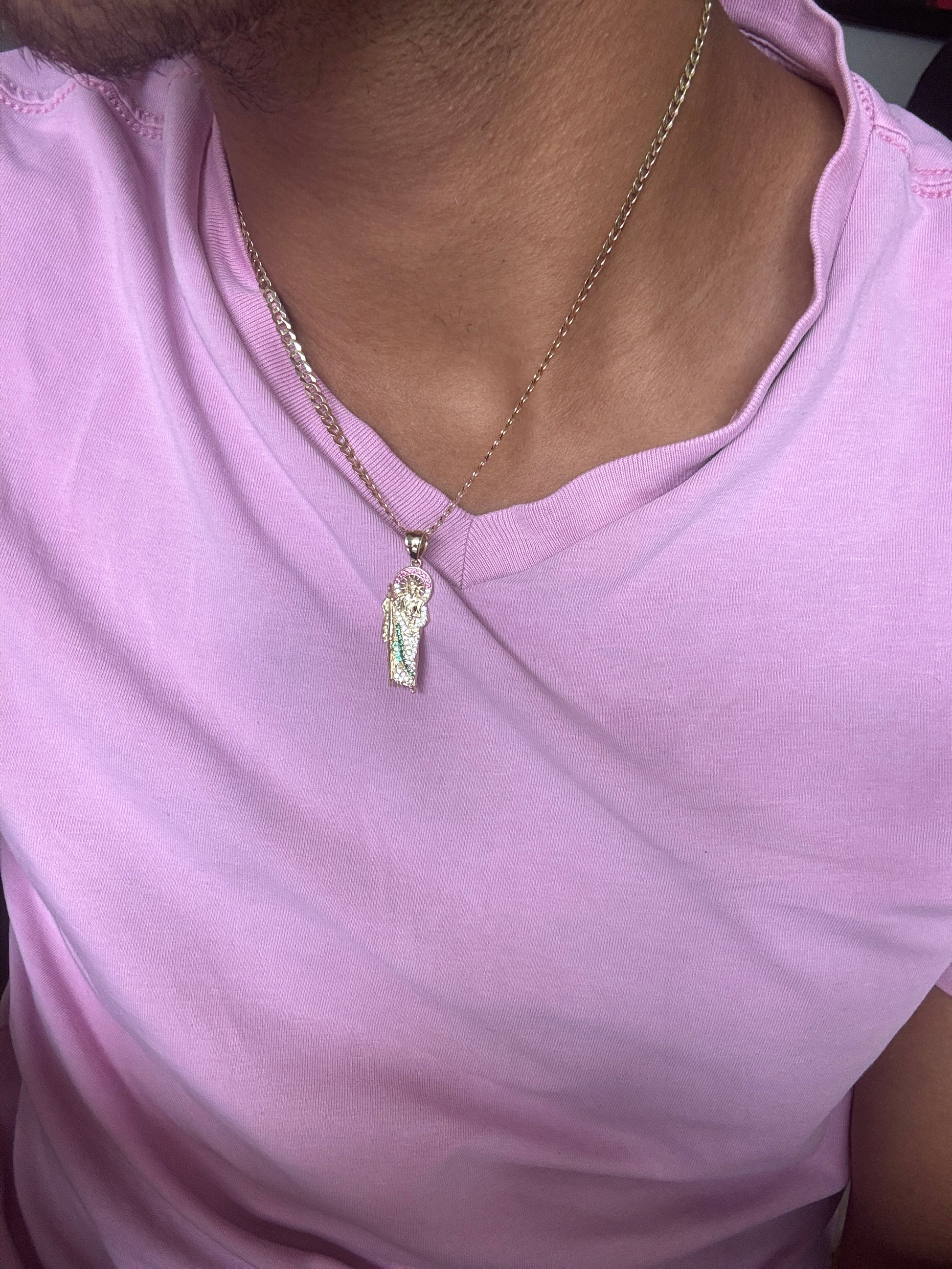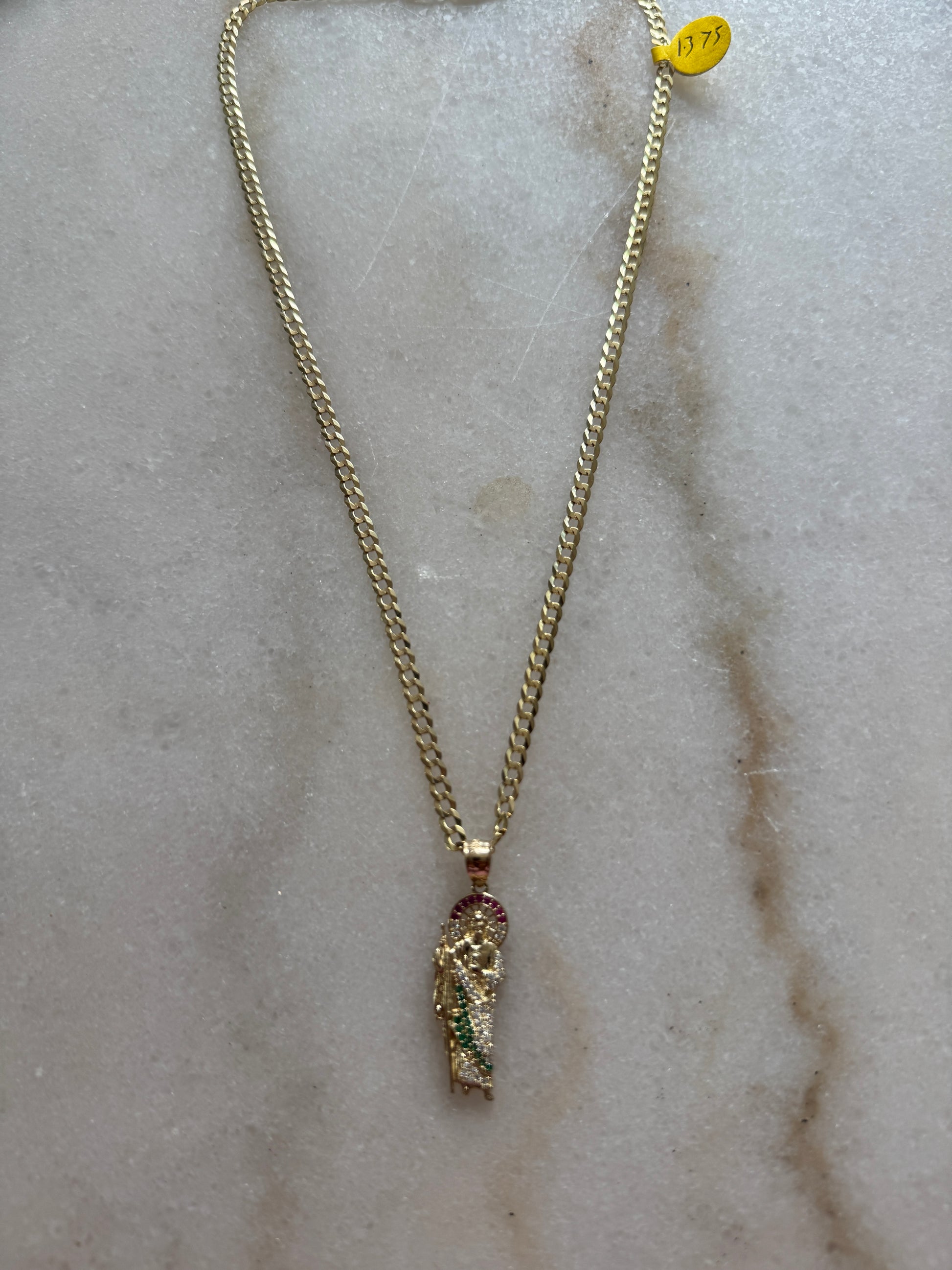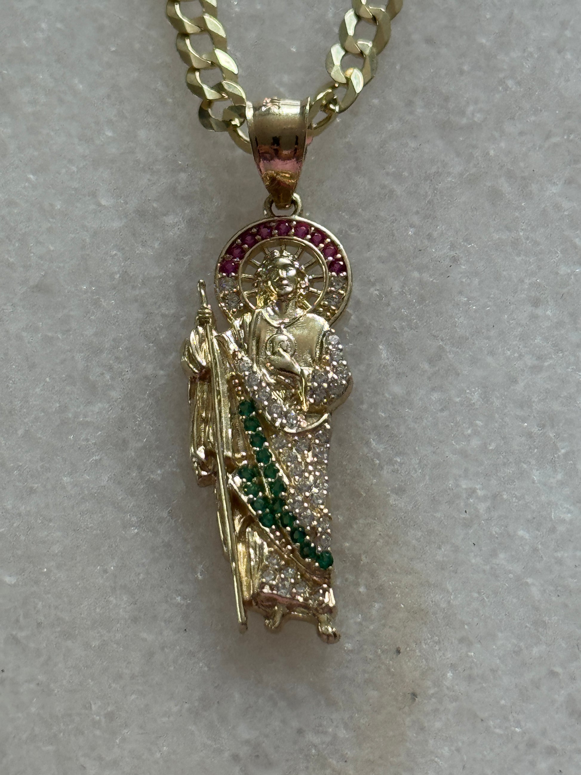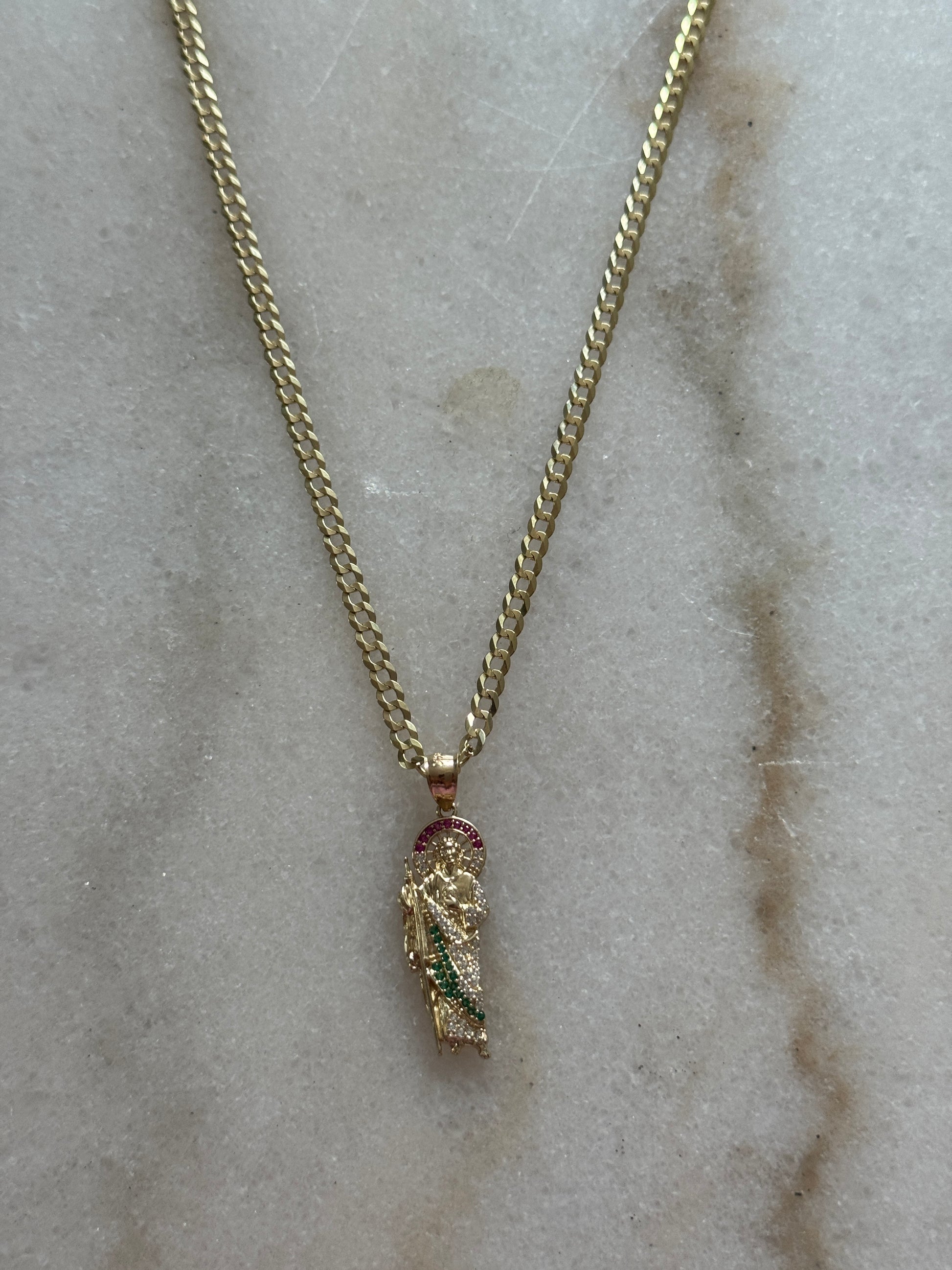 14K Gold Curb Link Chain with Saint Jude Pendant-For Men
