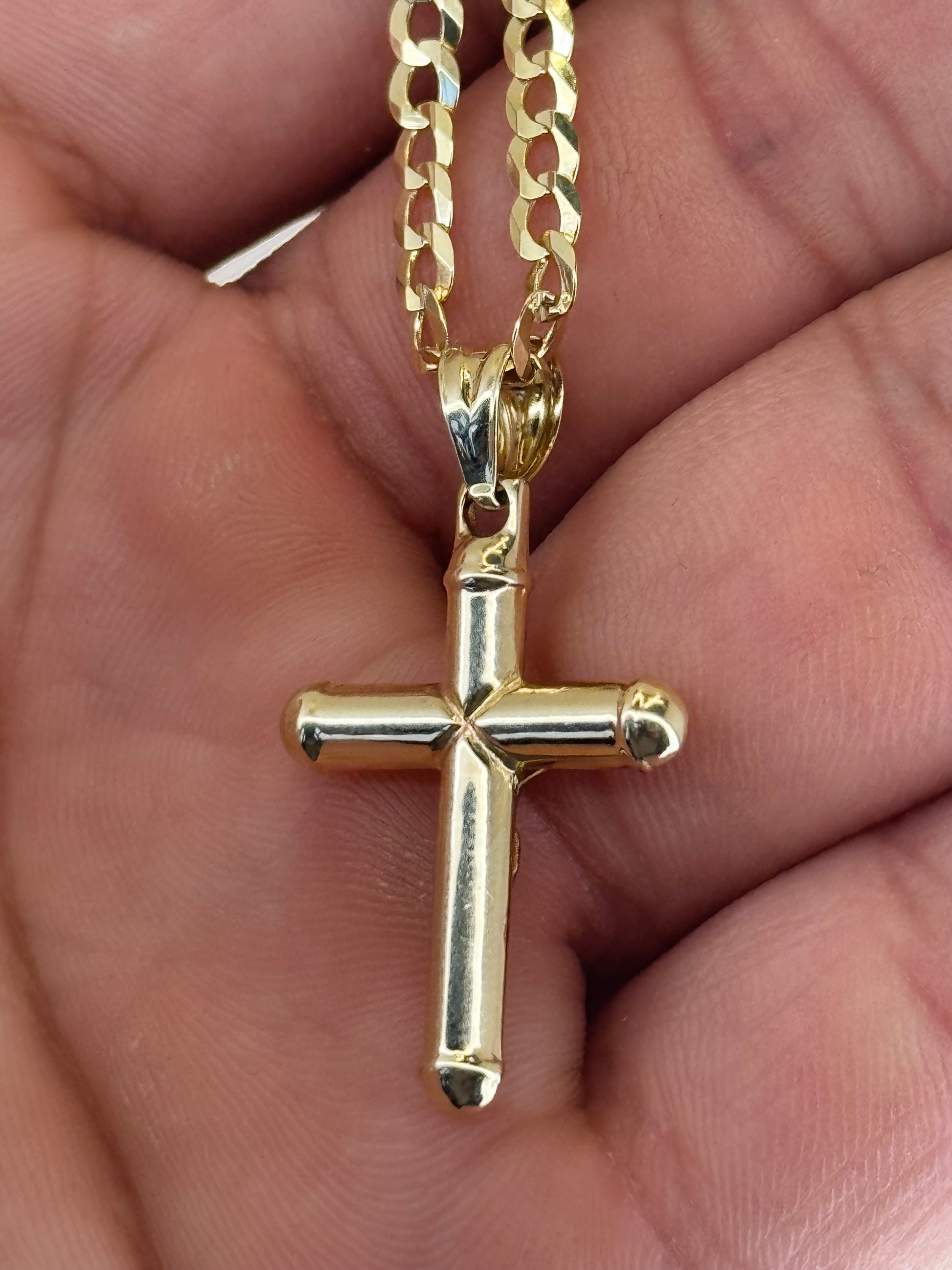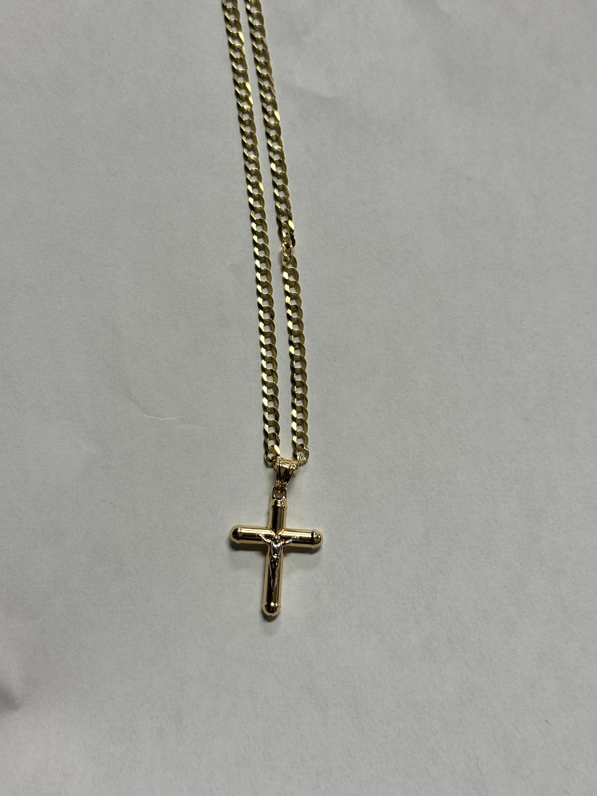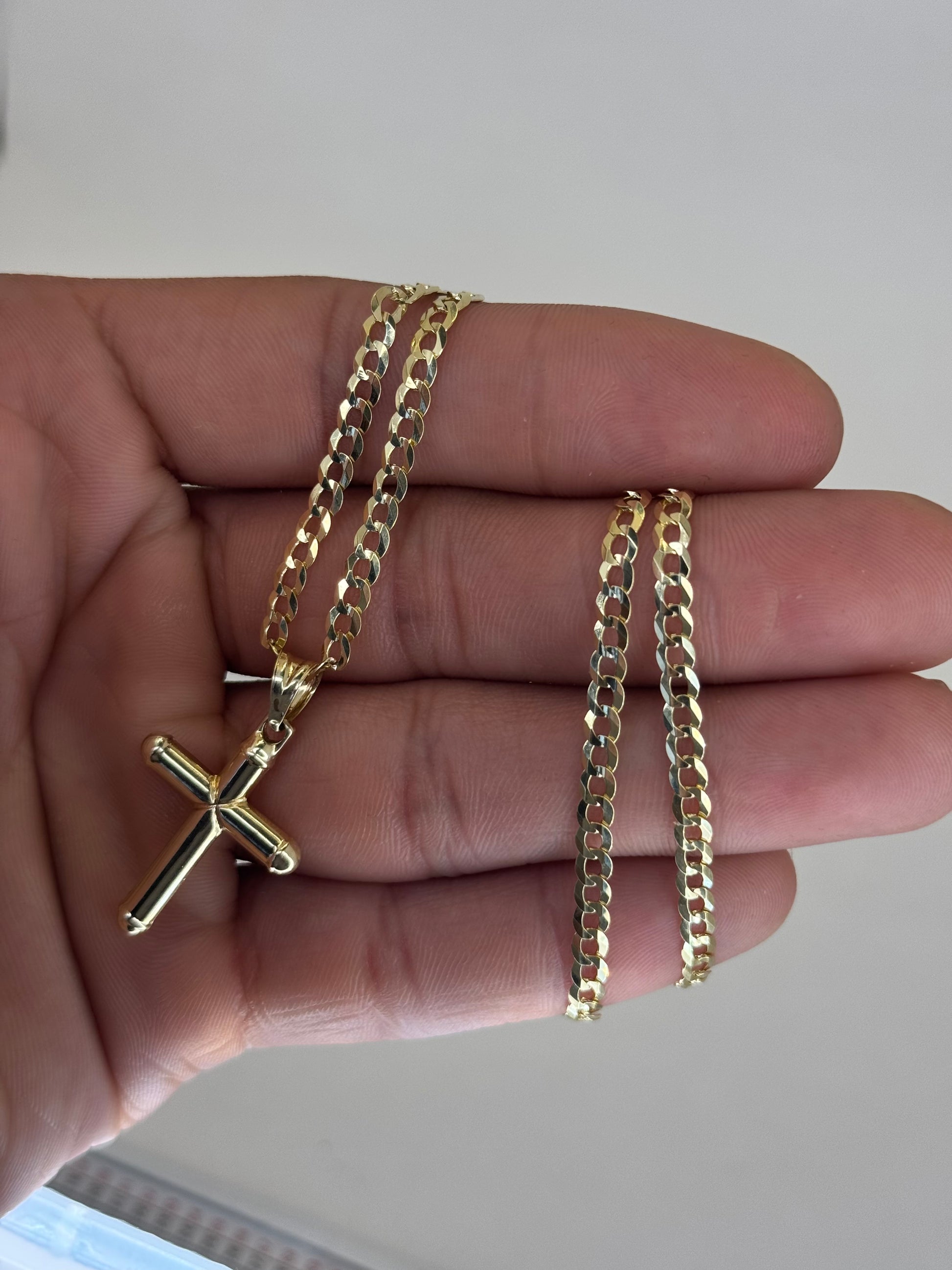 💎 14K Gold Cross Pendant & Curb Link Chain – Classic & Elegant 💎