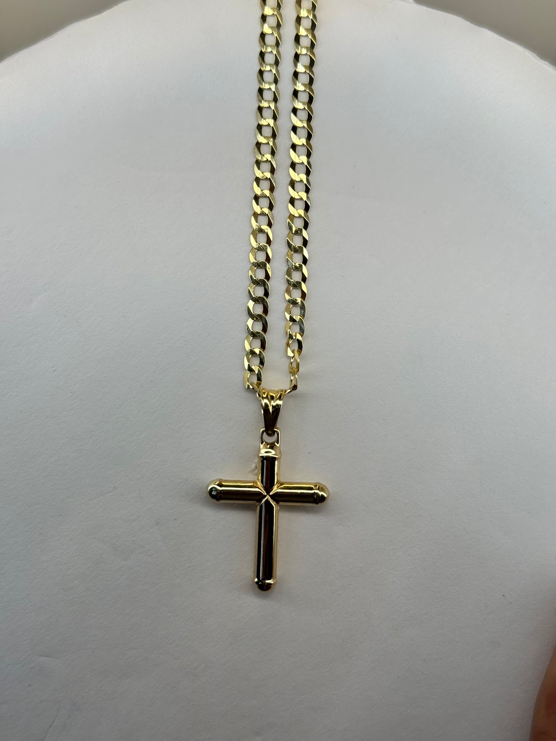 14k Gold curb link with cross