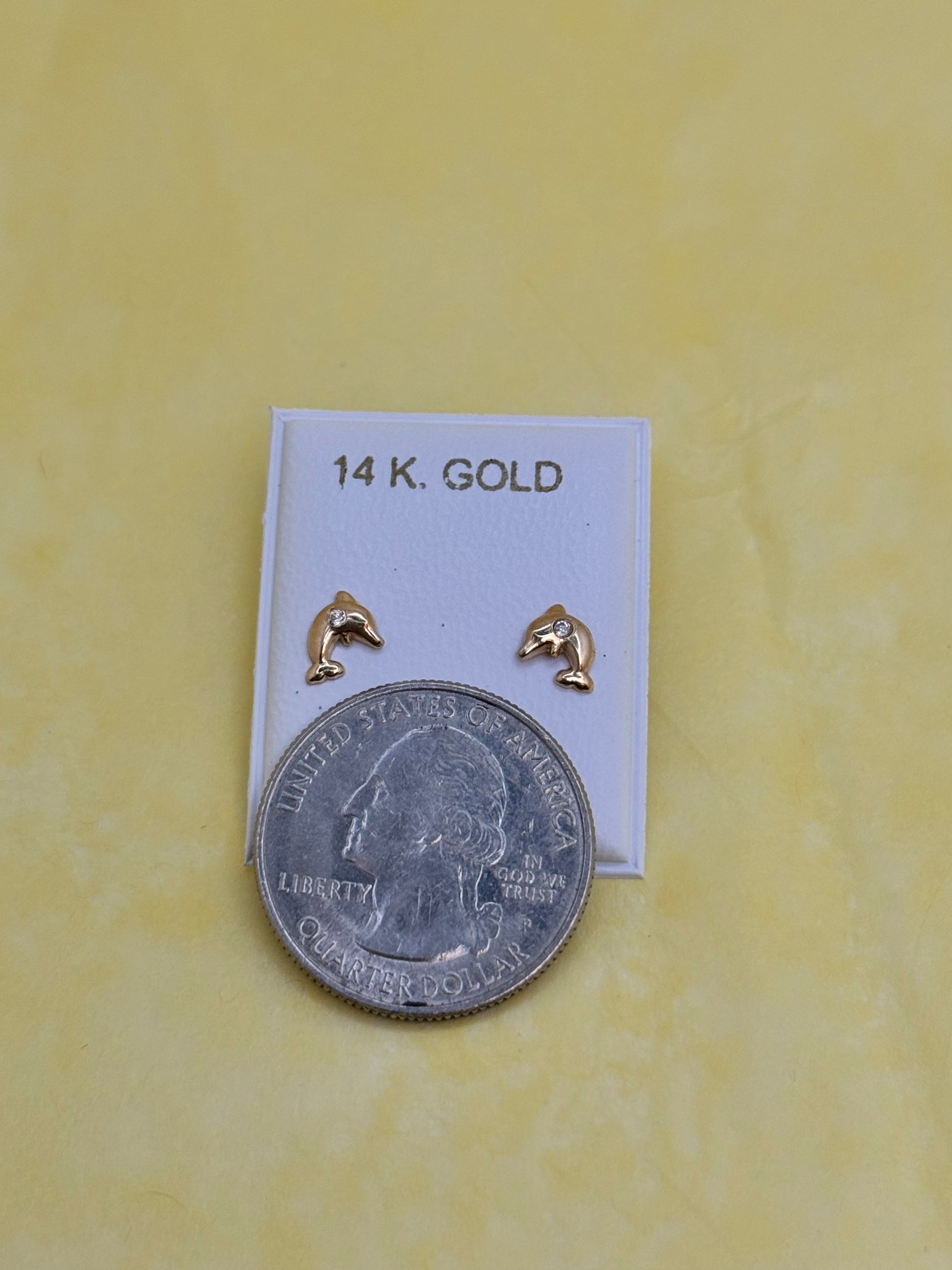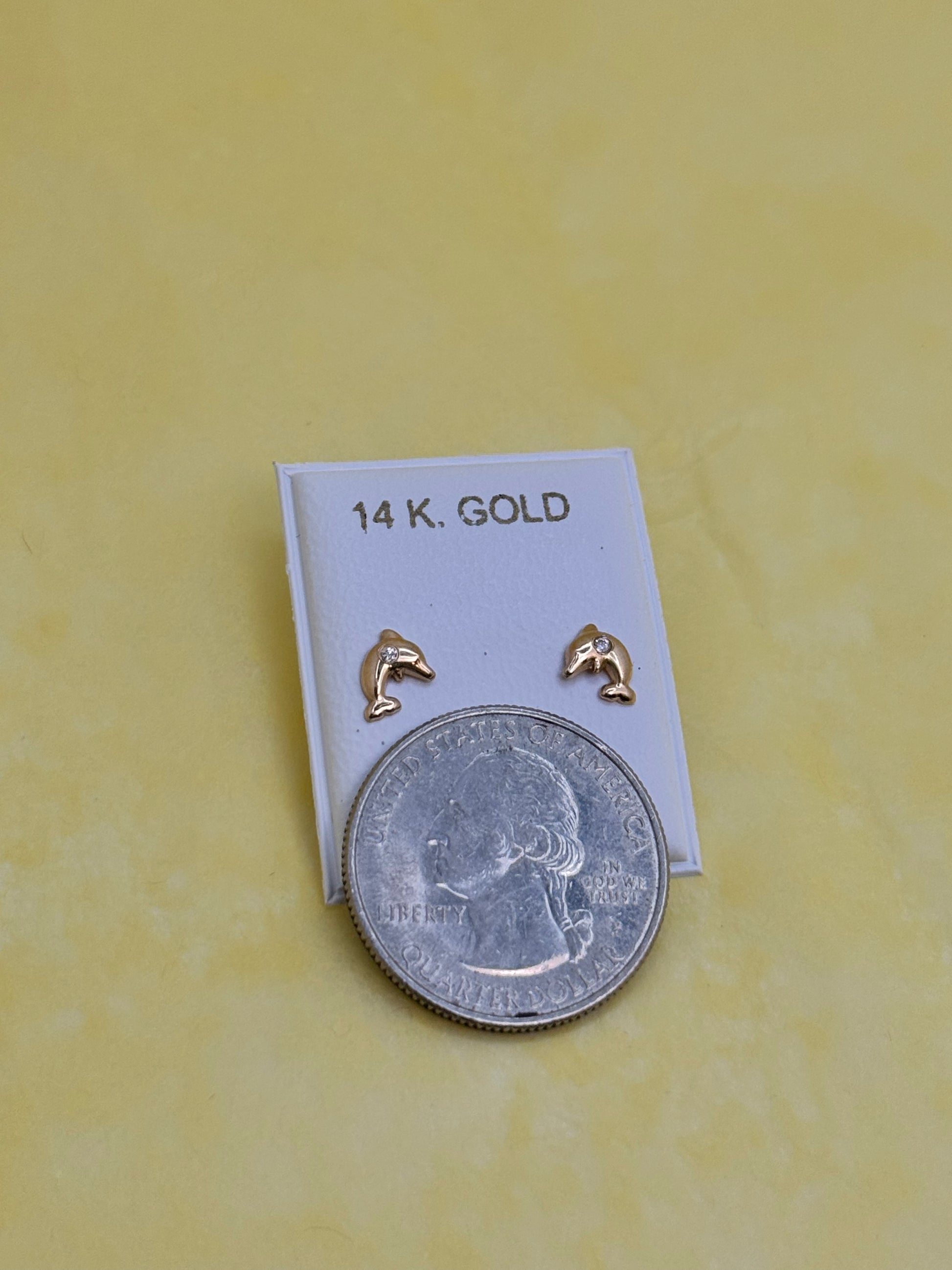 14k Gold Dolphin Stud earring with Cubic zirconia stone