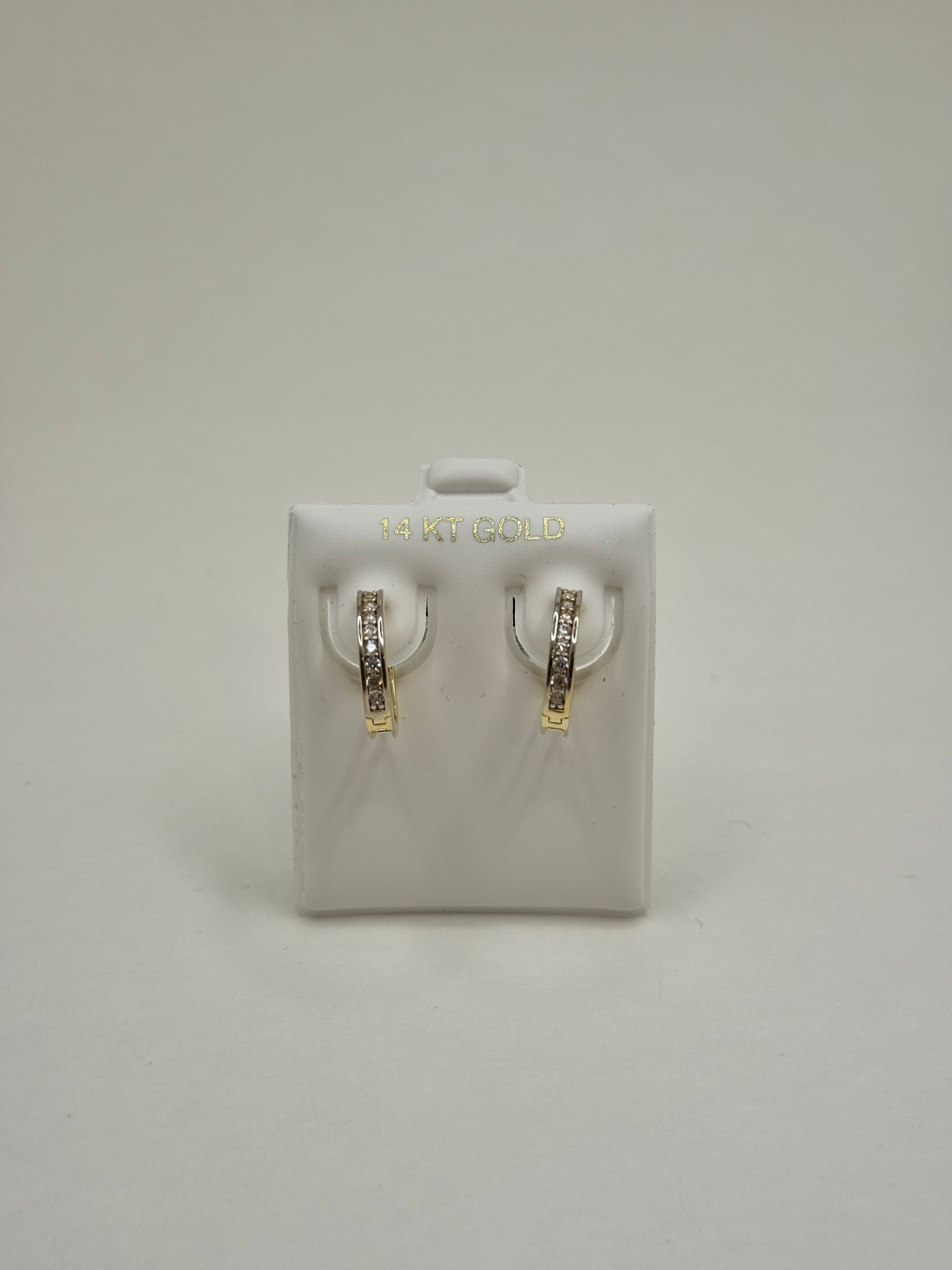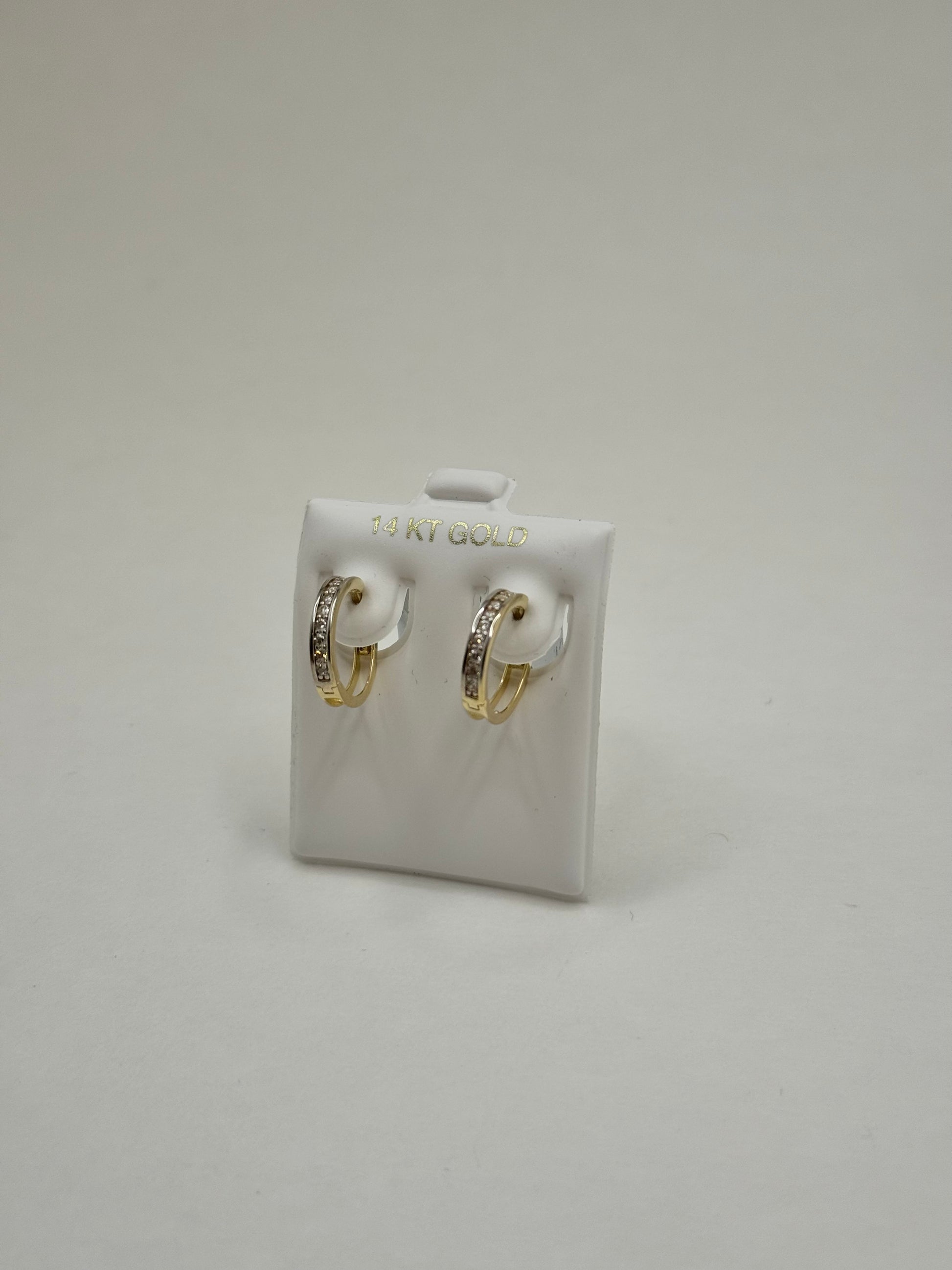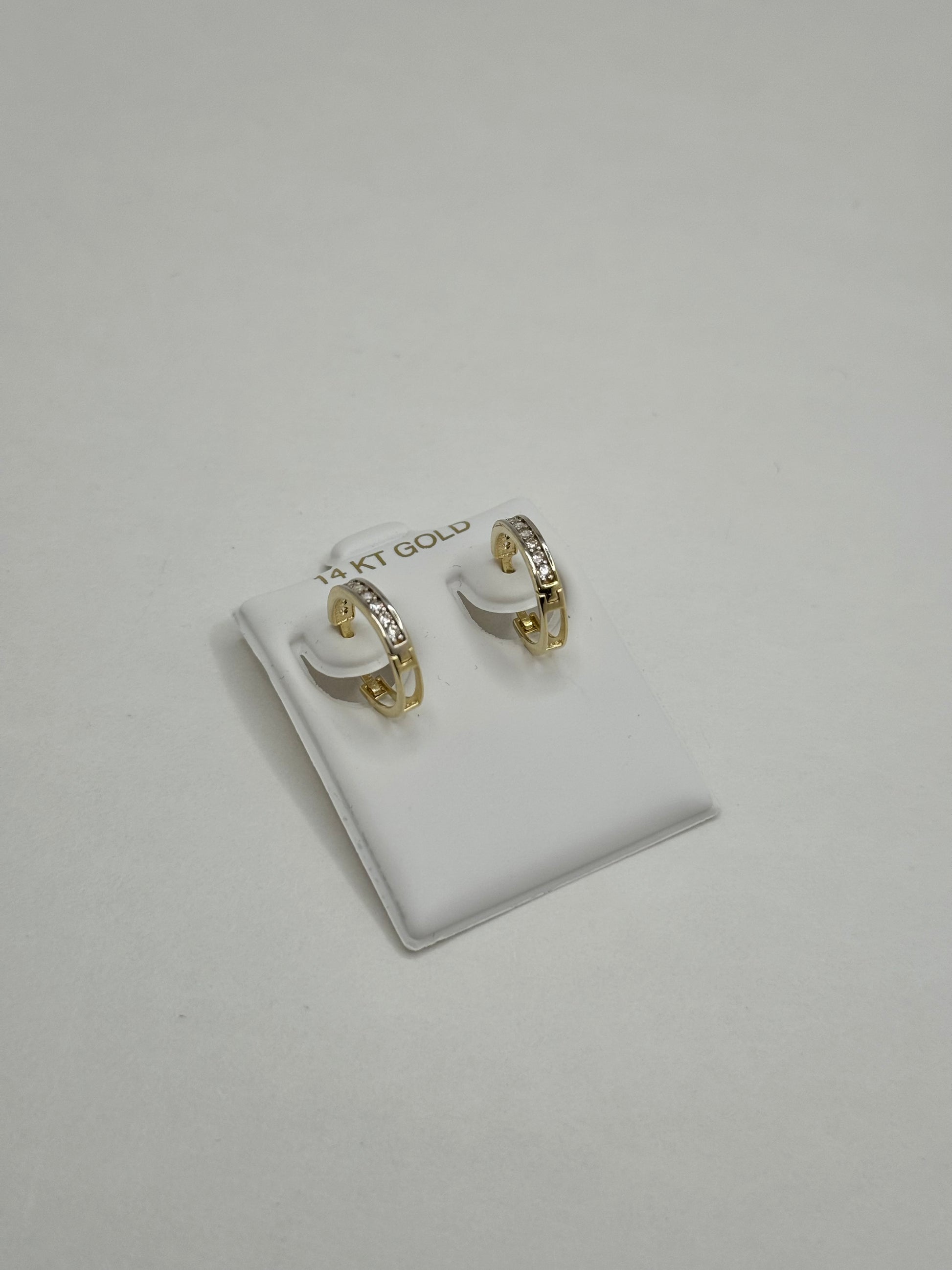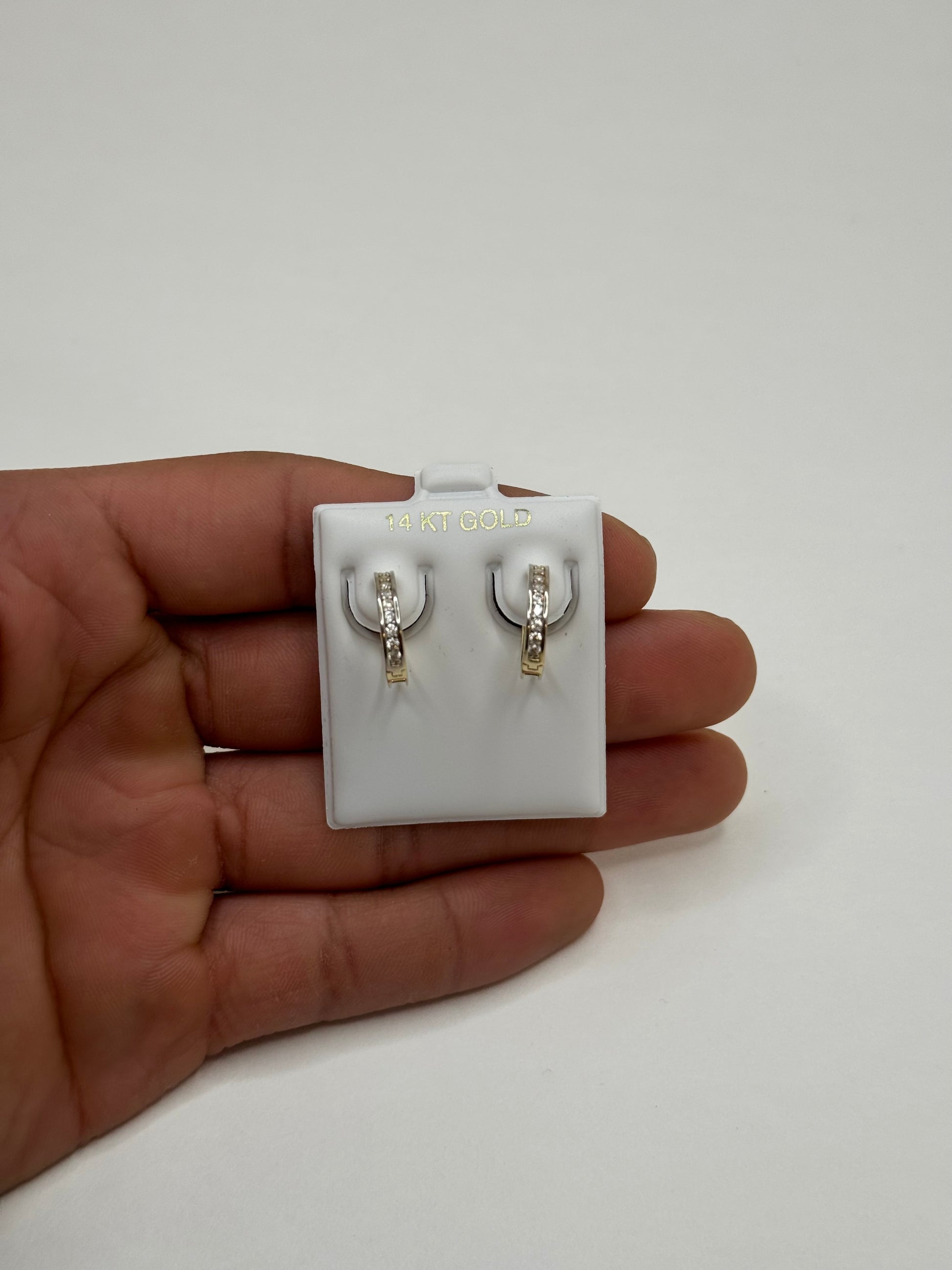 ✨ These stunning 14K gold huggie earrings feature sparkling cubic zirconia stones, adding a touch of brilliance to your everyday or special occasion look.