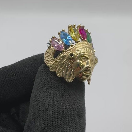 14K Gold Indian Ring with Multi-Stone Head for men size 10”