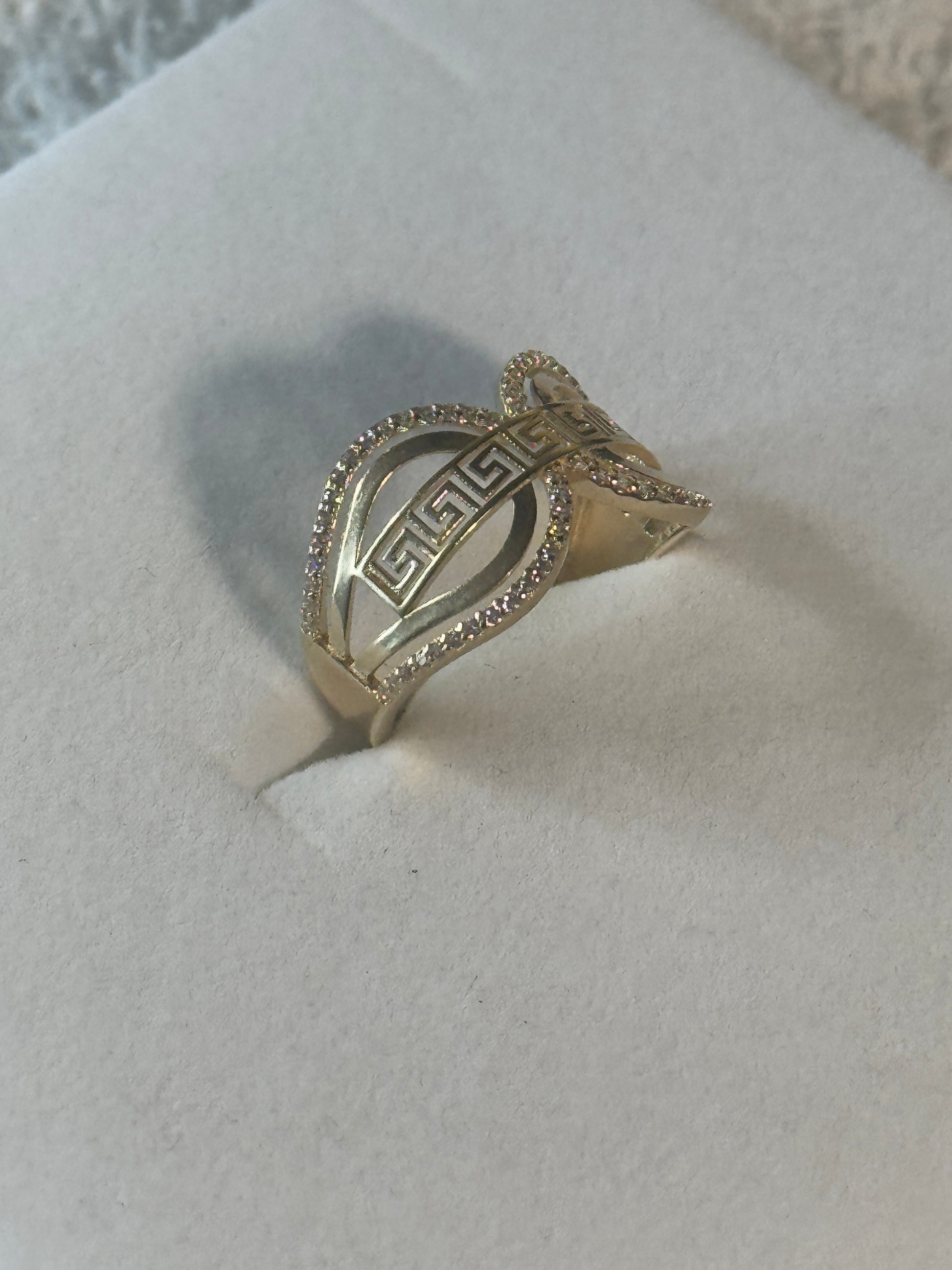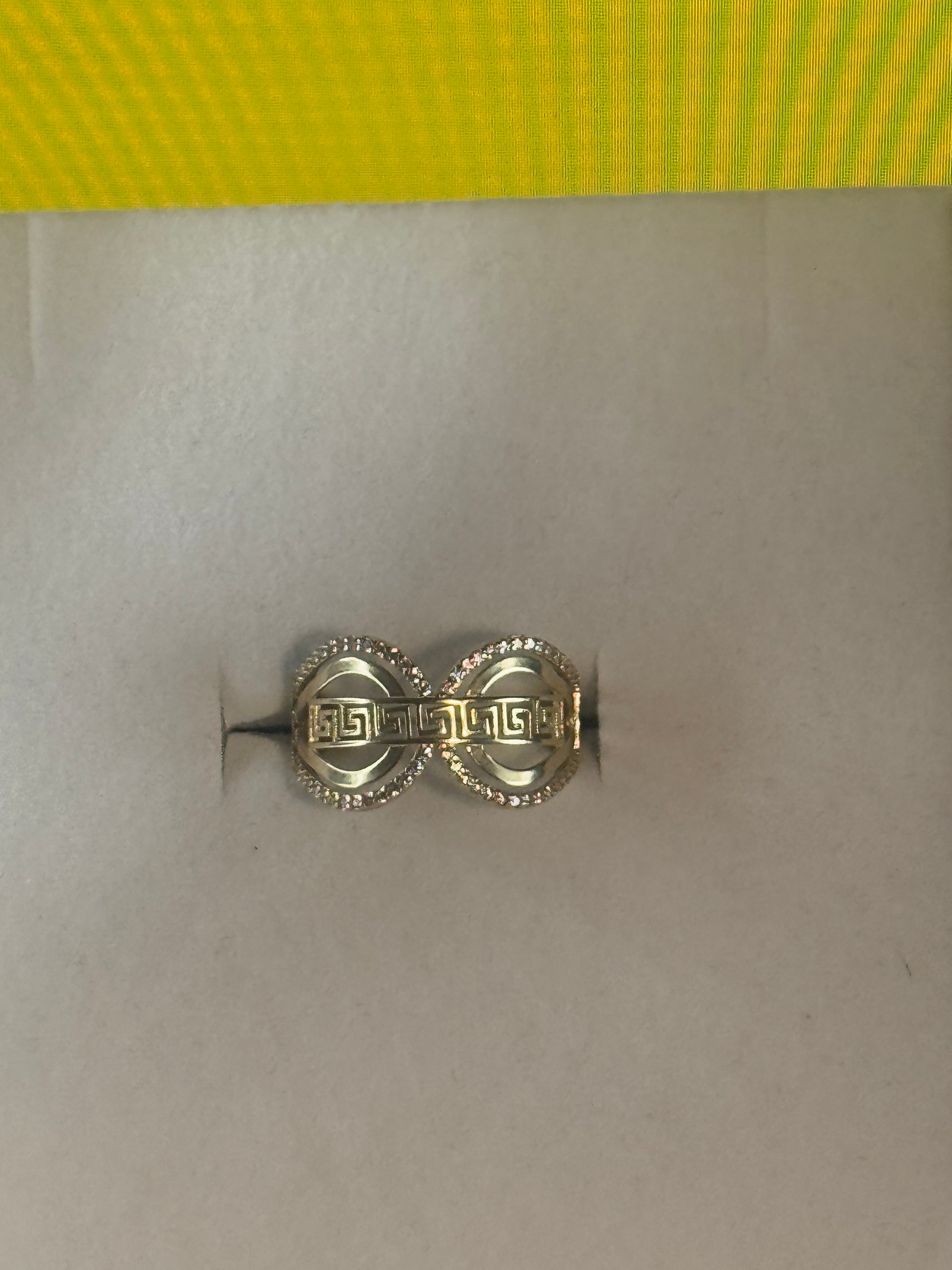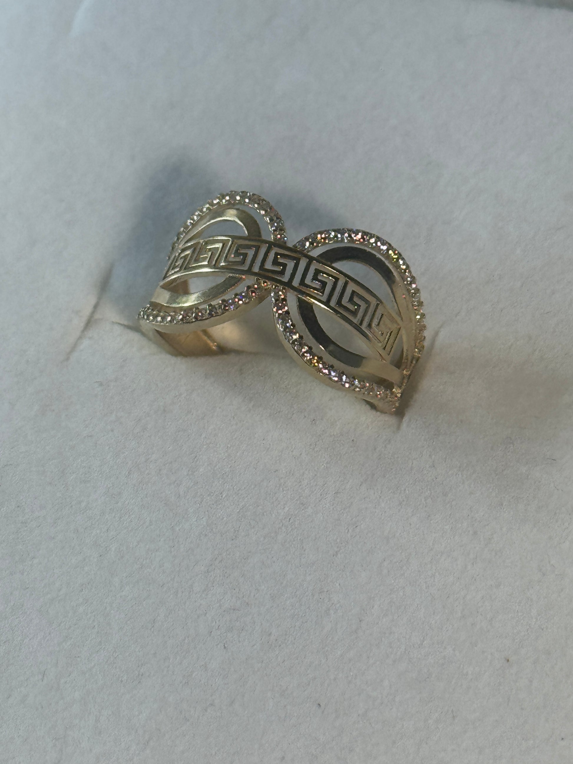 This stunning 14K gold ring features an elegant infinity design adorned with sparkling zircon stones, symbolizing everlasting love and timeless beauty.