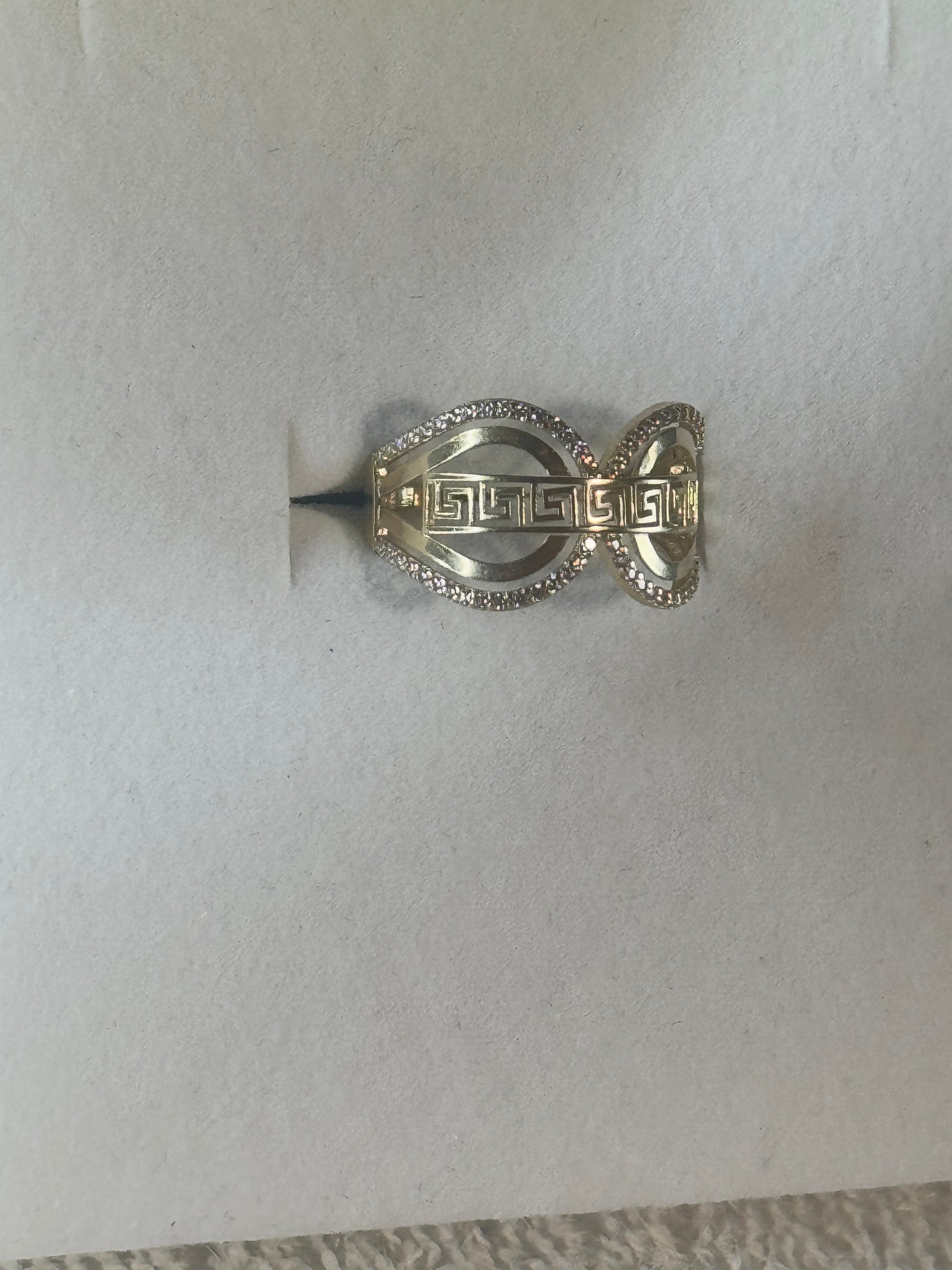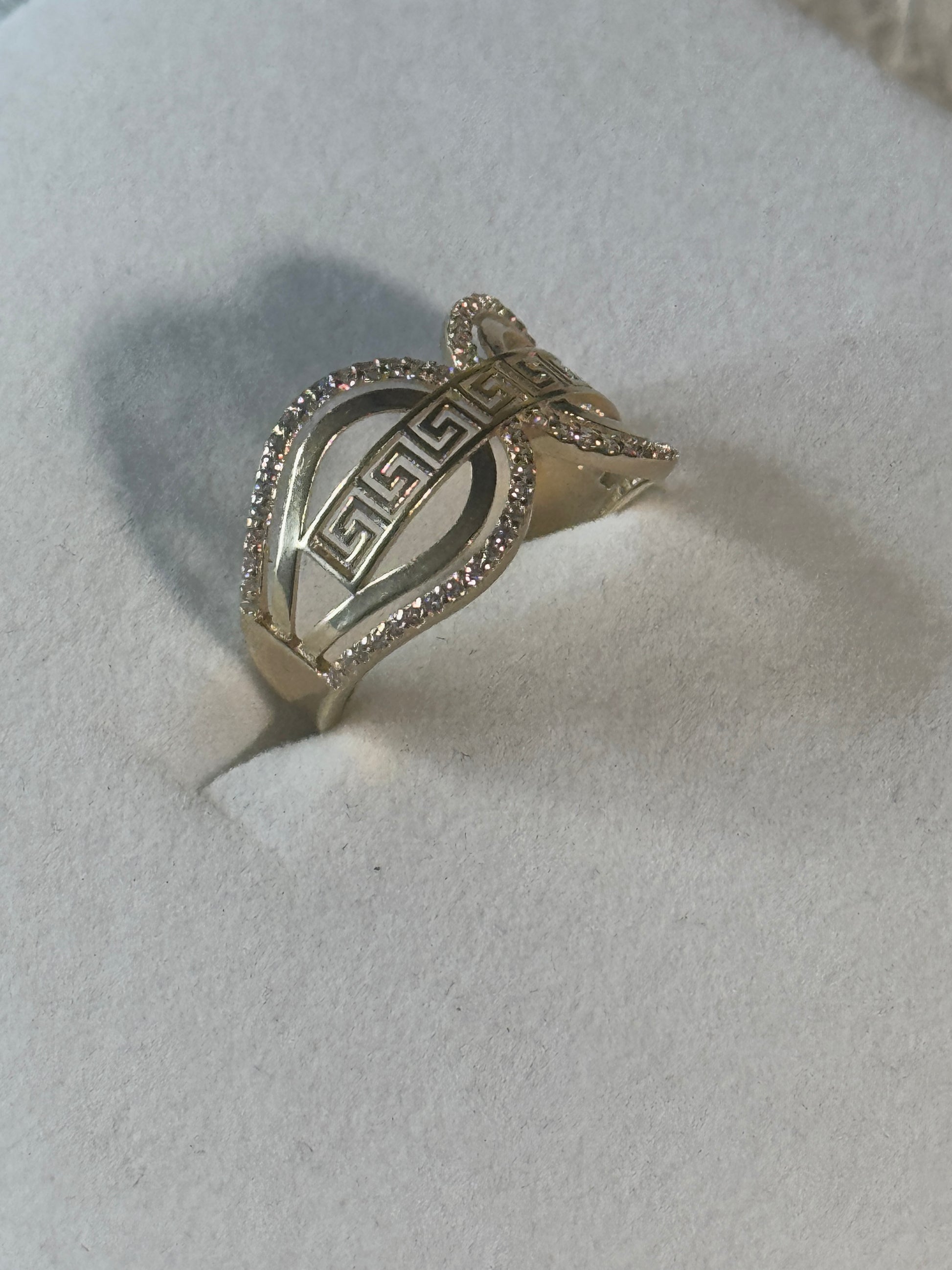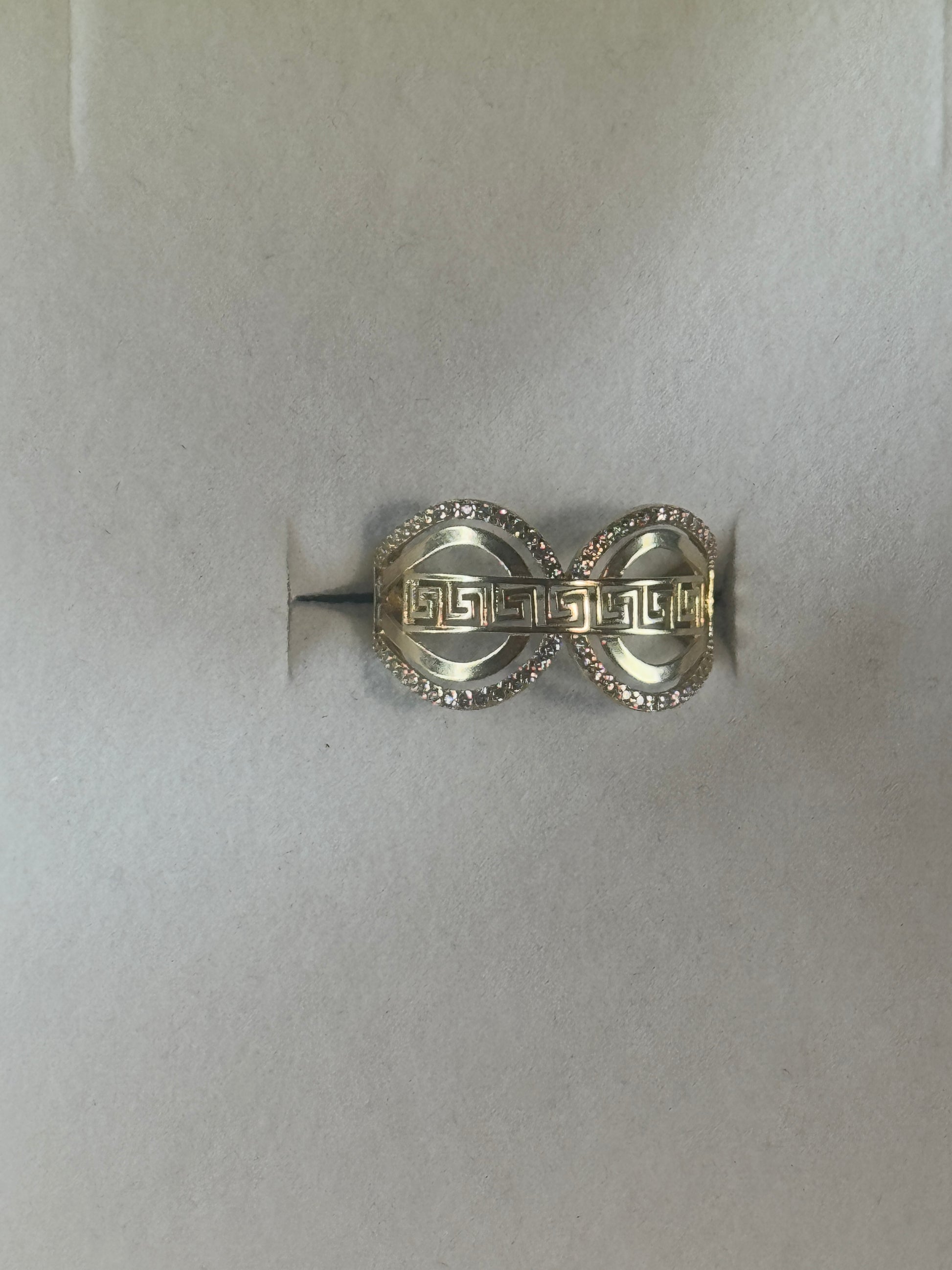 This stunning 14K gold ring features an elegant infinity design adorned with sparkling zircon stones, symbolizing everlasting love and timeless beauty.