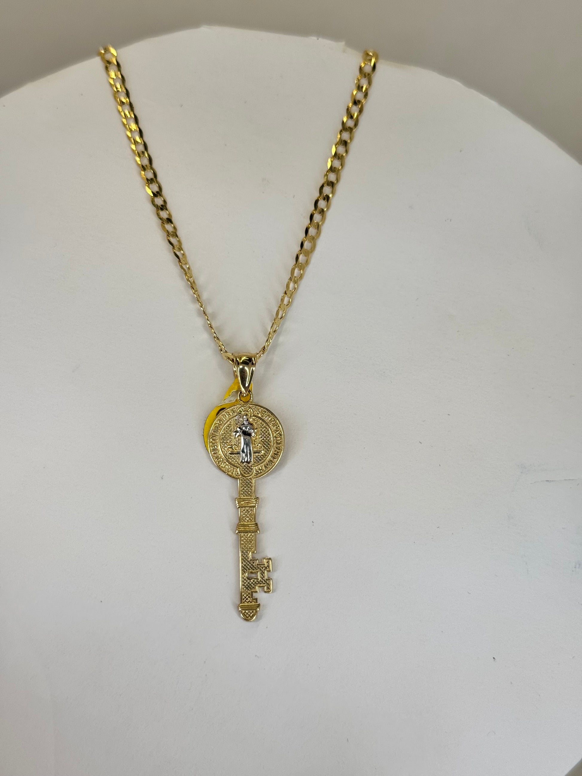 14K Gold Key Pendant & Curb Link Chain – Unlock Your Style