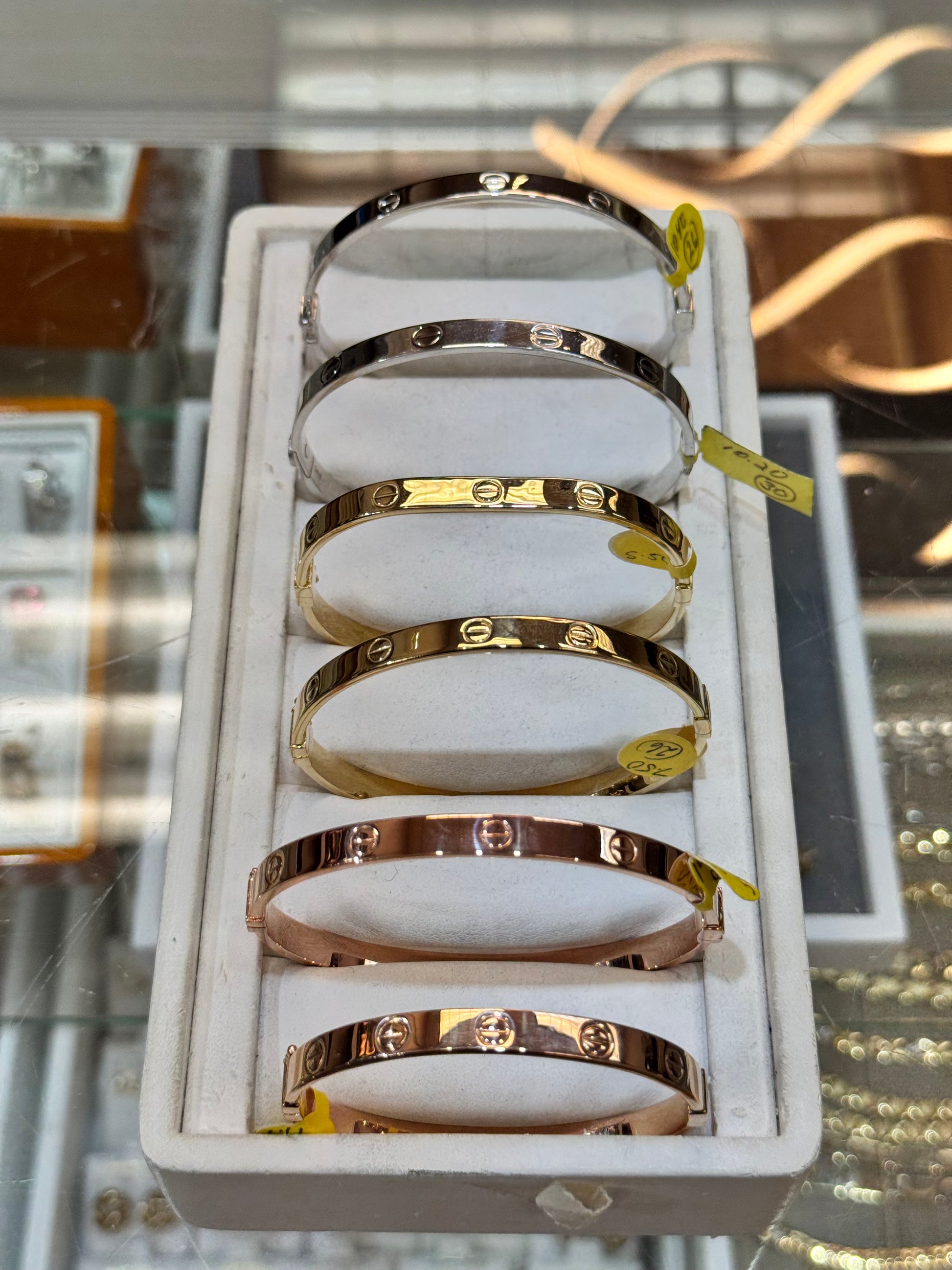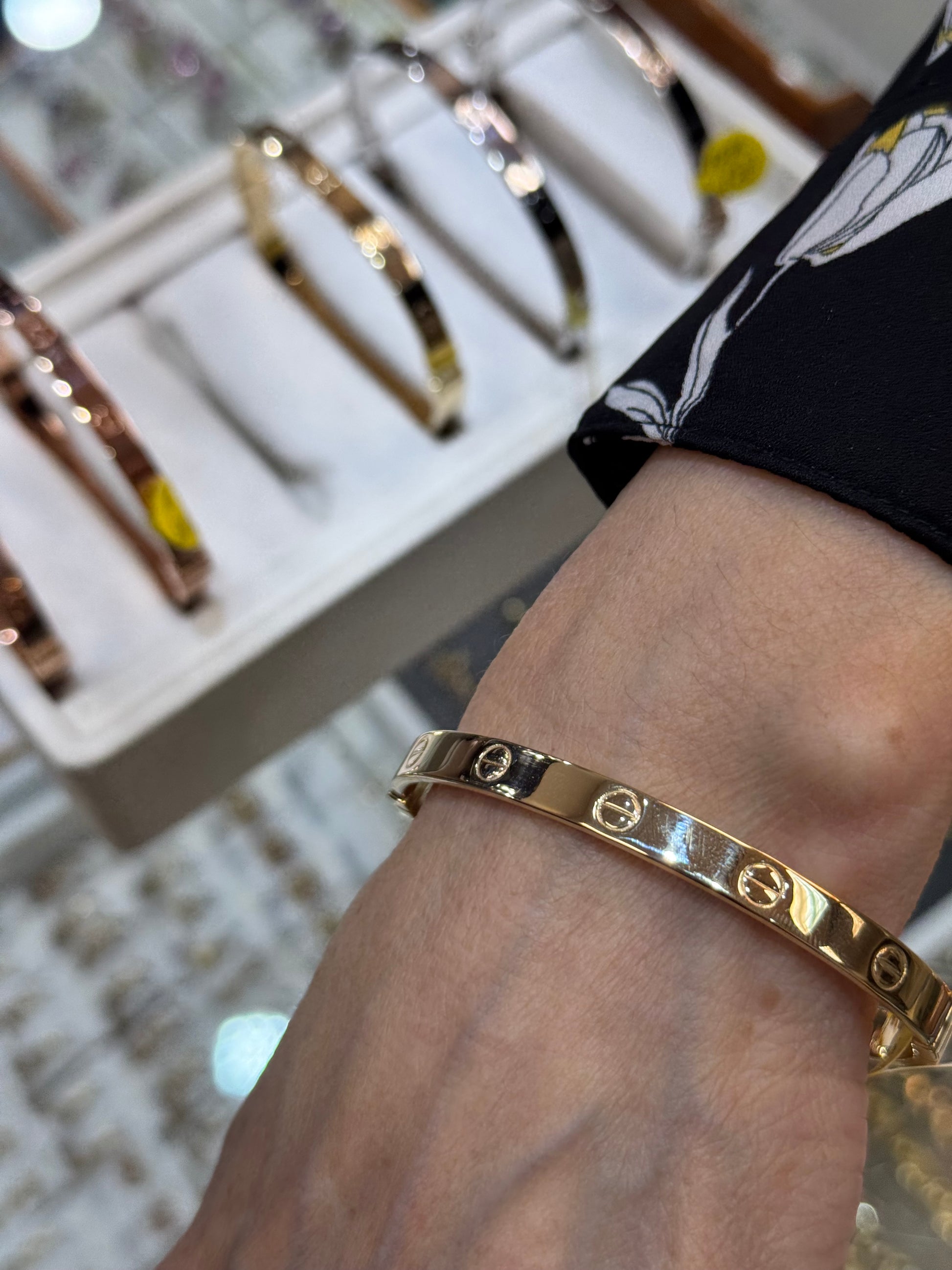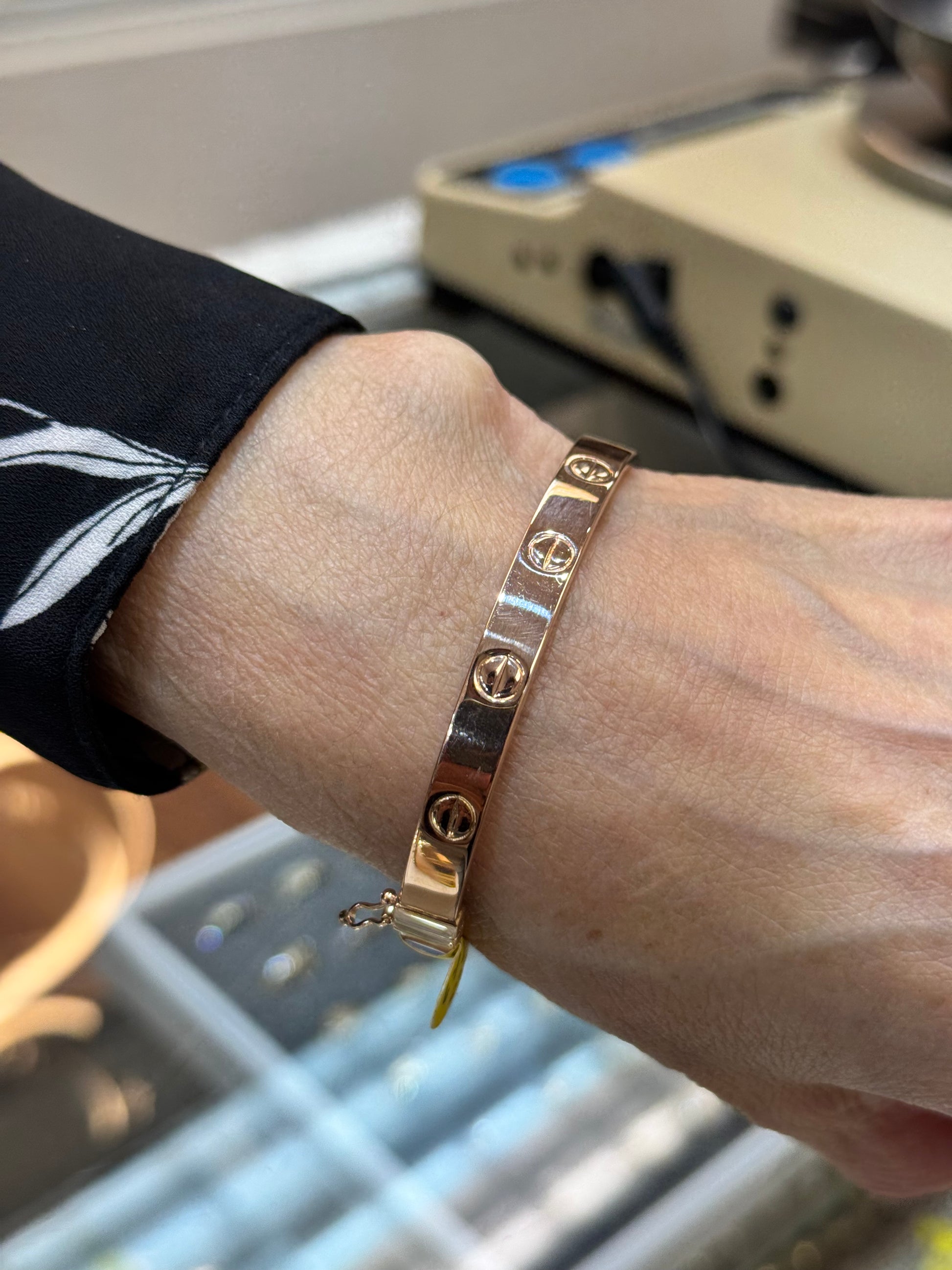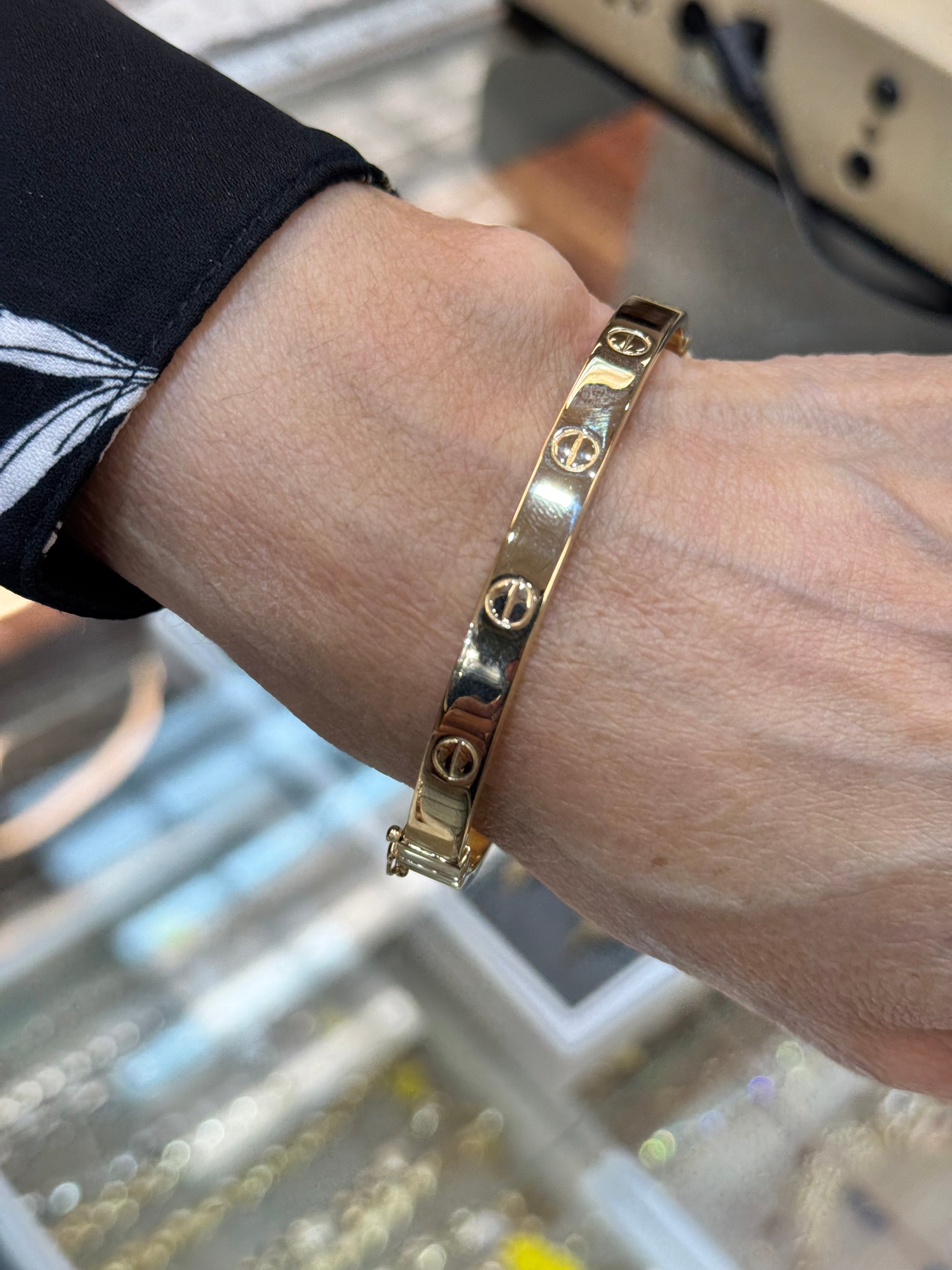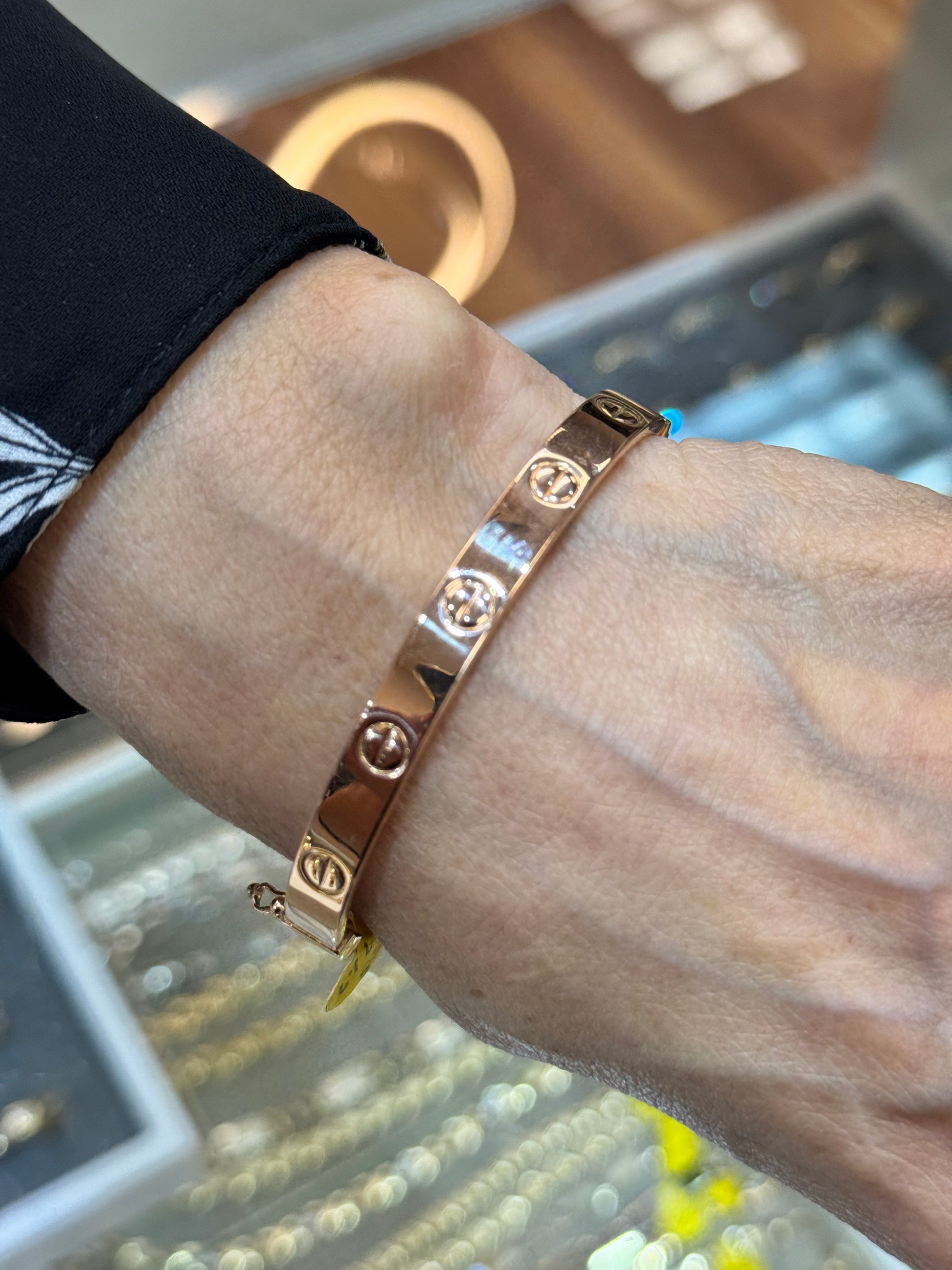 ✨ A symbol of everlasting love and elegance, this 14K gold love bangle bracelet features a sleek, screw-motif design in yellow or rose gold. Perfect for stacking or wearing solo, this bracelet is a statement of sophistication and commitment.