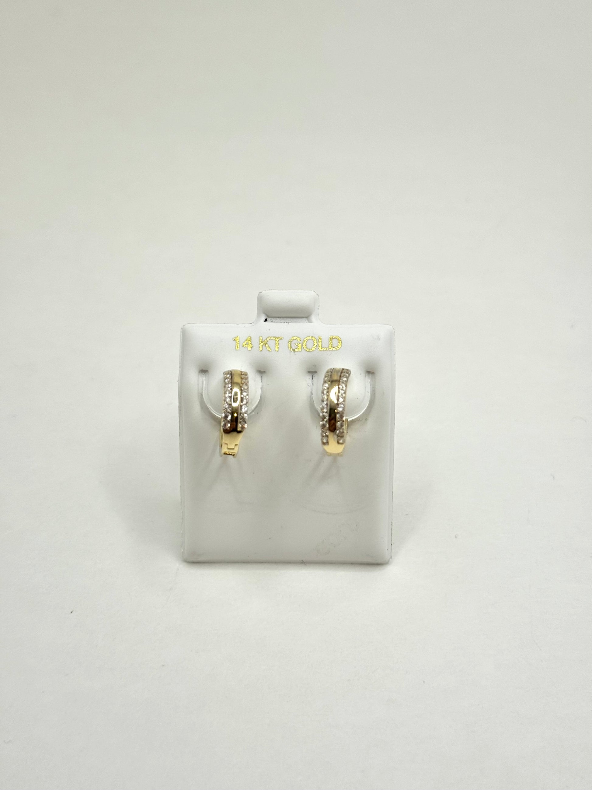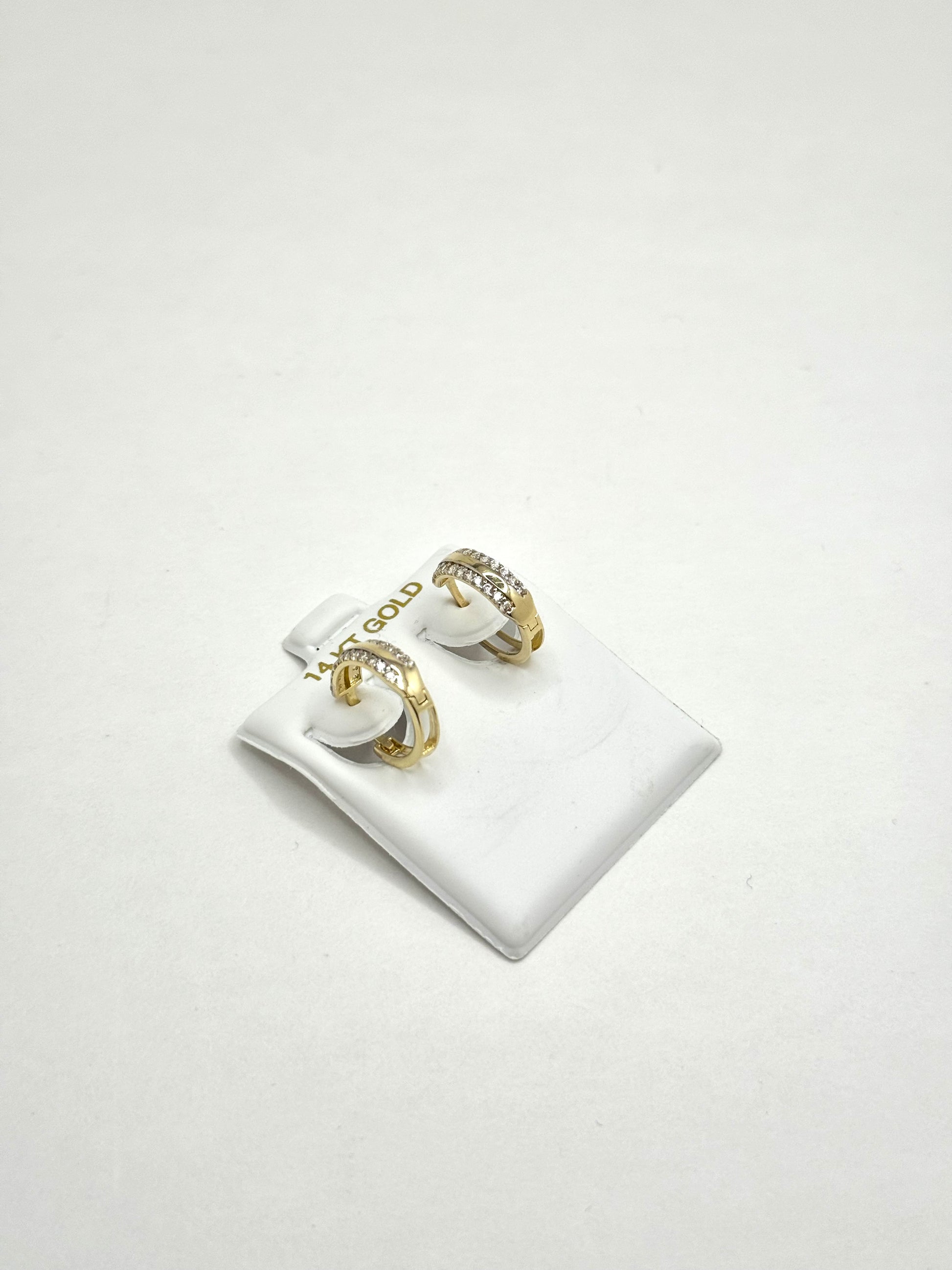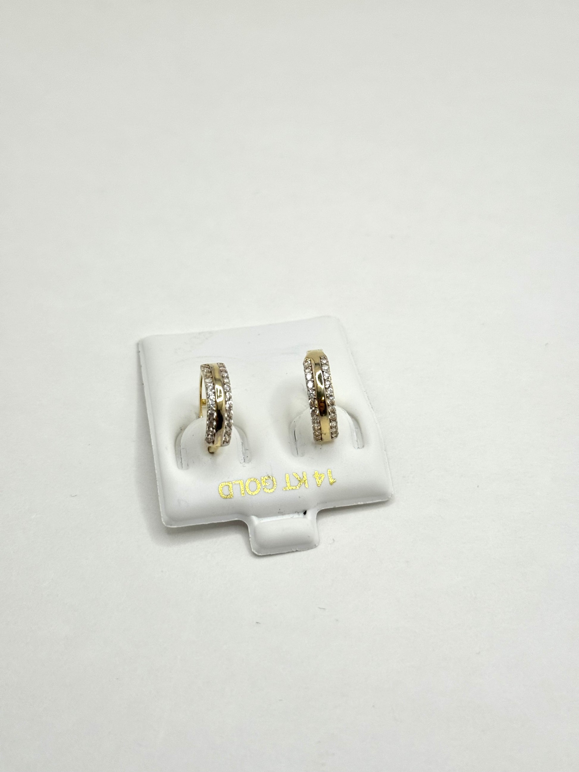 ✨ These stunning 14K gold huggie earrings feature sparkling cubic zirconia stones, adding a touch of brilliance to your everyday or special occasion look.