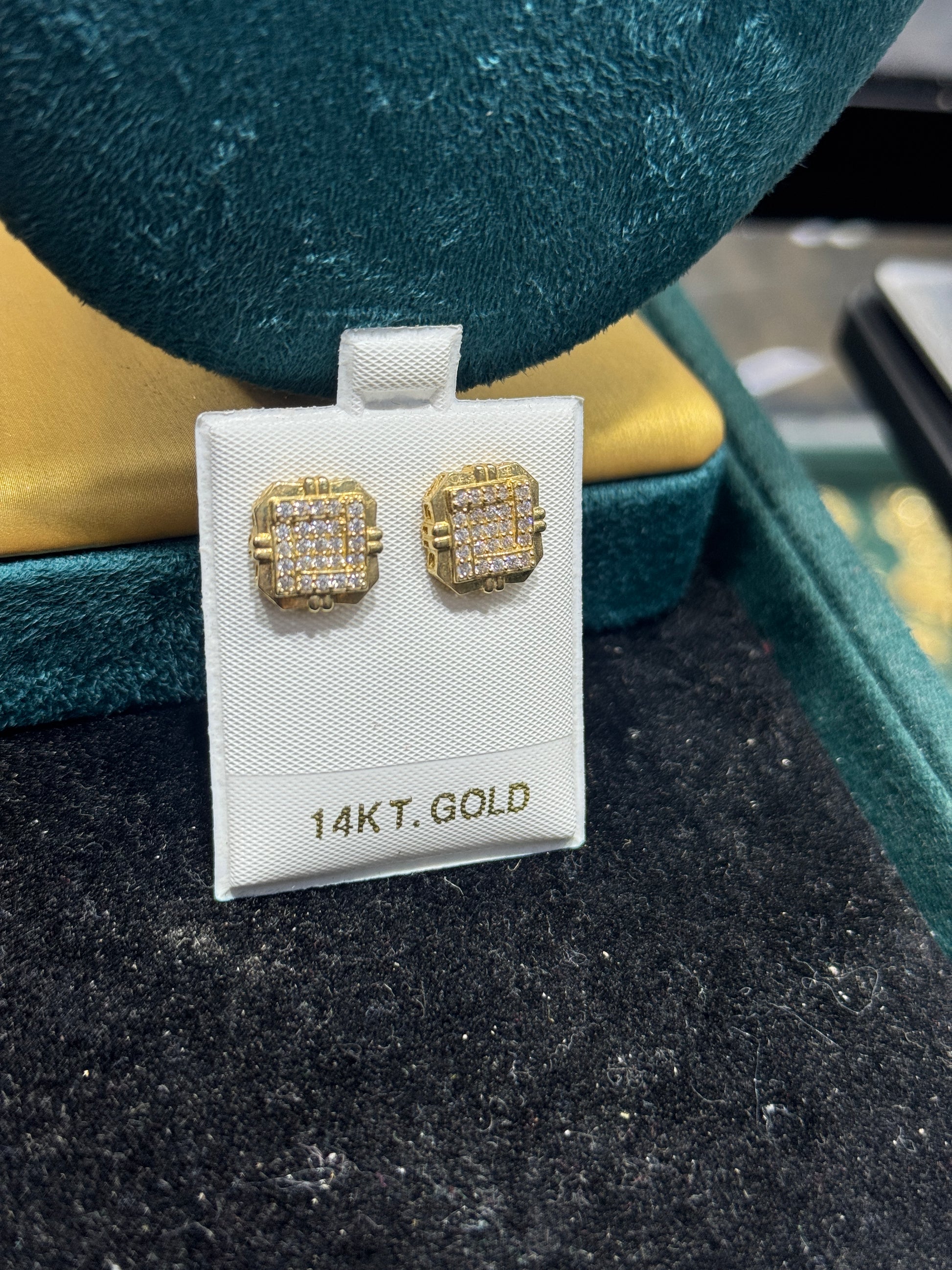 14K Gold Square Cubic Zirconia Stud Earrings for men – Bold Shine, Everyday Luxury