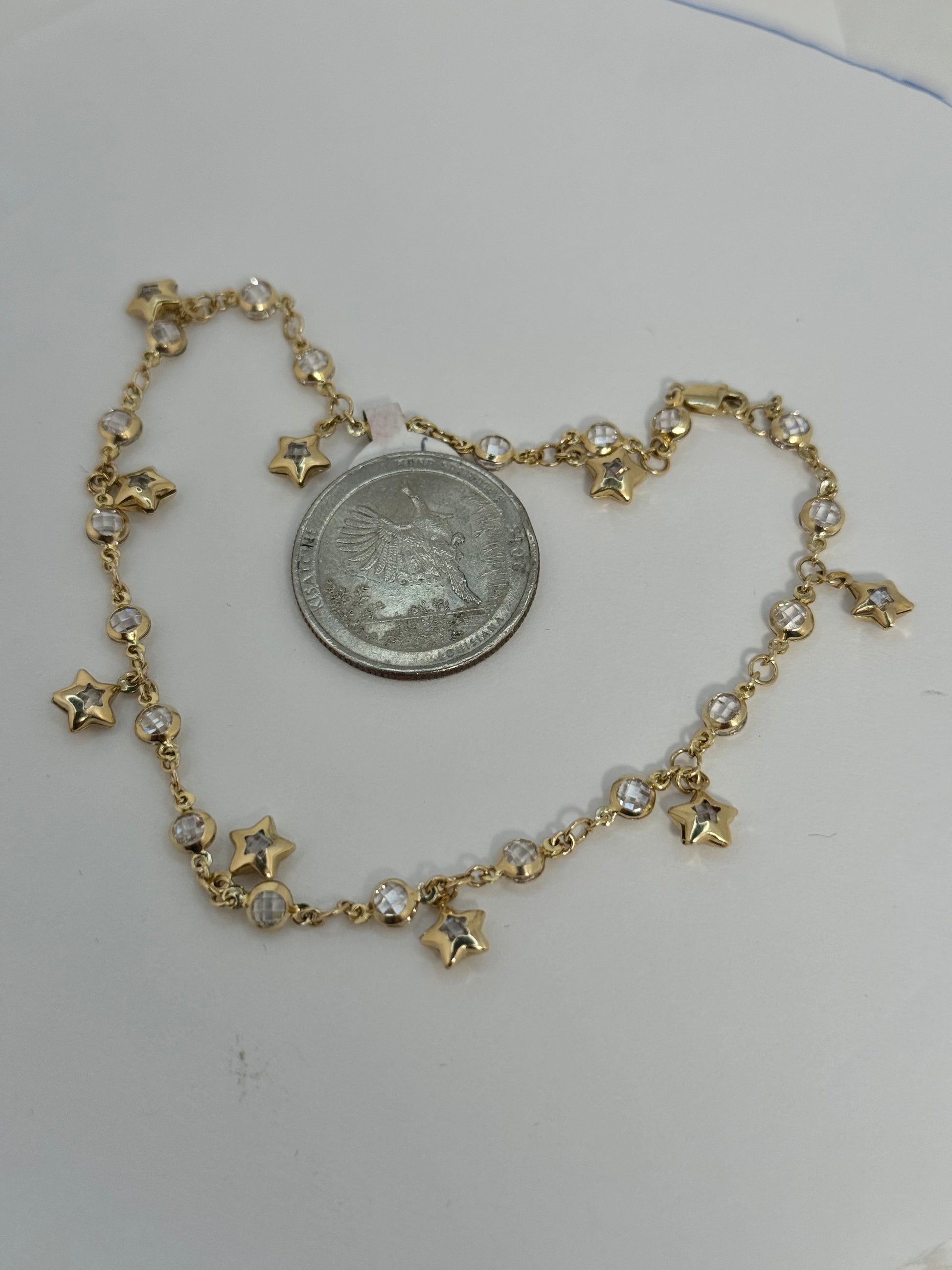 14k gold/ star bracelet with cubic sparkling zirconia stone