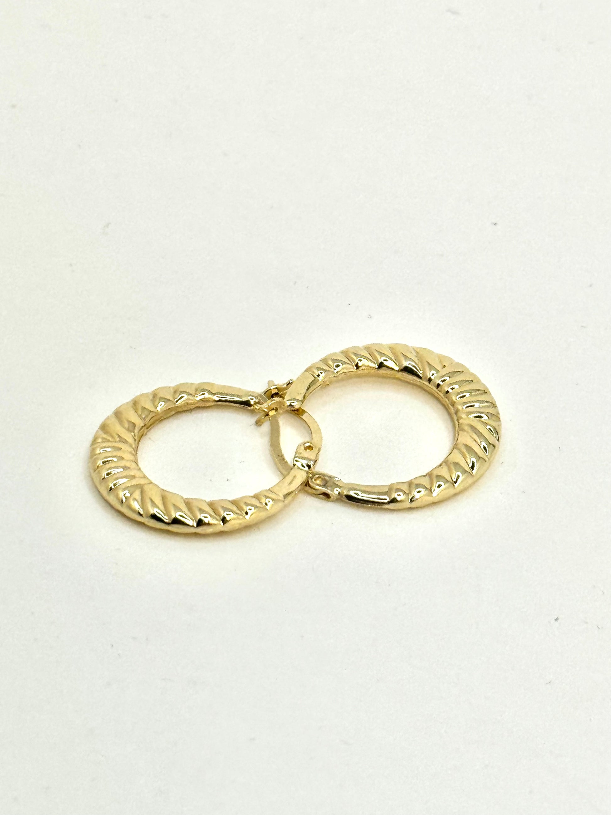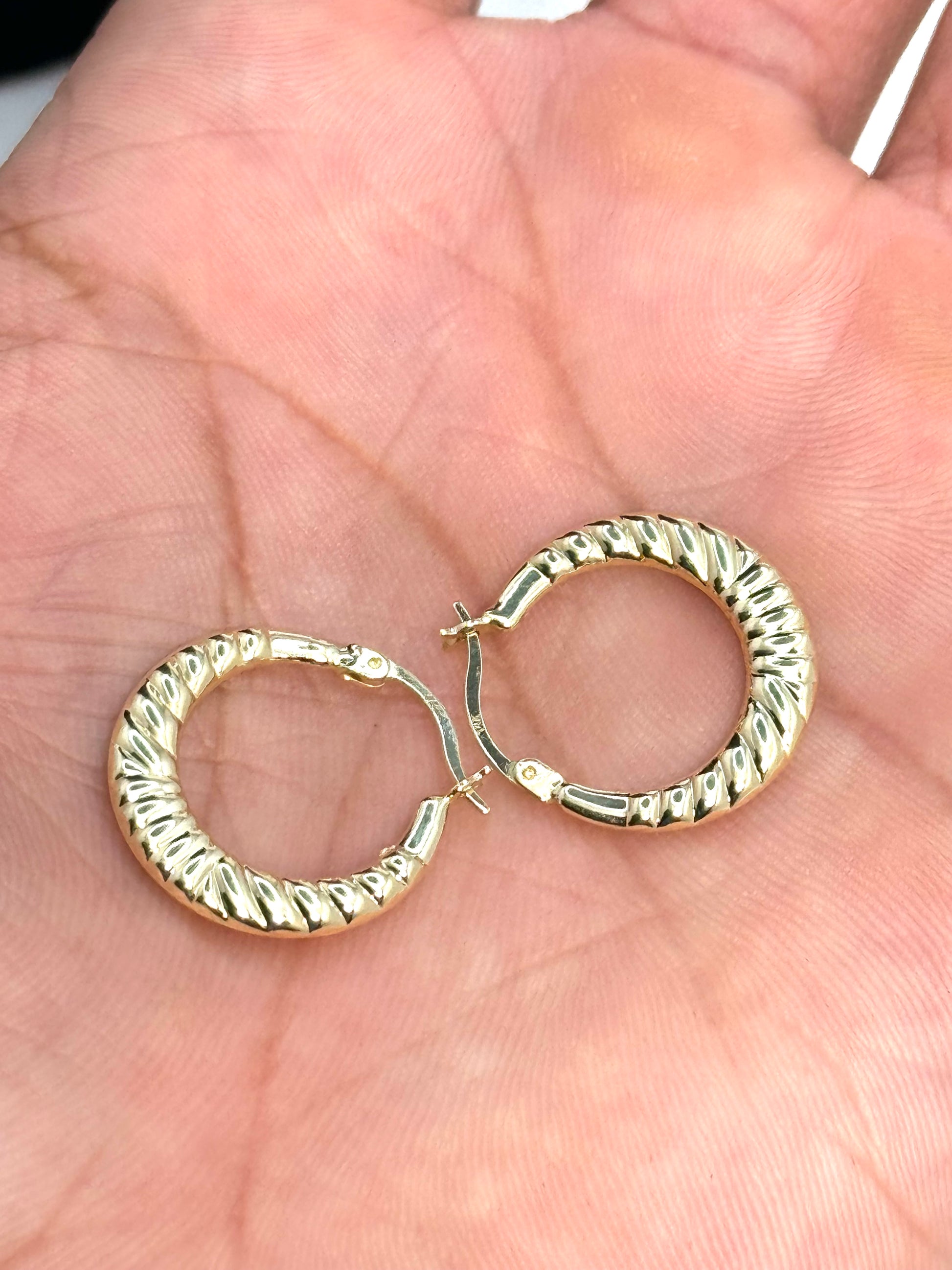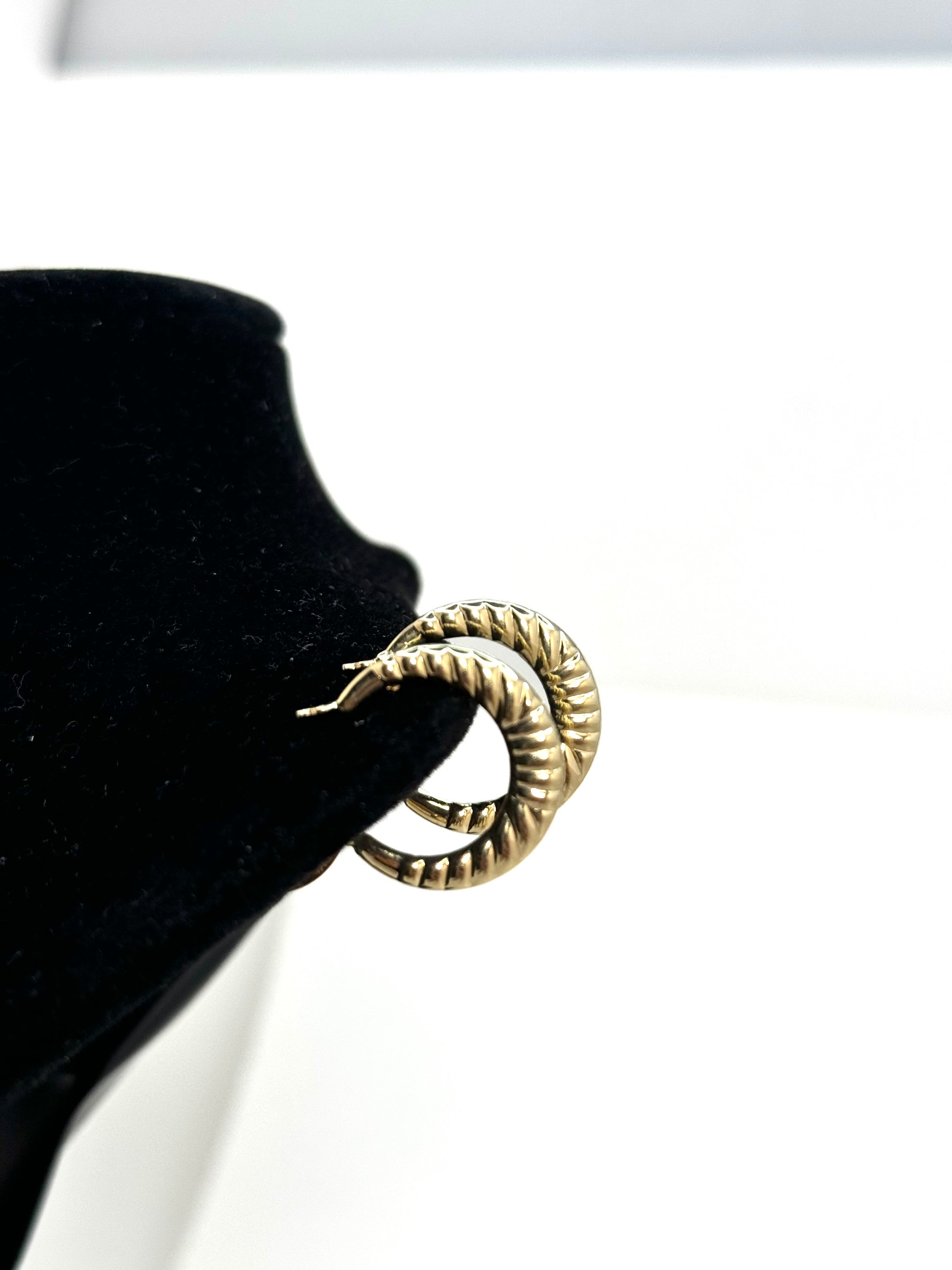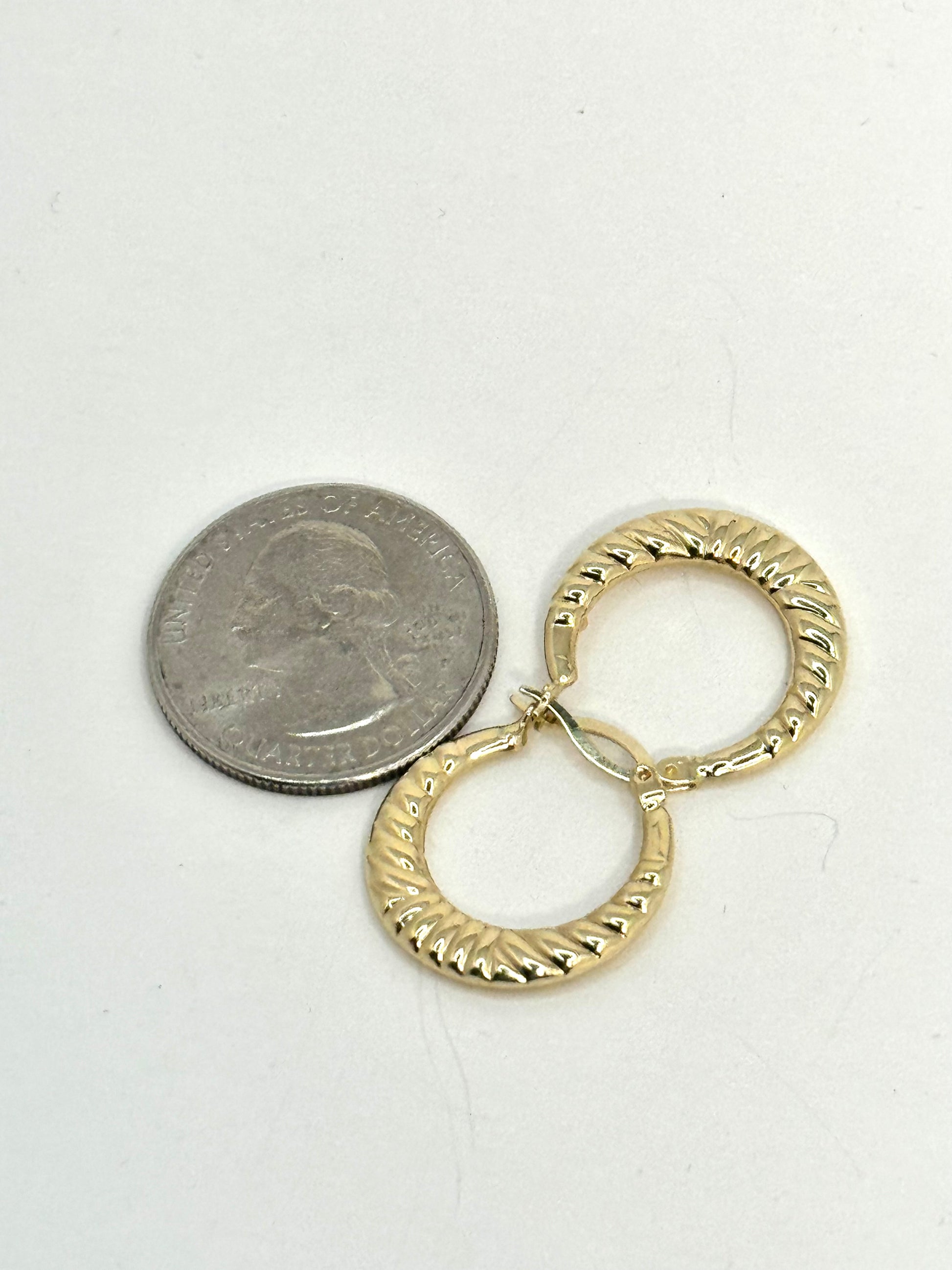 Expertly crafted with 14k gold, these striped hoop earrings are a versatile and stylish addition to any jewelry collection. Their classic design is perfect for everyday wear, while the high-quality materials ensure long-lasting beauty. Elevate your look with these must-have earrings that combine elegance and durability.