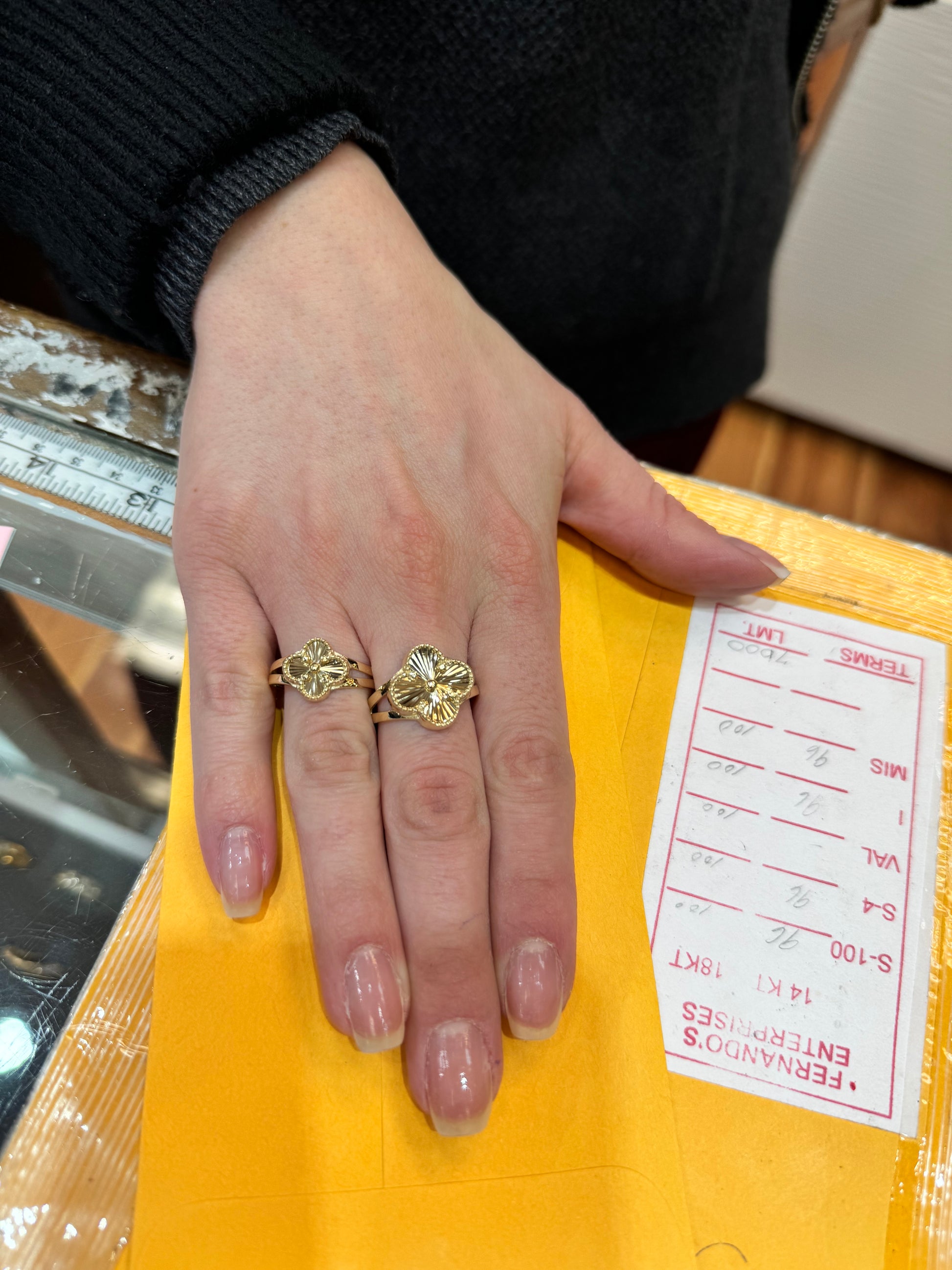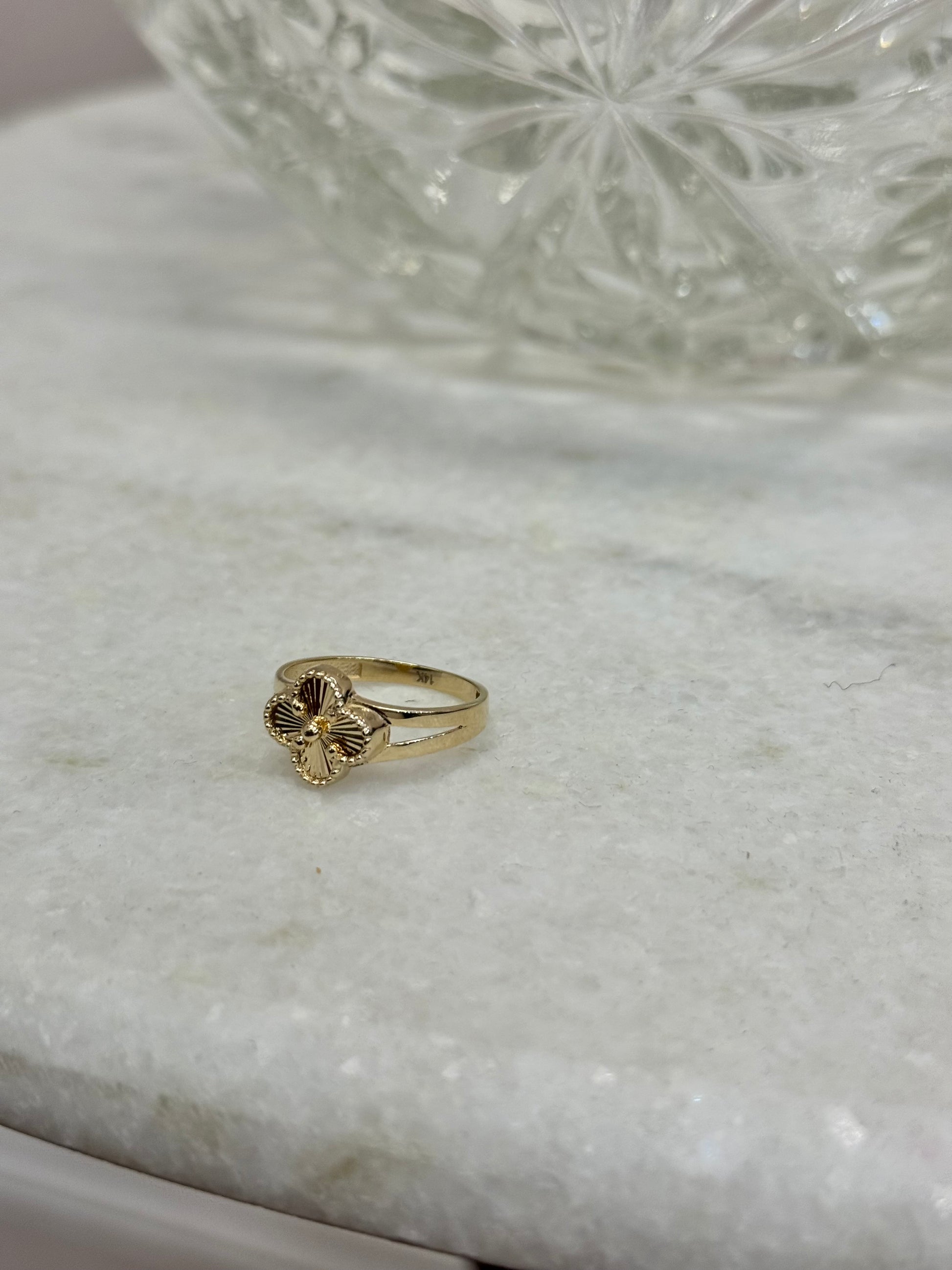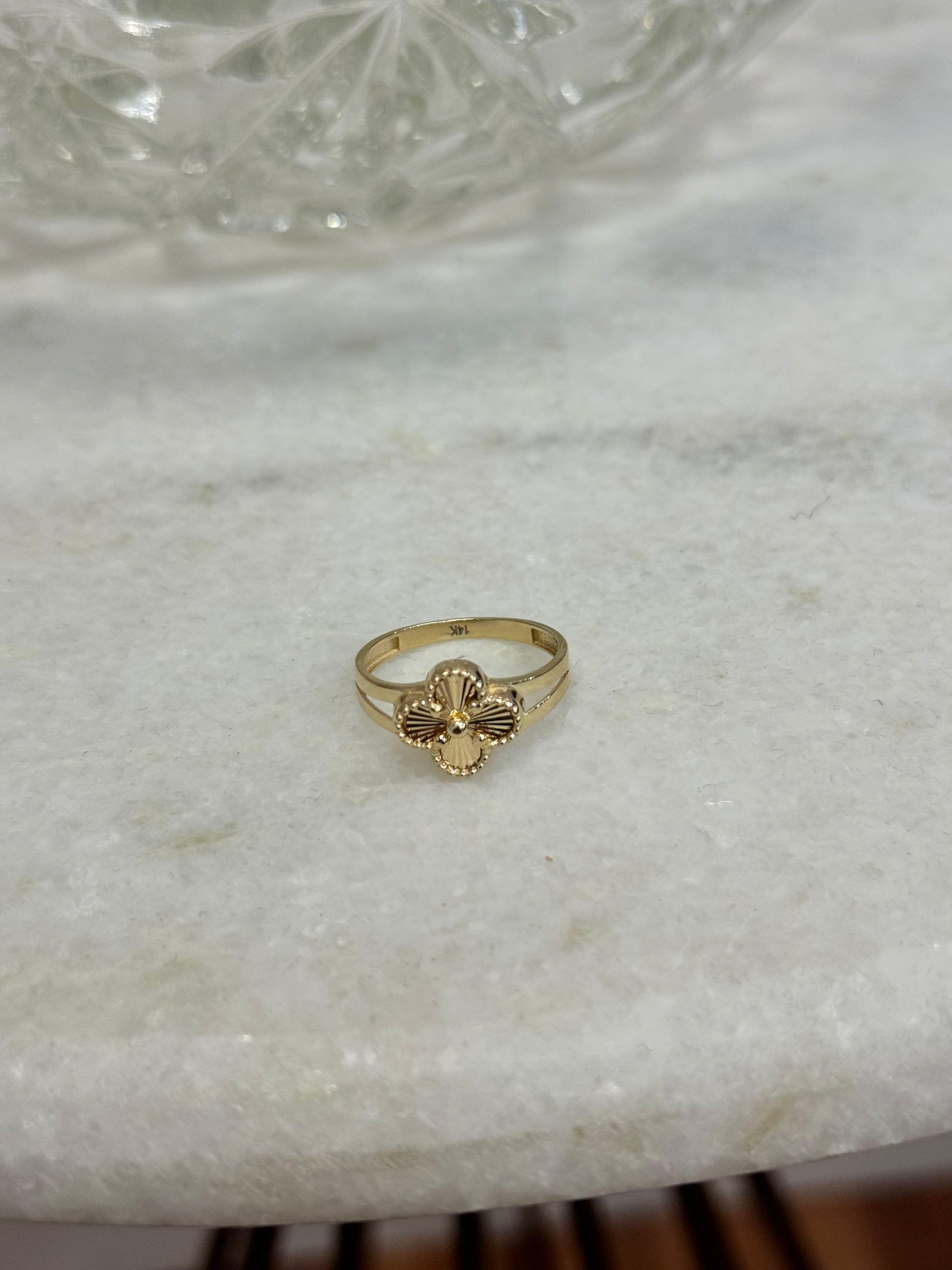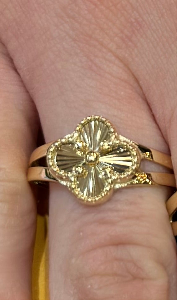 Crafted in solid 14k gold, this Van Cleef ring for women is guaranteed to add a touch of elegance and sophistication to any outfit. With its perfect size 8 fit, it is a timeless and versatile piece that will elevate any look. A must-have for any jewelry collection.