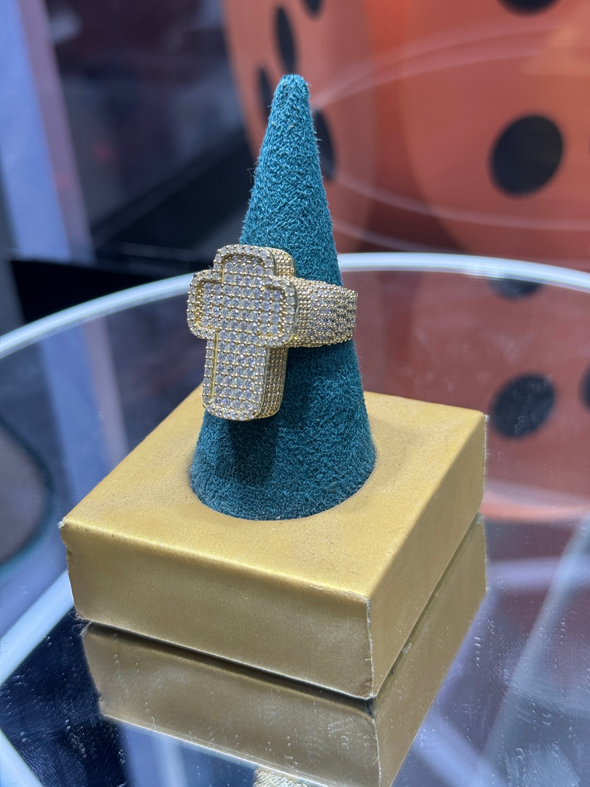 ✨ A stunning 14K gold ring featuring a sparkling cubic zirconia cross design, crafted to stand out with elegance and confidence.