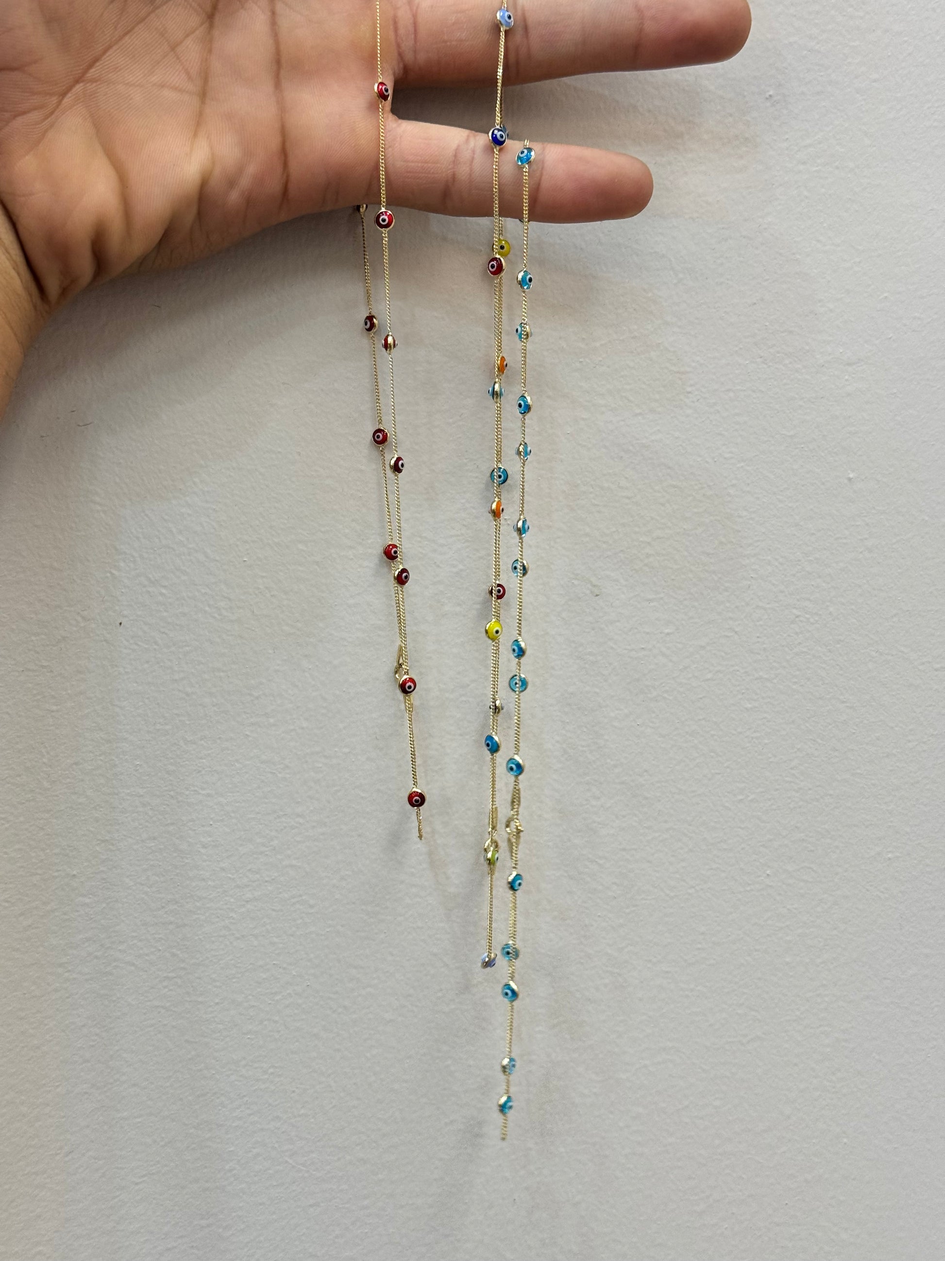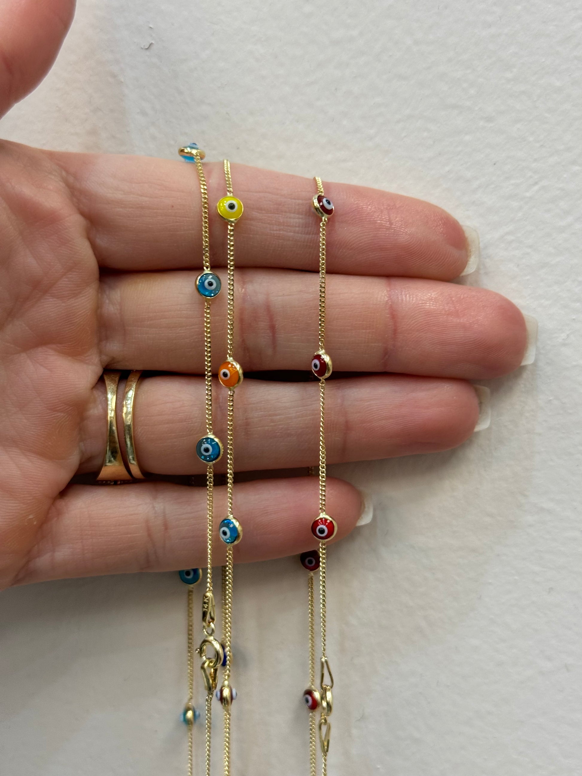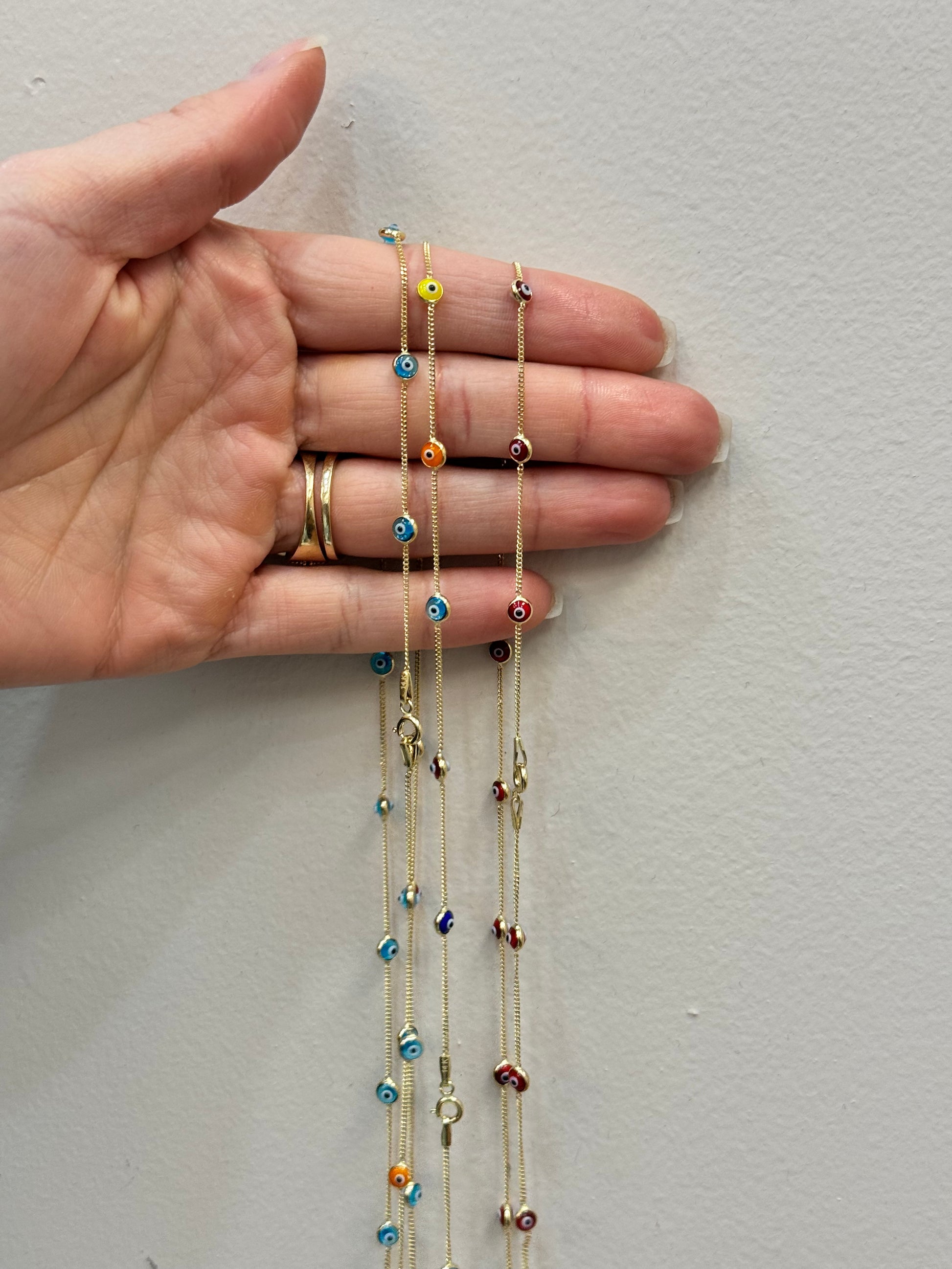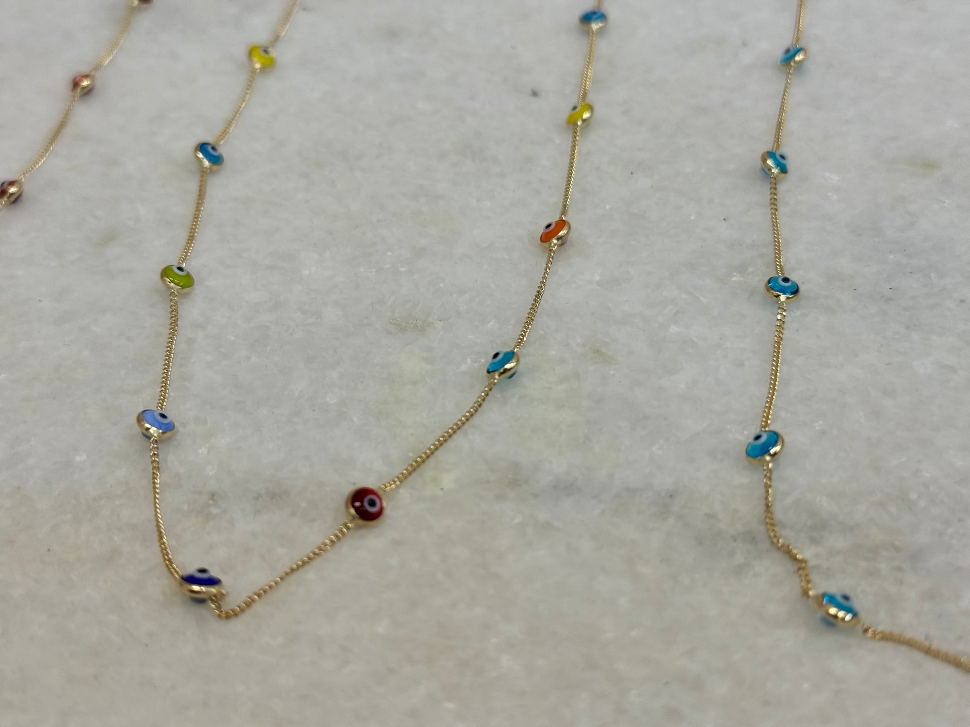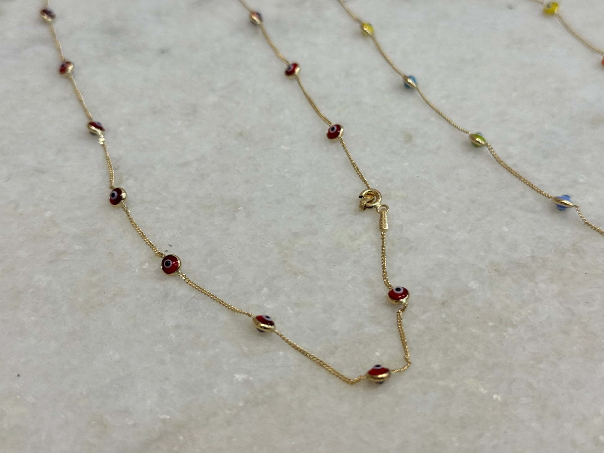 This 16" gold chain necklace with a delicate Evil Eye charm is made of high-quality 14k gold. It offers both style and protection, making it a perfect addition to any woman's wardrobe.