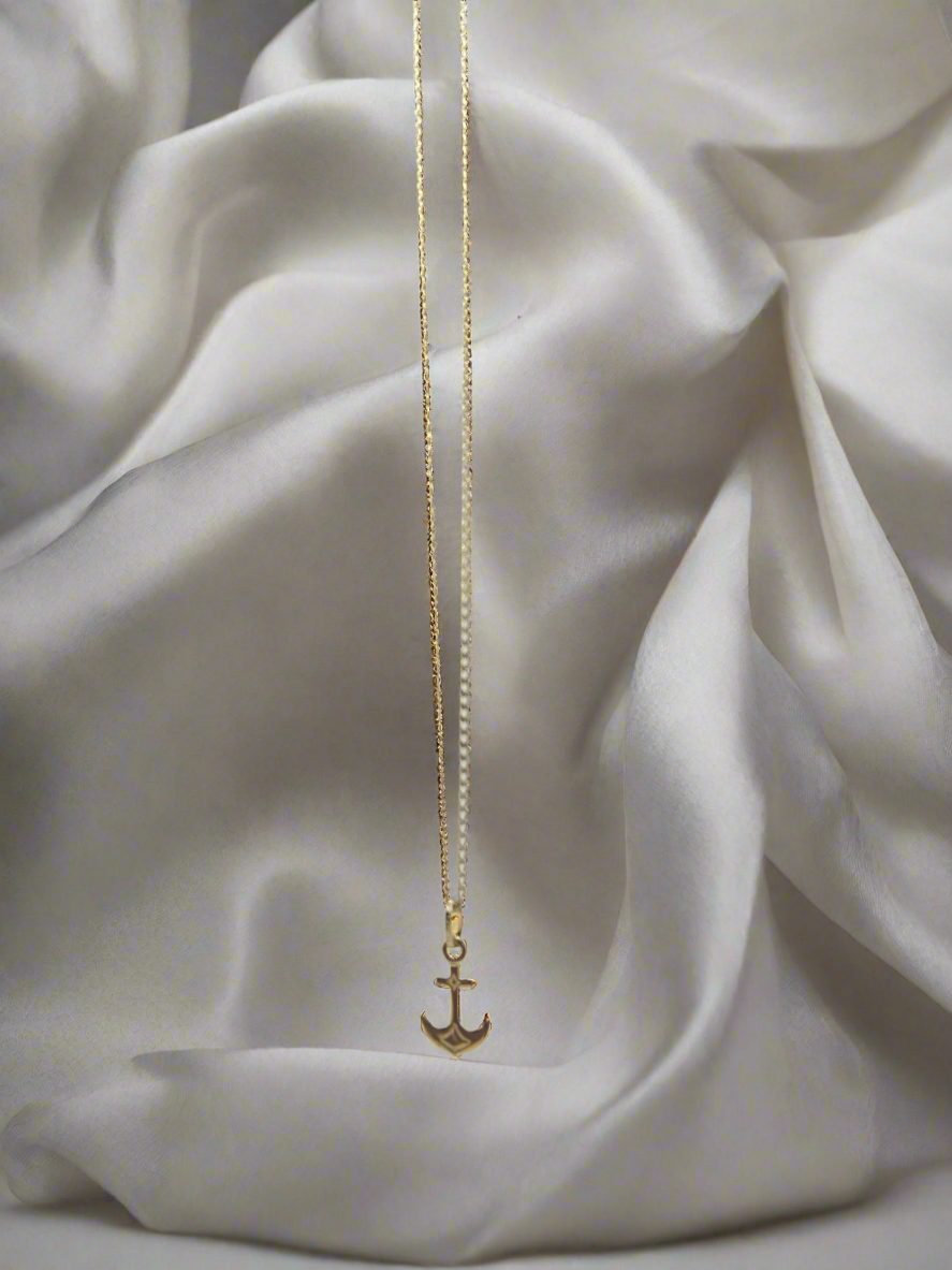 This 18-inch Cuban link chain is crafted from genuine, high-quality 14k solid gold and features a unique 2 tone design with an elegant anchor pendant.