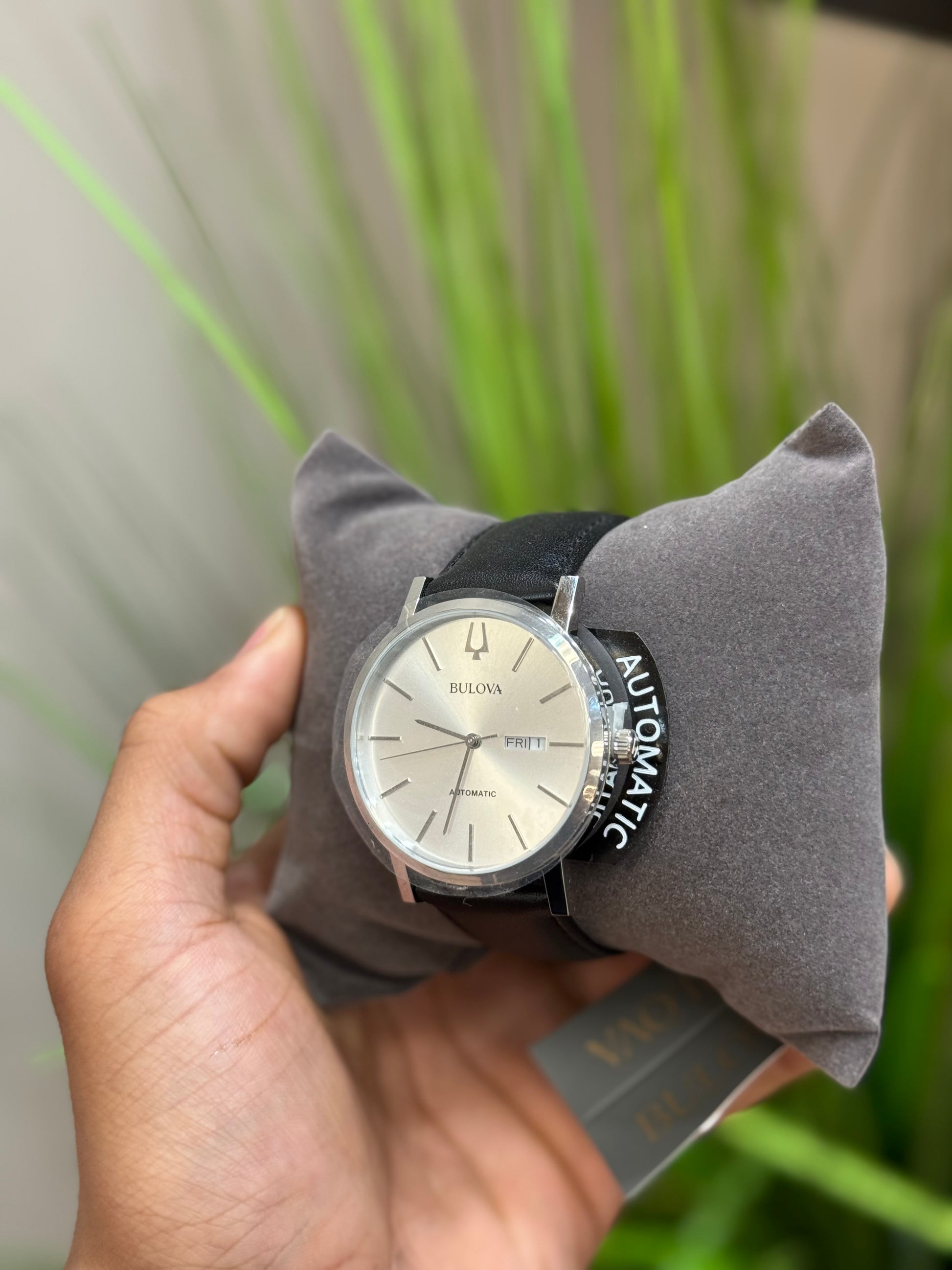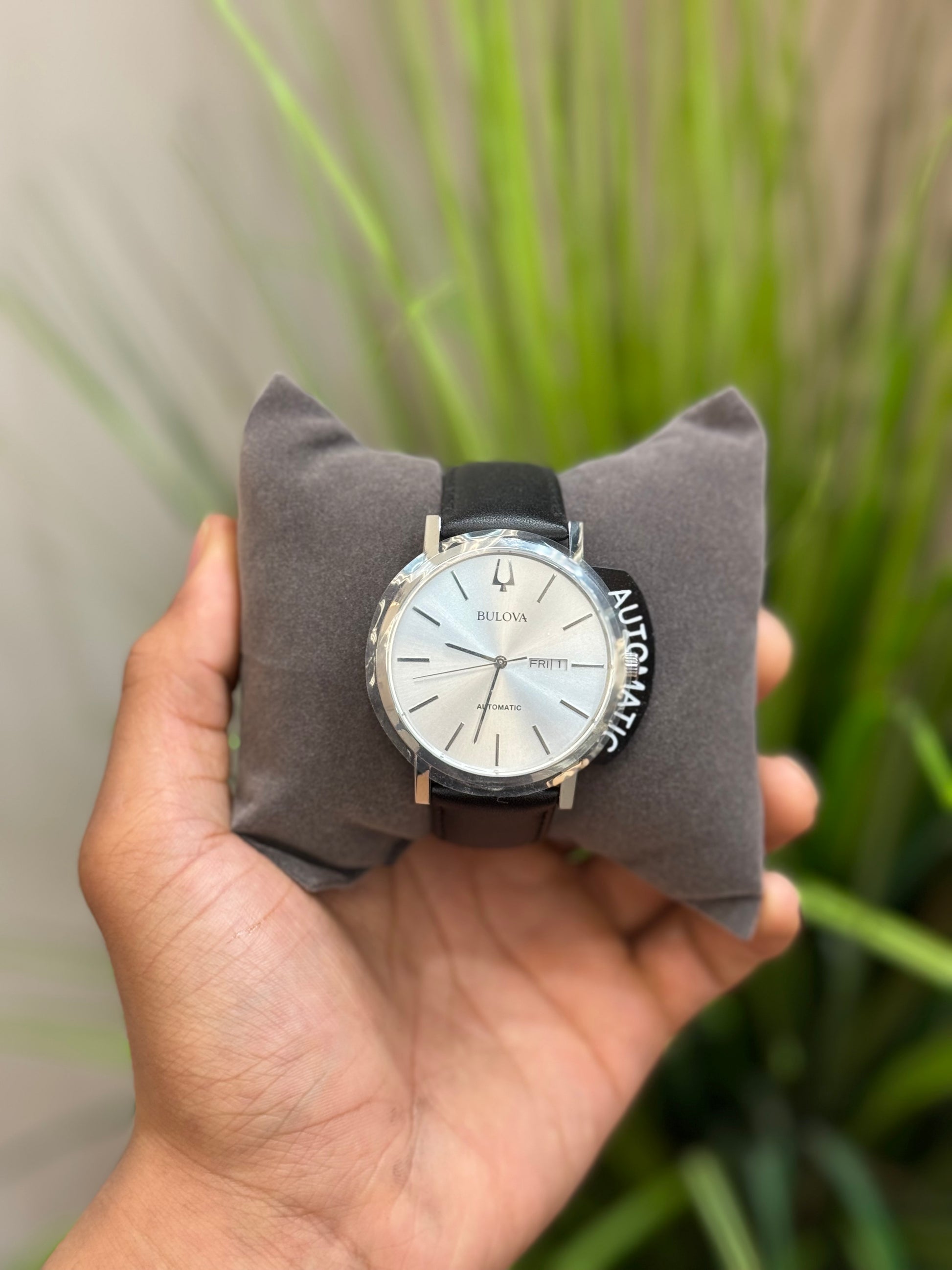 Bulova American Clipper 96C130 Automatic Silver Dial Date Day Indicator Watch