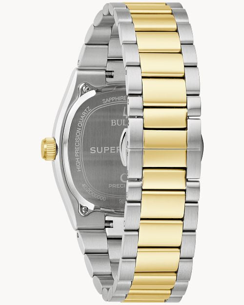 Inspired by the iconic 1970s Day-Date, the new Bulova Super Seville fuses retro luxury with today’s finest technology. With its bold two-tone gold & silver stainless steel build and revolutionary Precisionist movement, this timepiece is crafted for the man who demands both style and performance.