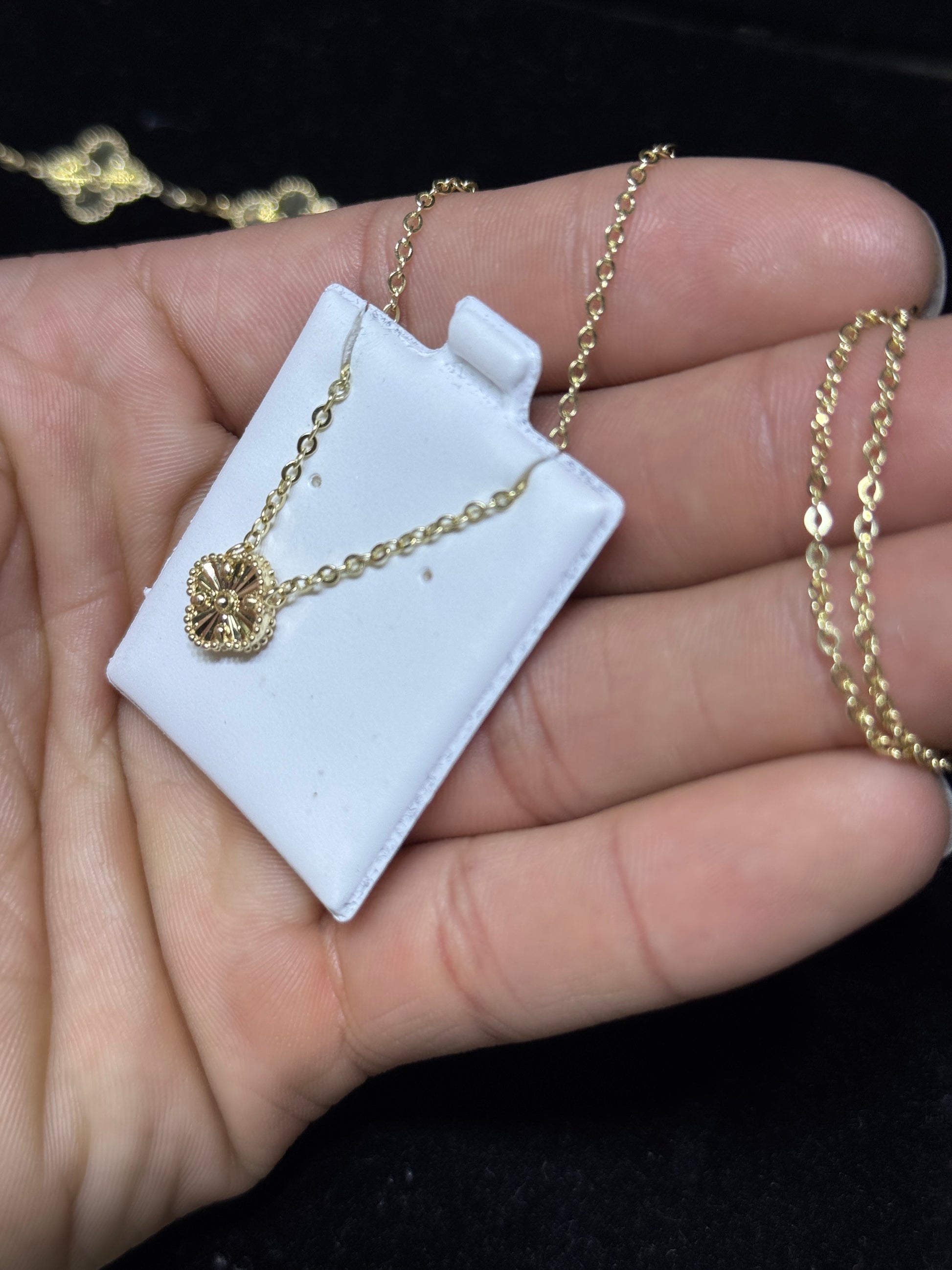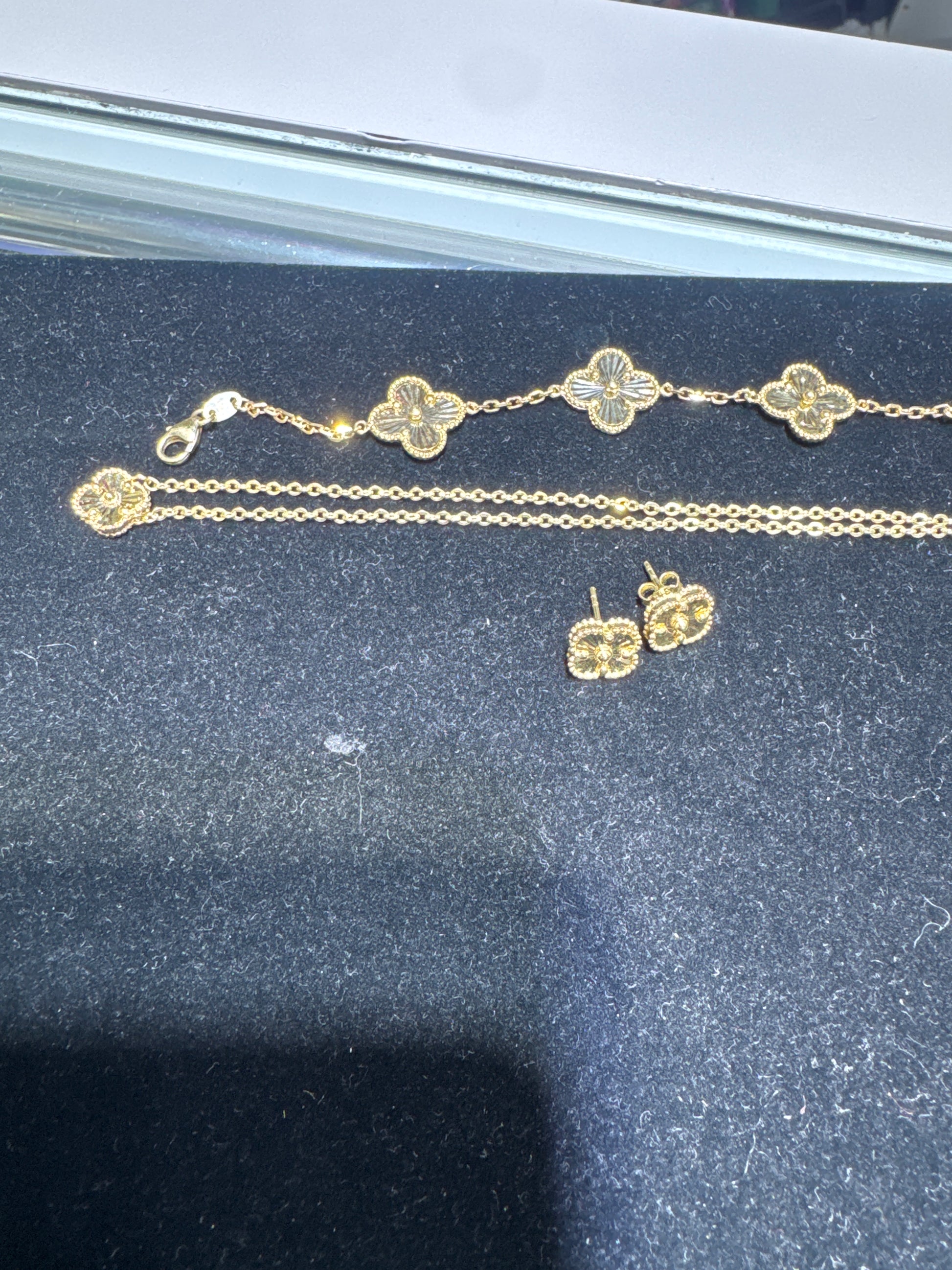 Luxury 3-piece clover bundle featuring a matching necklace, bracelet, and earrings crafted in real 14K gold. Timeless clover design that symbolizes luck, elegance, and prosperity — perfect as a full set or a premium gift.
