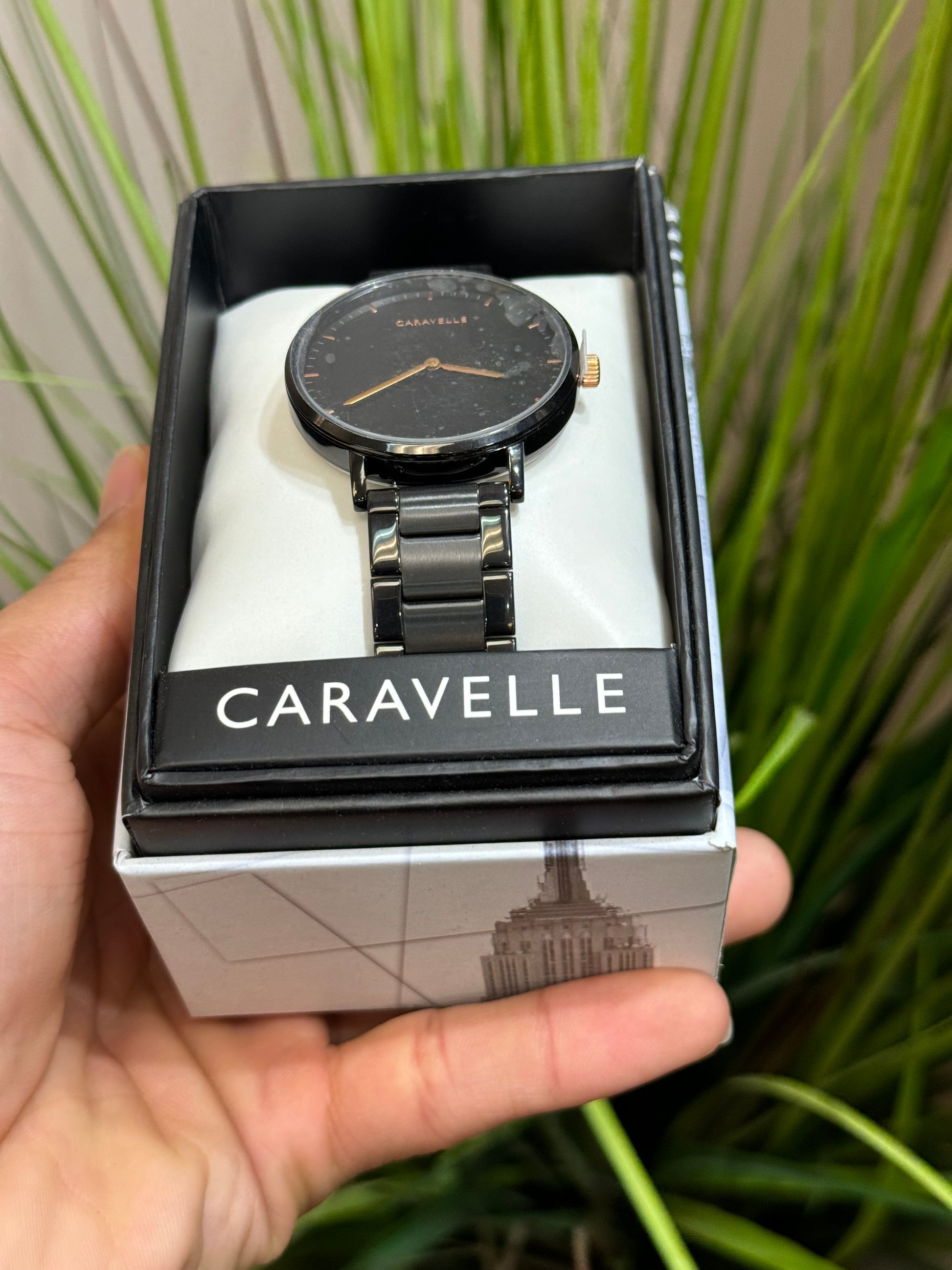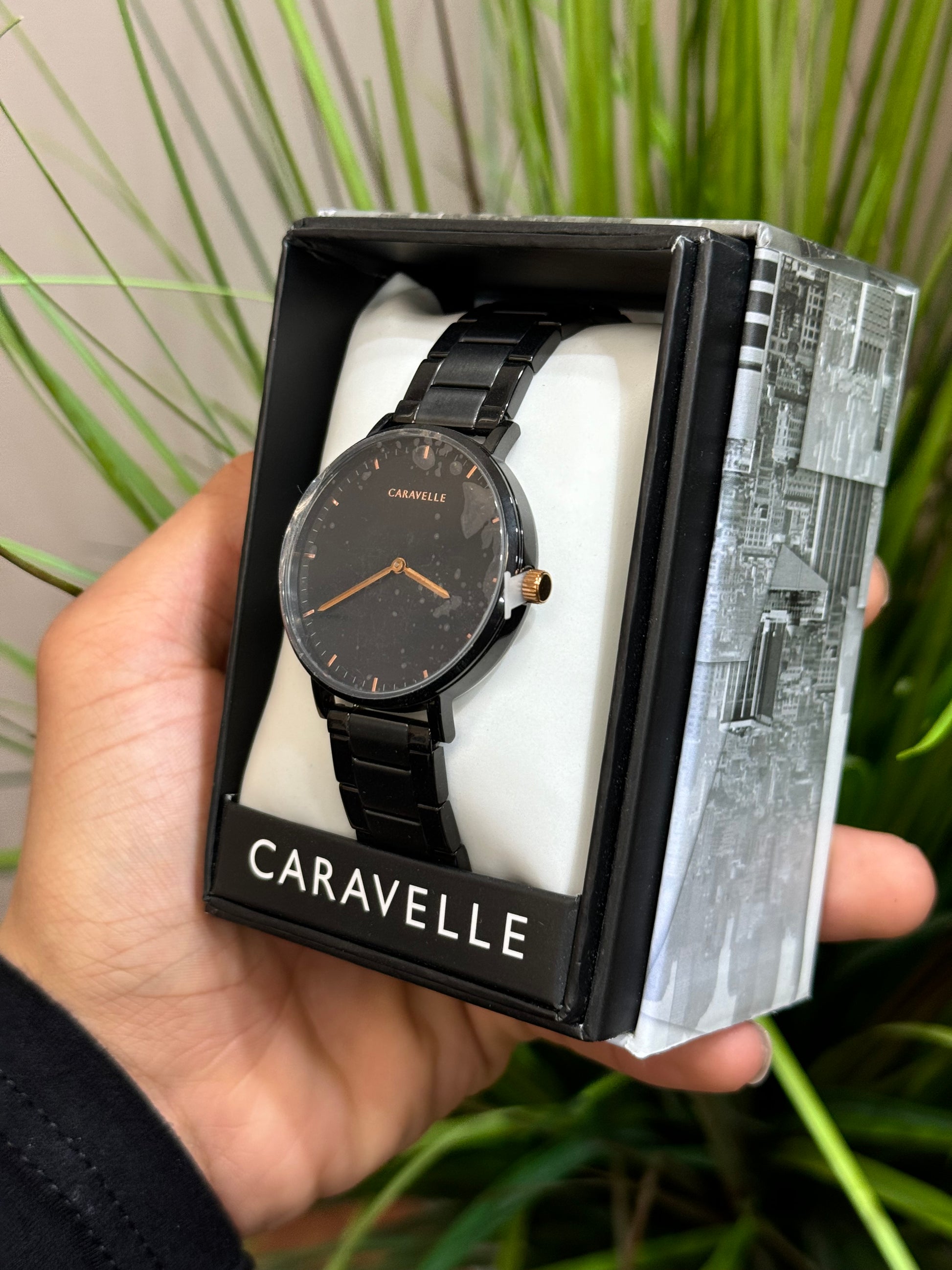 Caravelle Unisex Quartz Watch – Timeless Elegance in Black & Rose Gold