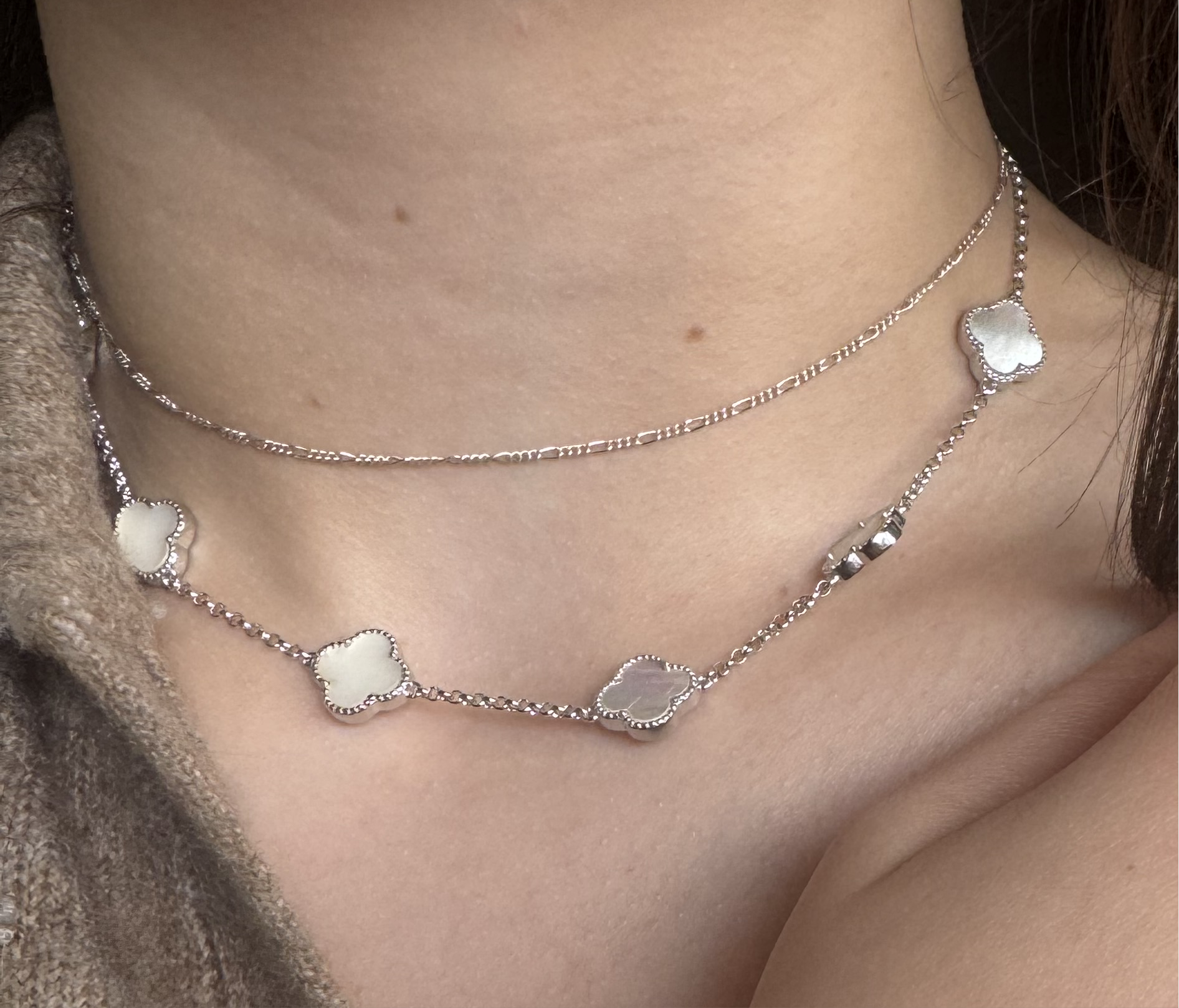 💎 Silver Clover Set – Elegance & Good Fortune 💎