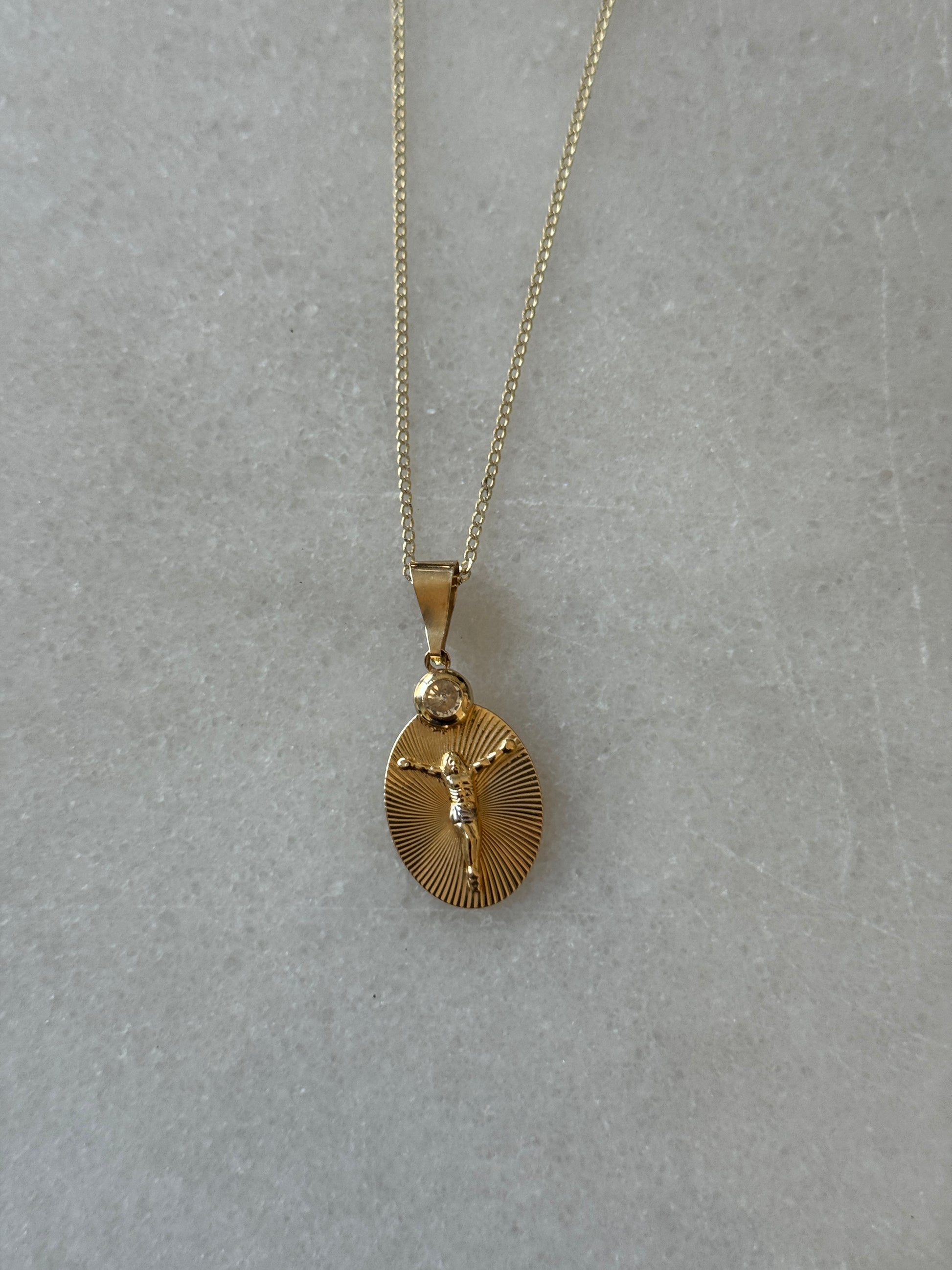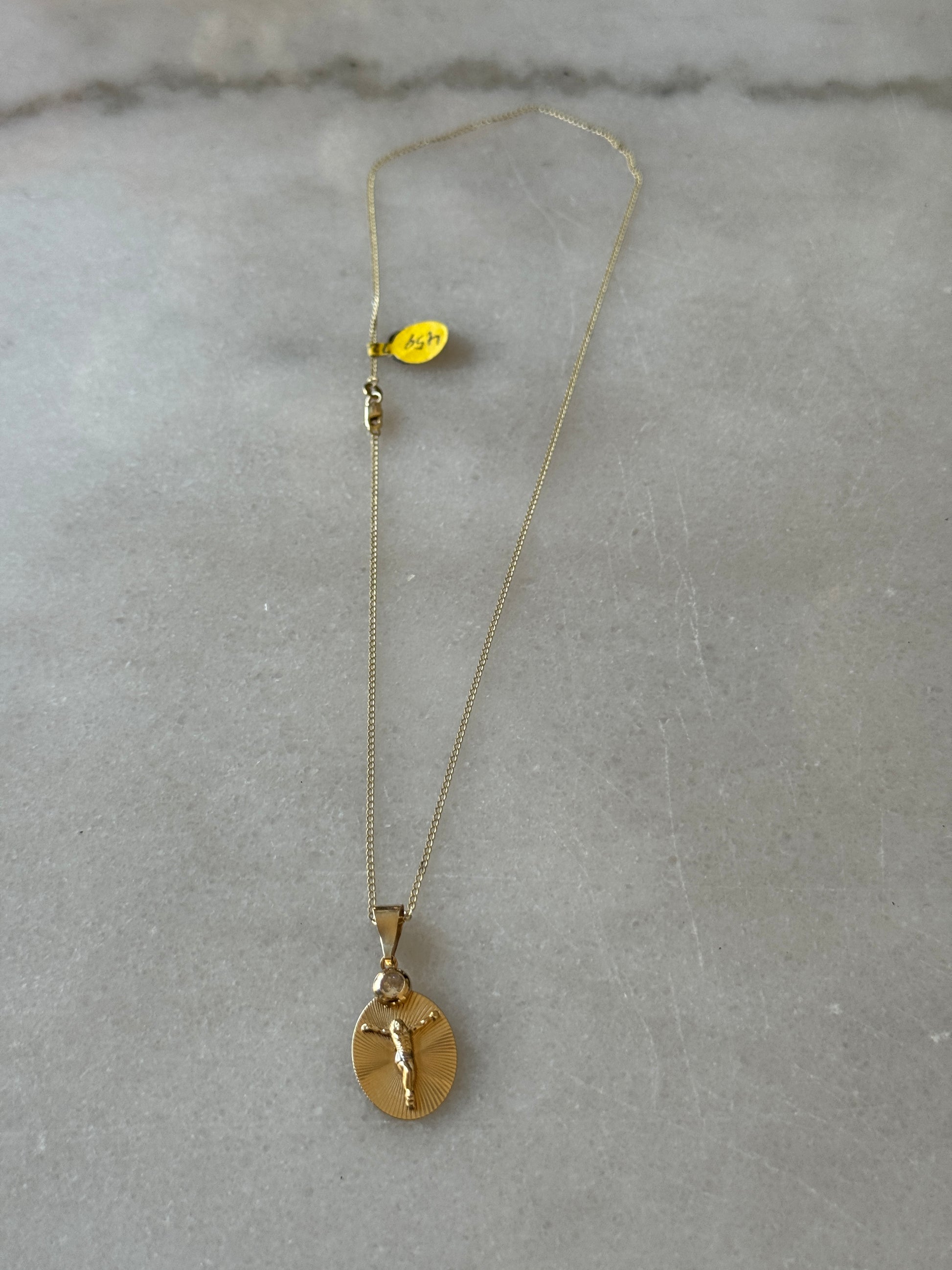 ๐Ÿ’Ž 2-Tone 14K Gold Curb Link Chain with Crucifix โ€“ For women ย ๐Ÿ’Ž