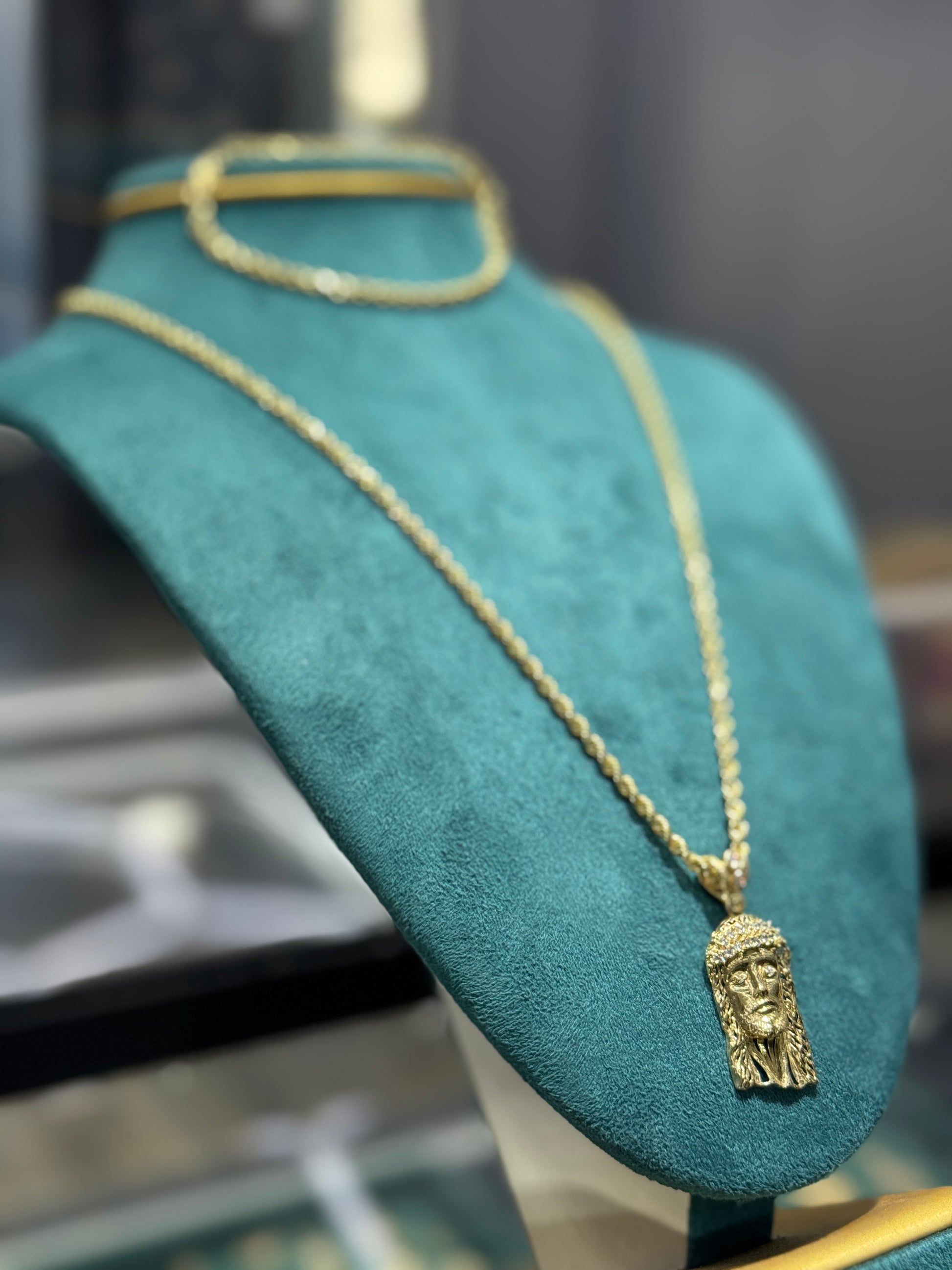 📿 Includes rope chain, rope bracelet, and Jesus face pendant