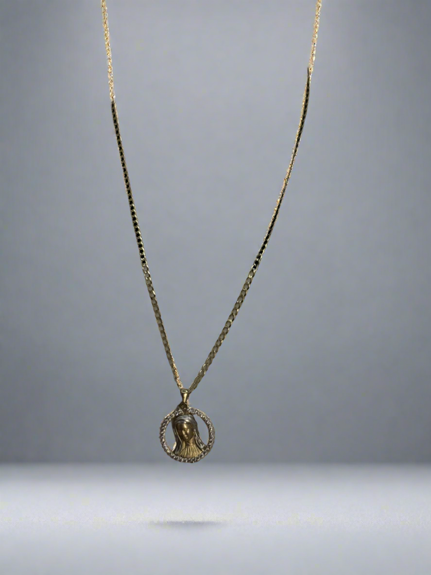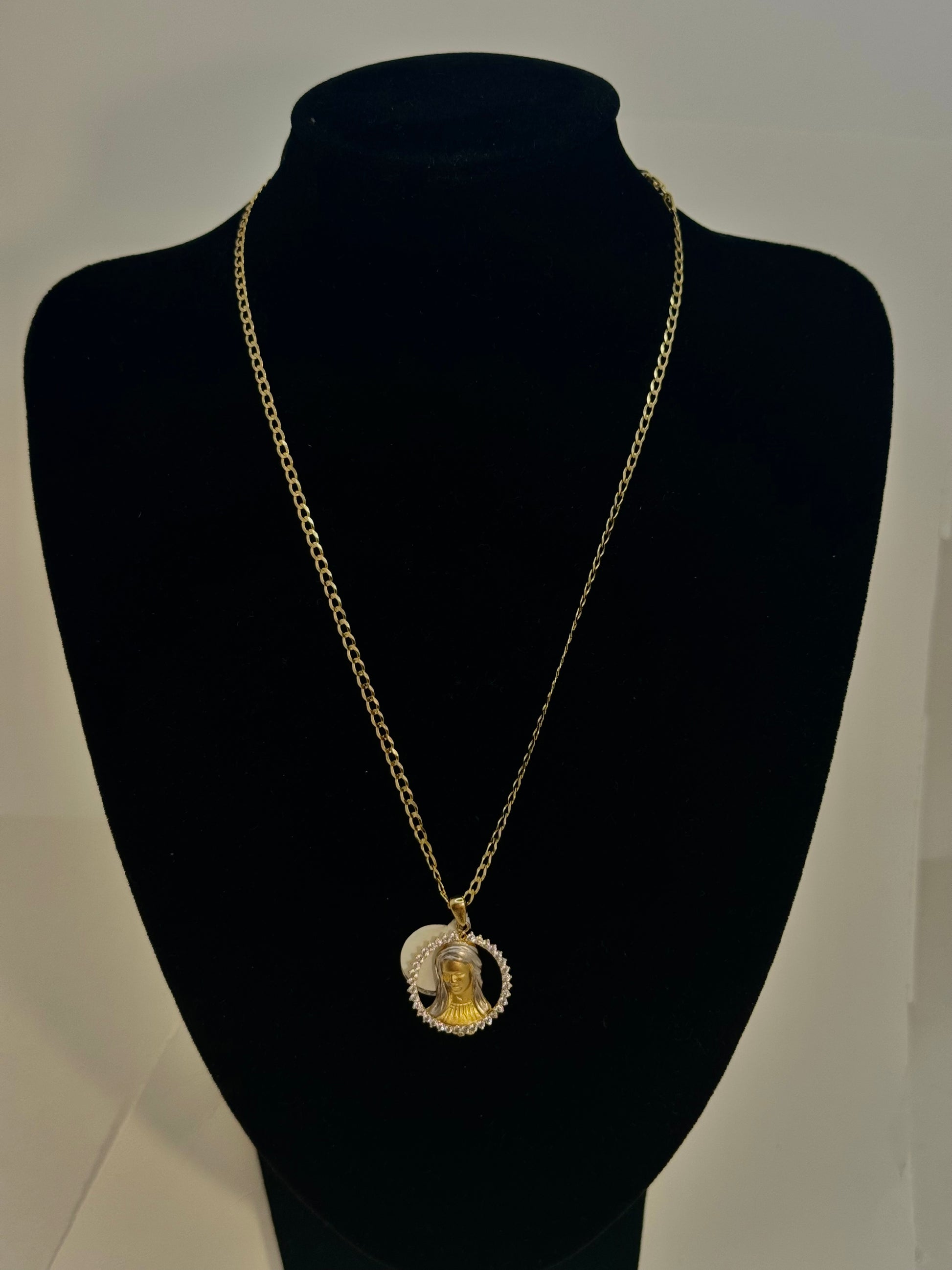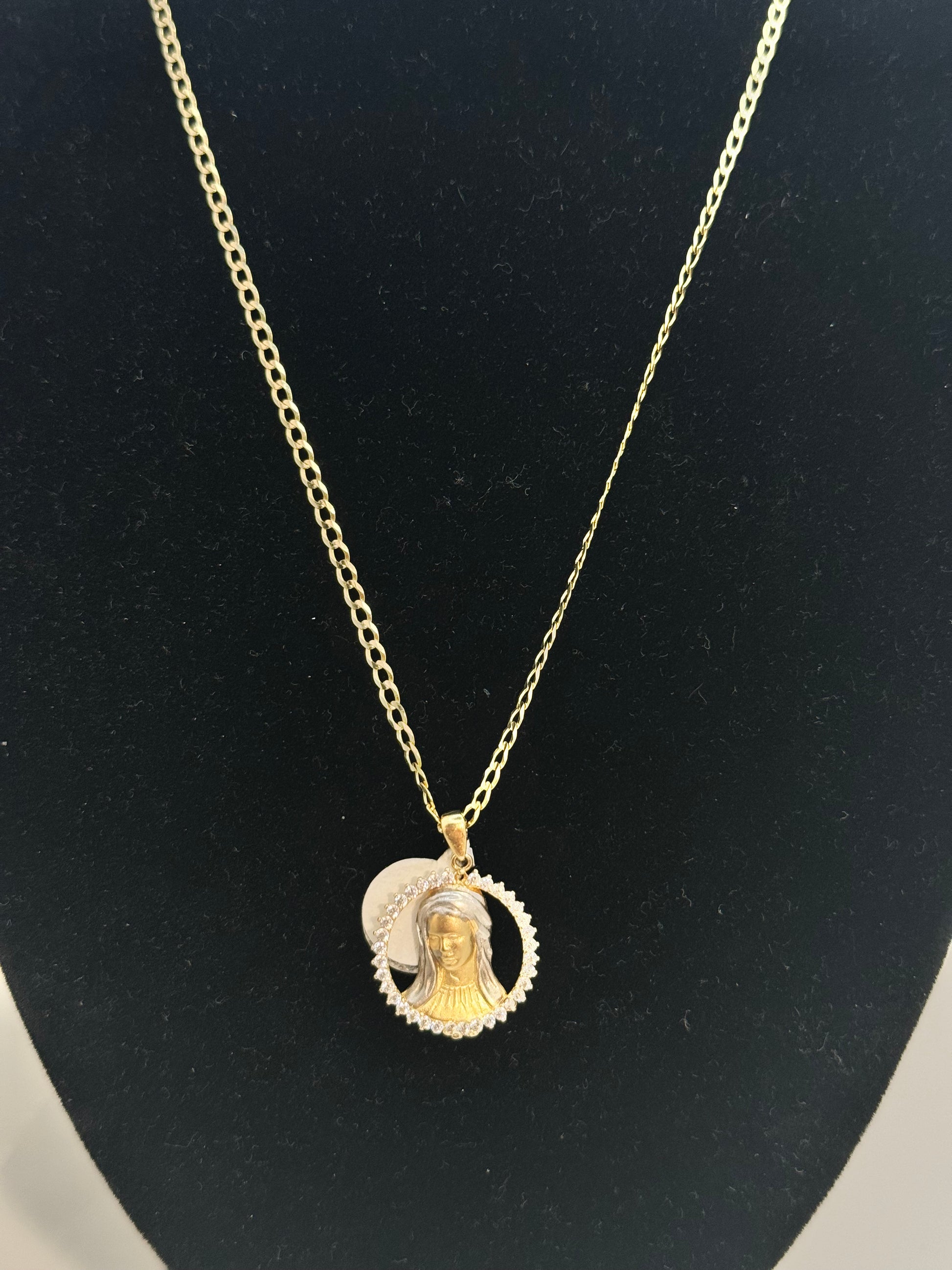 Single tone Cuban chain necklace with Virgin Mary pendant