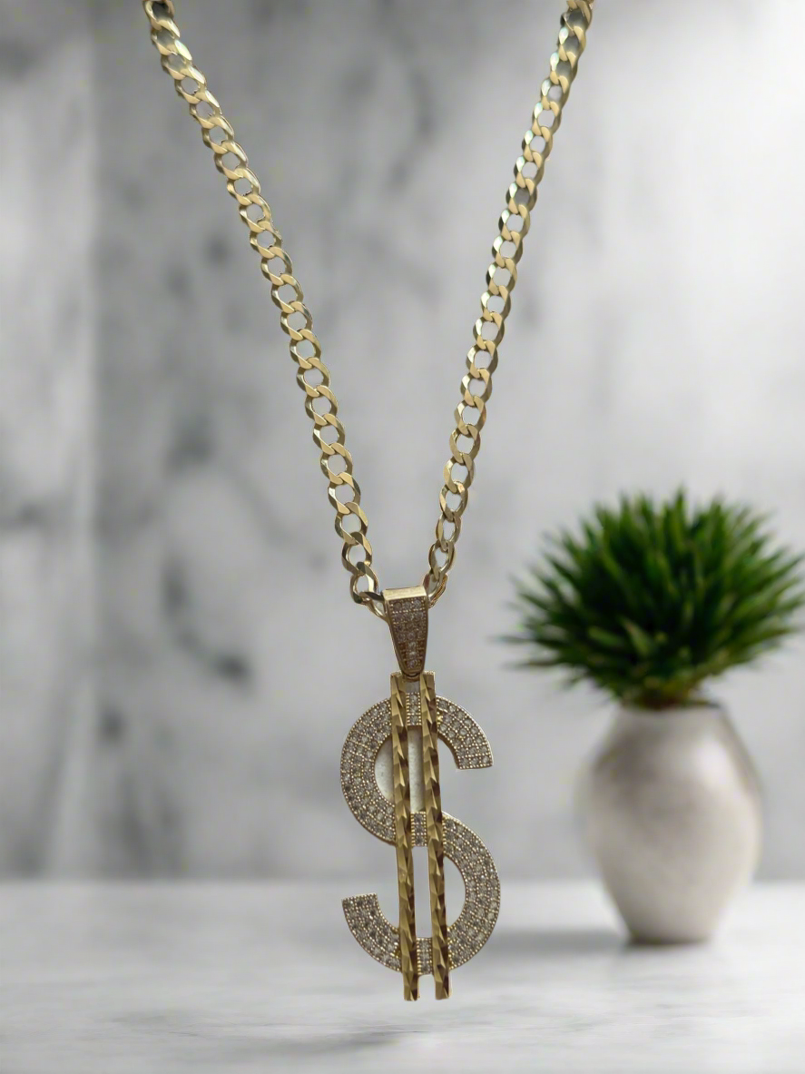 14K Gold Curb Link Chain with Dollar Sign Pendant –For men