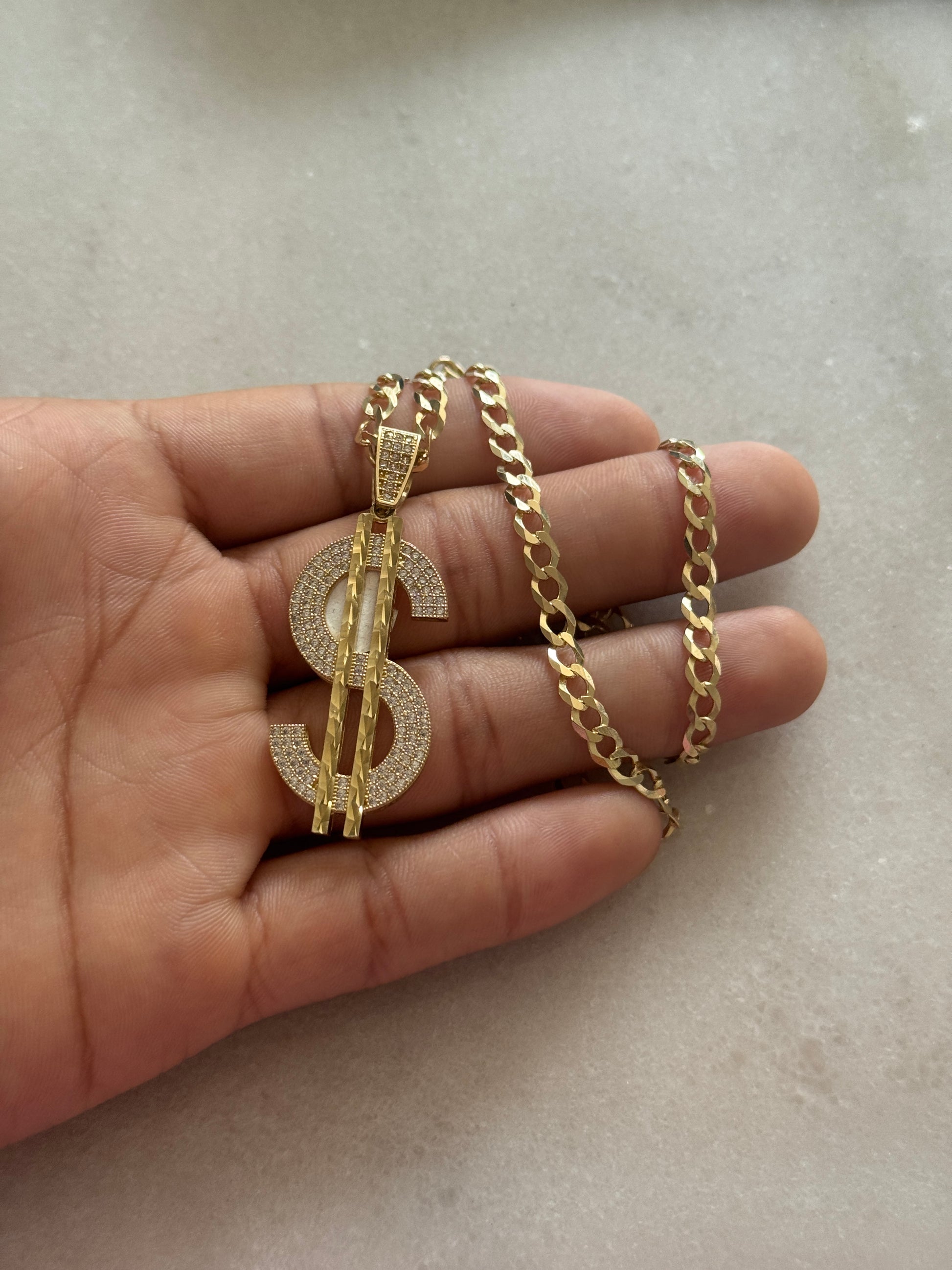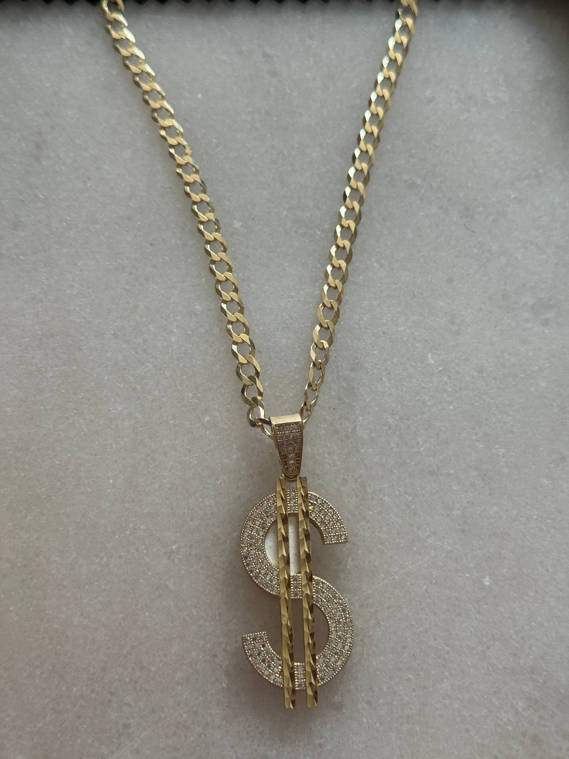 💎 14K Gold Curb Link Chain with Dollar Sign Pendant – Make a bold statement 💎
