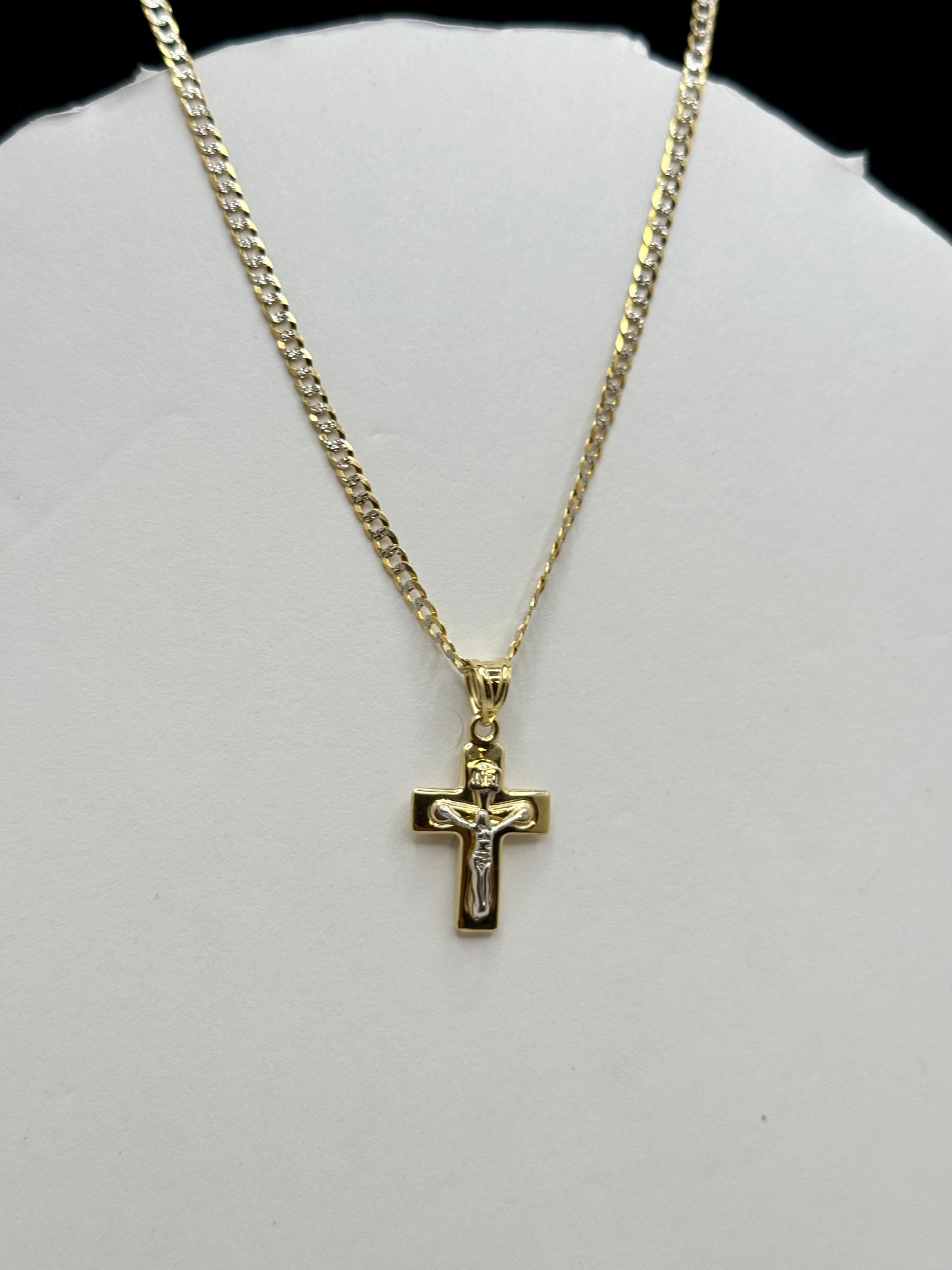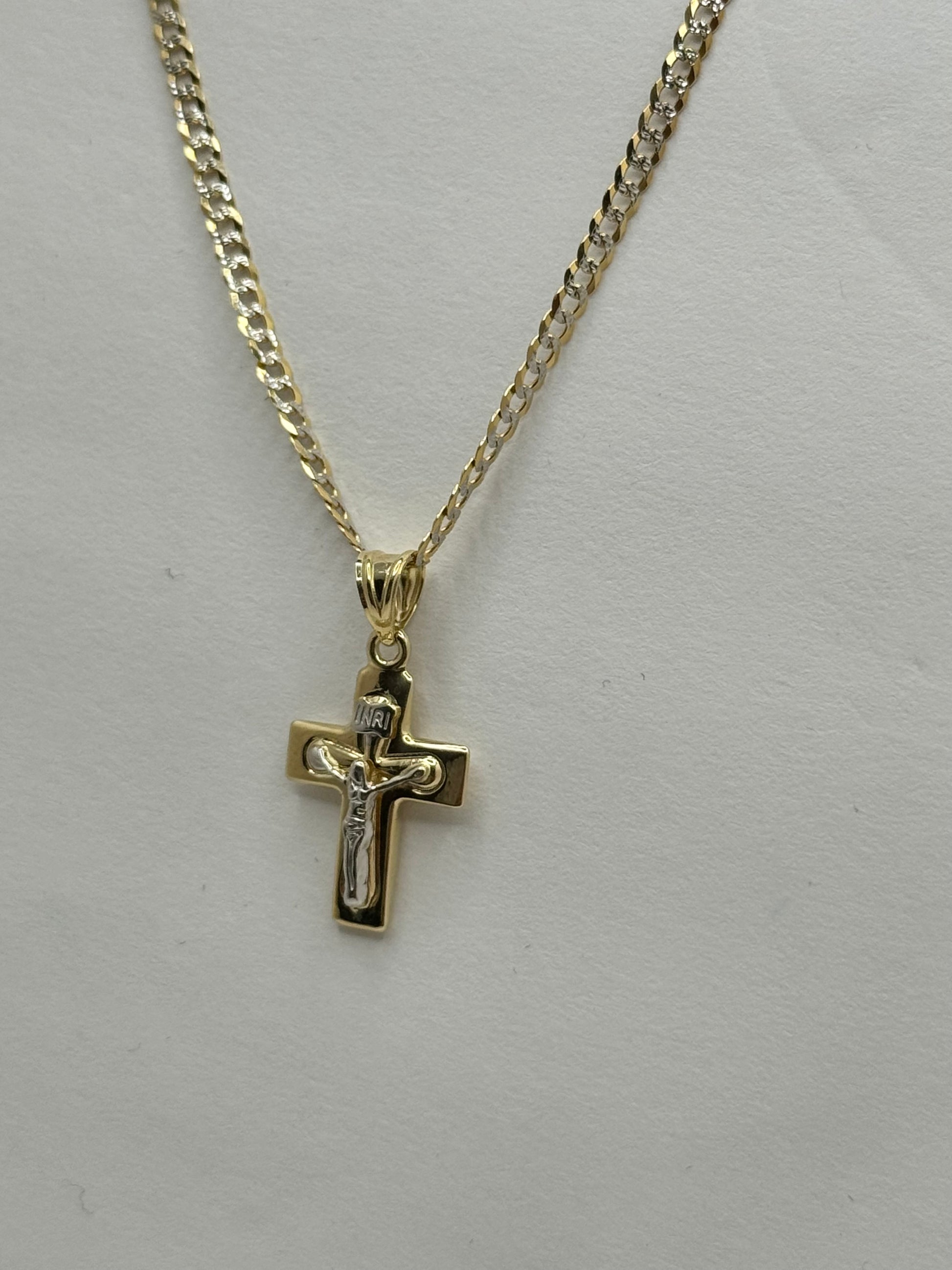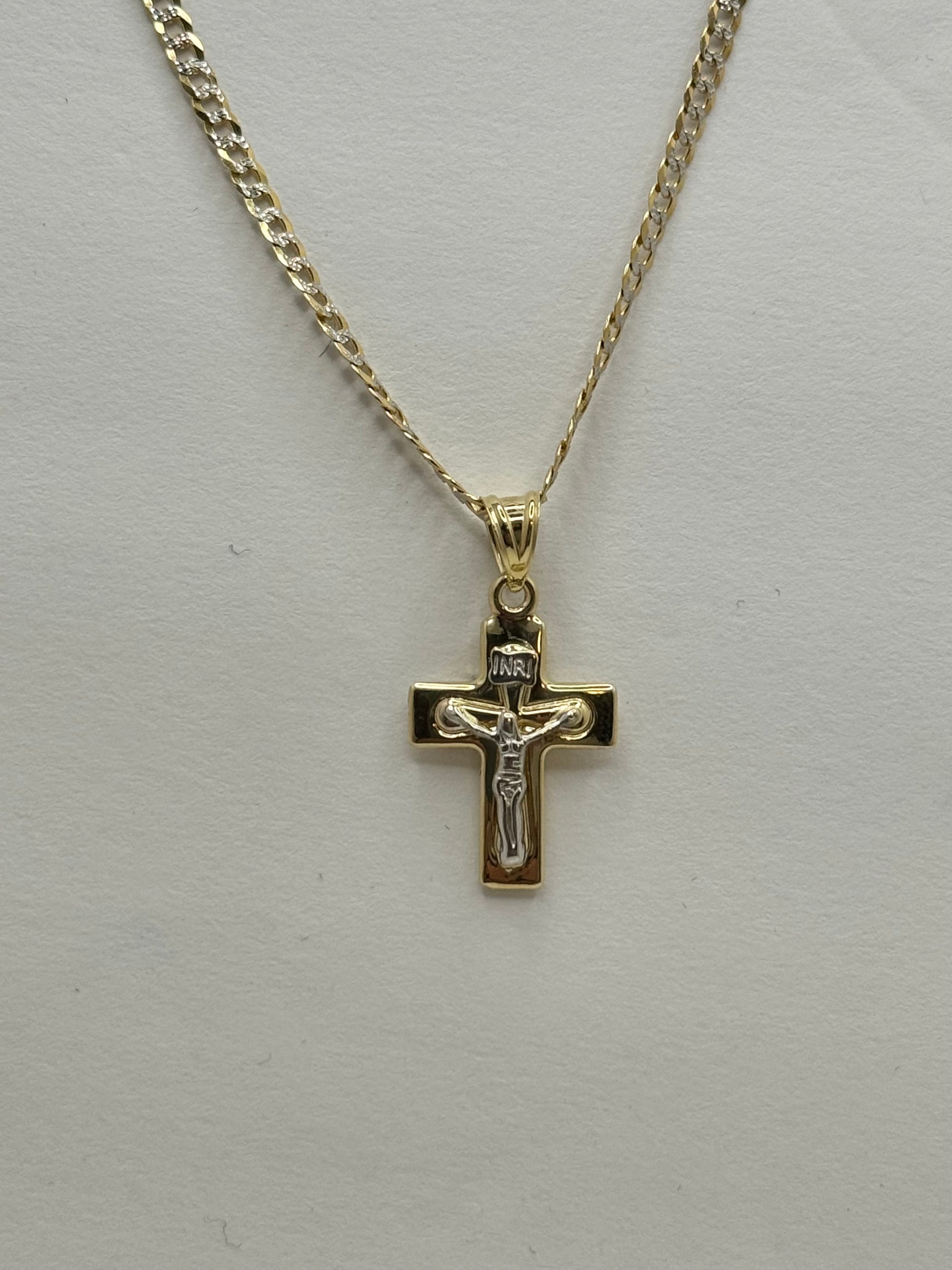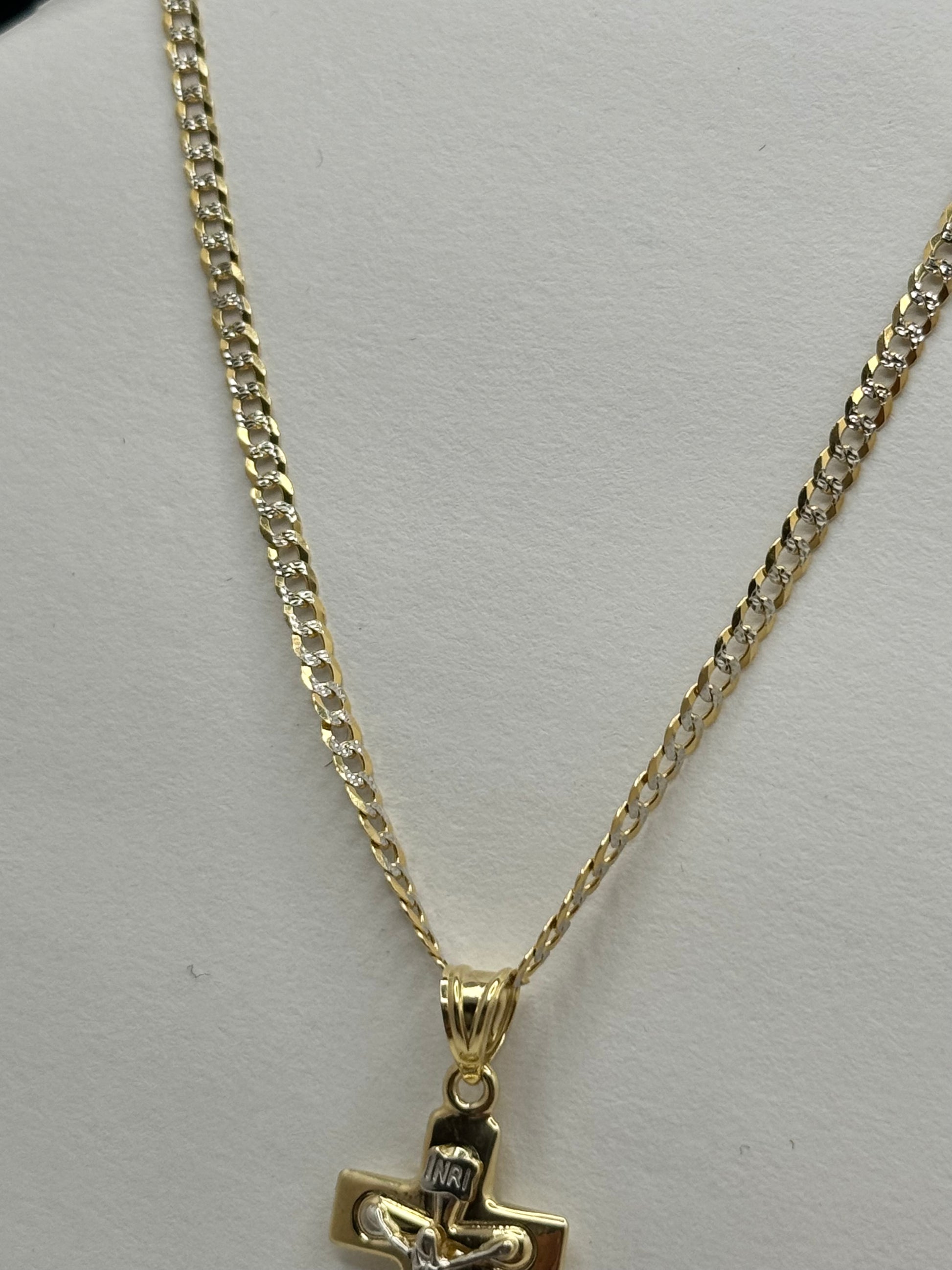 14k gold 18-inch 2-tone chain features a beautifully crafted Jesus pendant