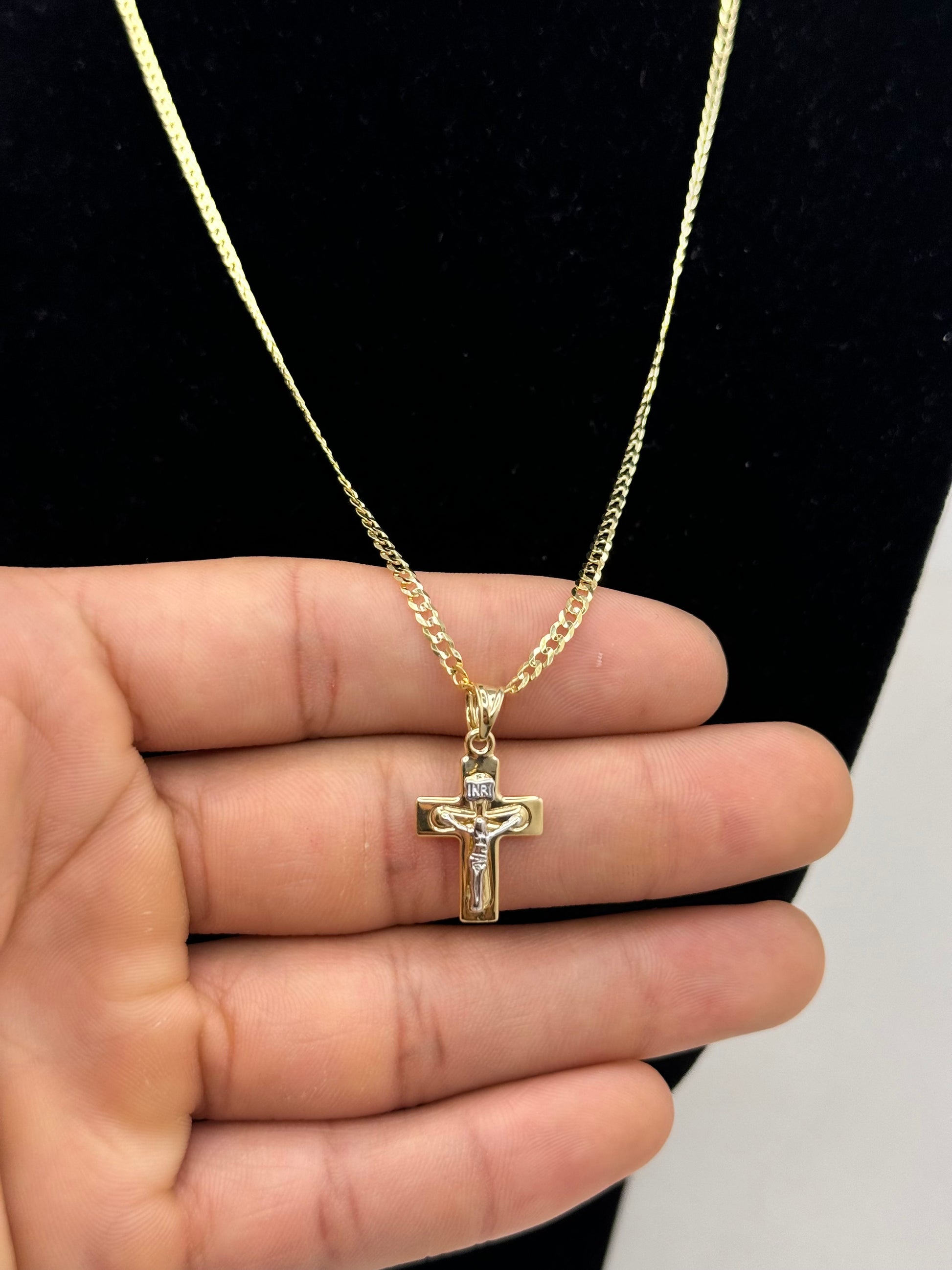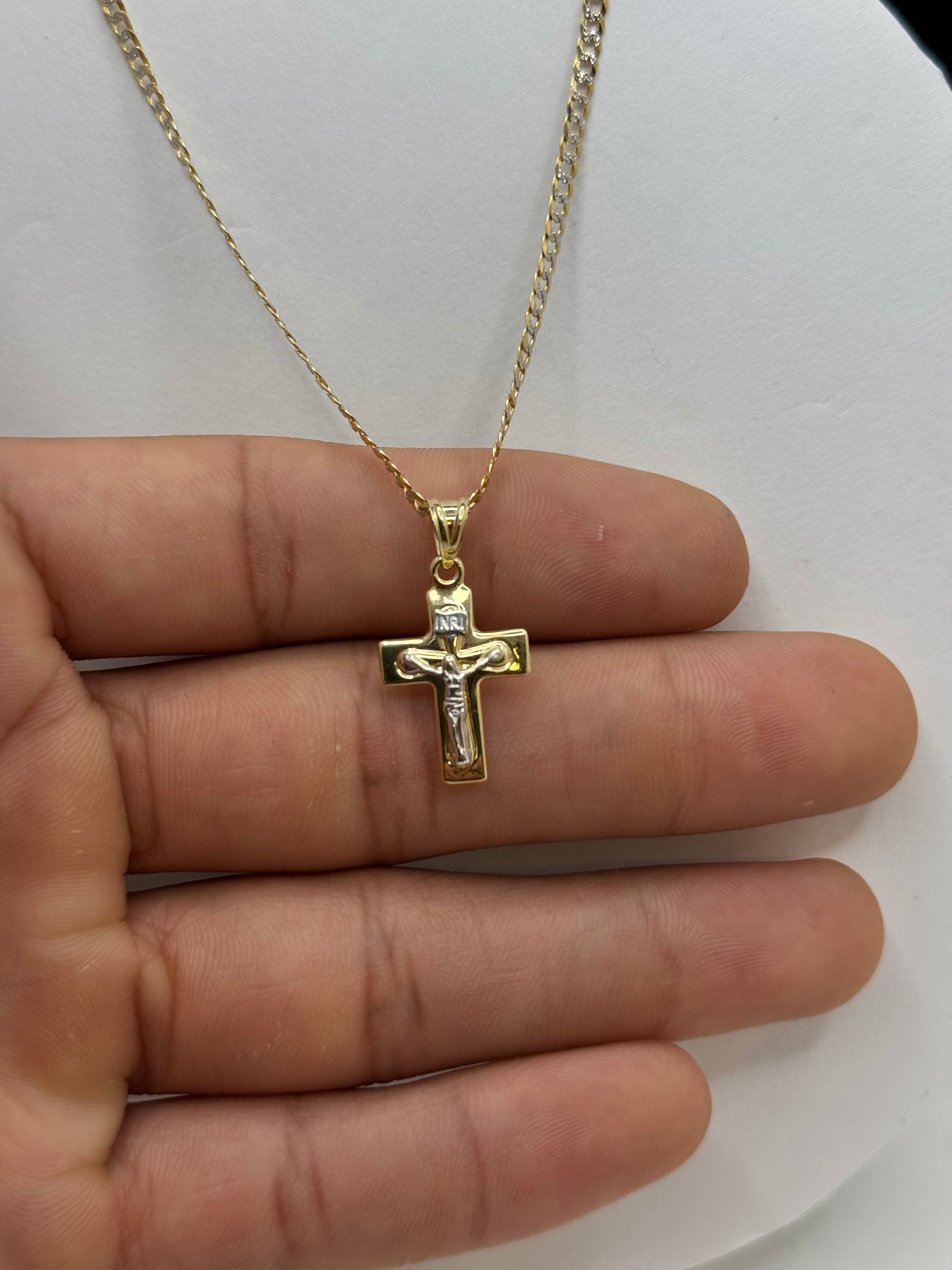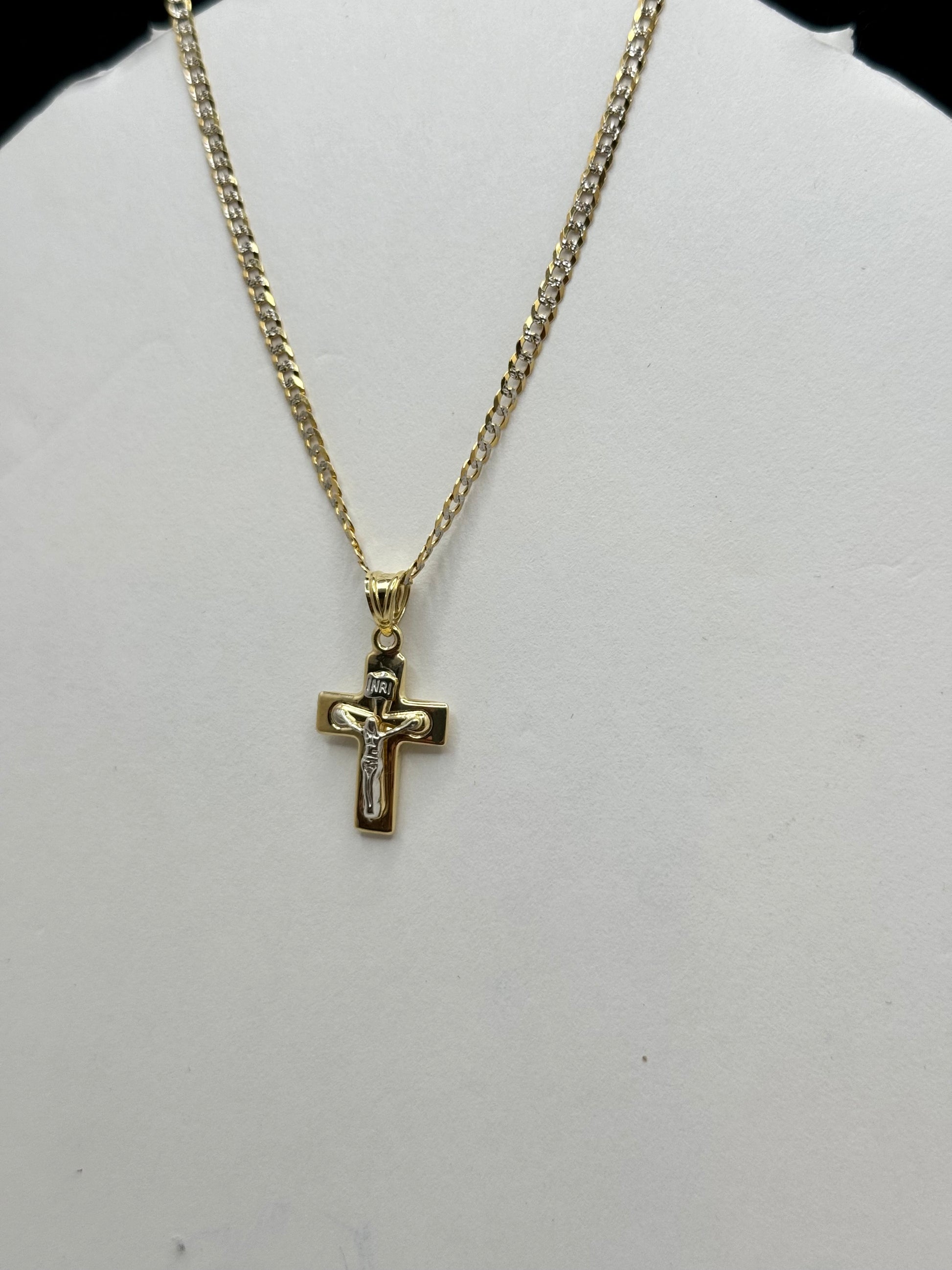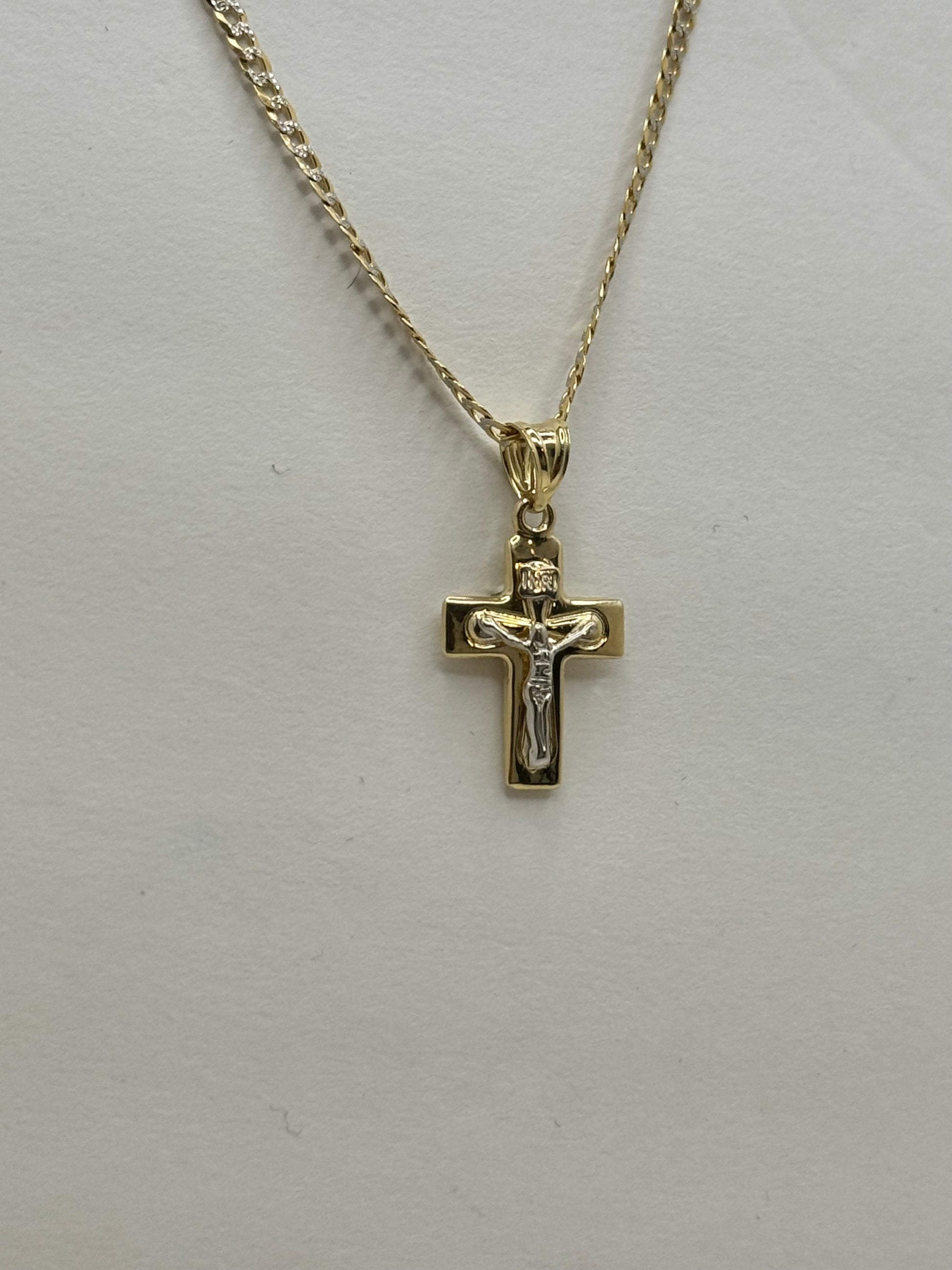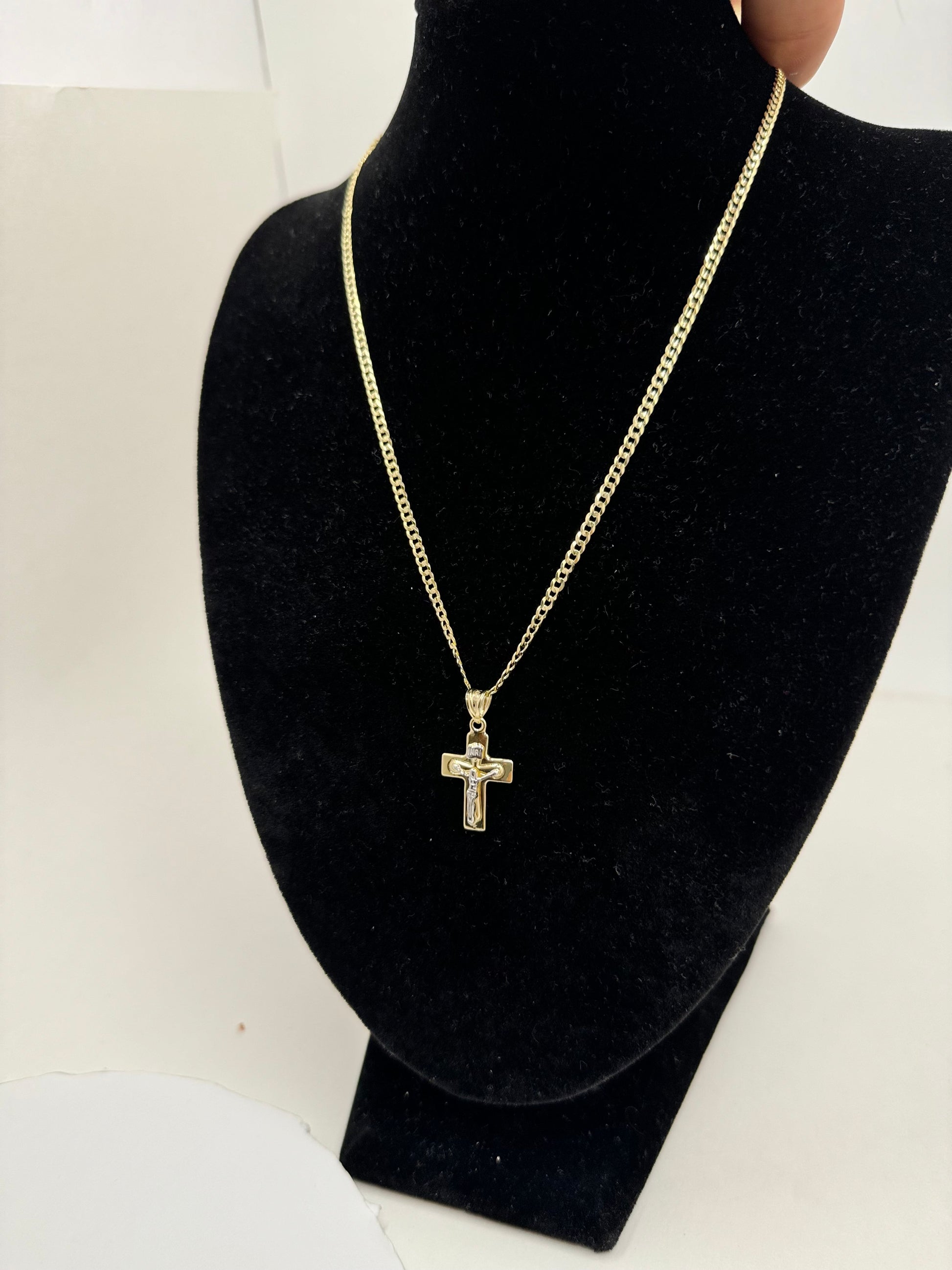 14k gold 18-inch 2-tone chain features a beautifully crafted Jesus pendant