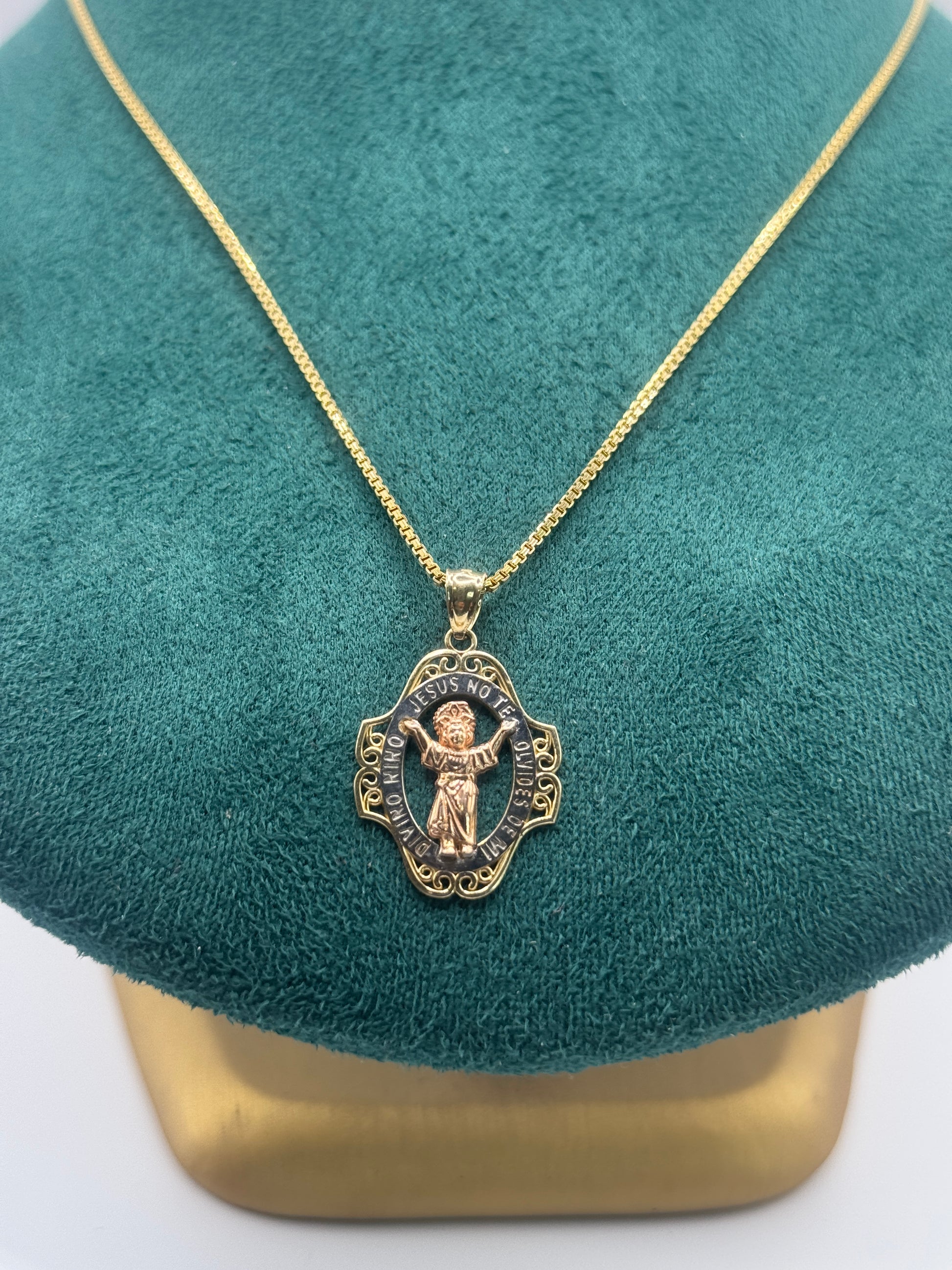 14K Gold Box Chain Necklace with Divine Child Jesus Pendant – 24 Inches | Unisex
