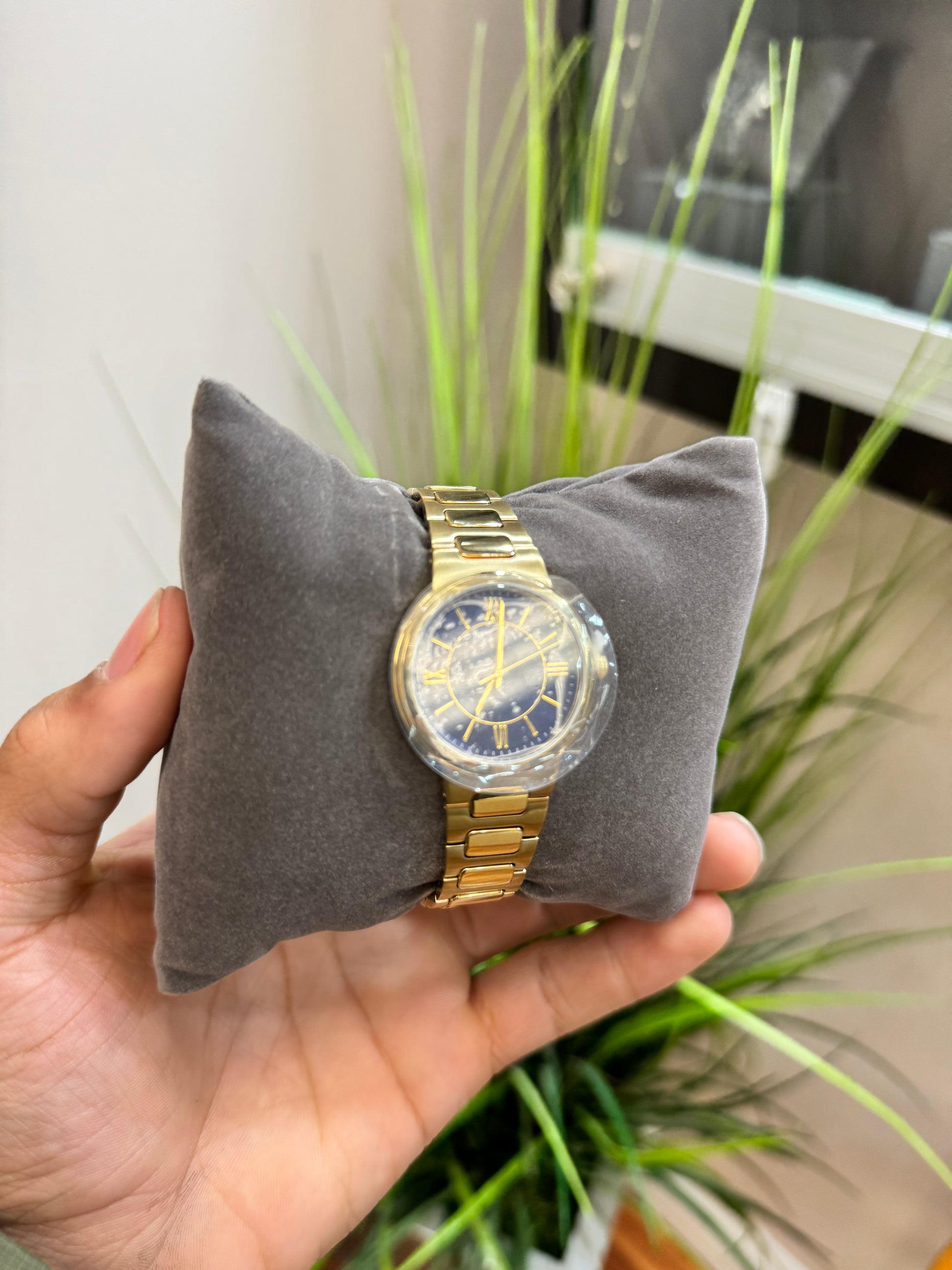 🎨 Stunning gold-tone stainless steel strap – complements the bold blue dial.