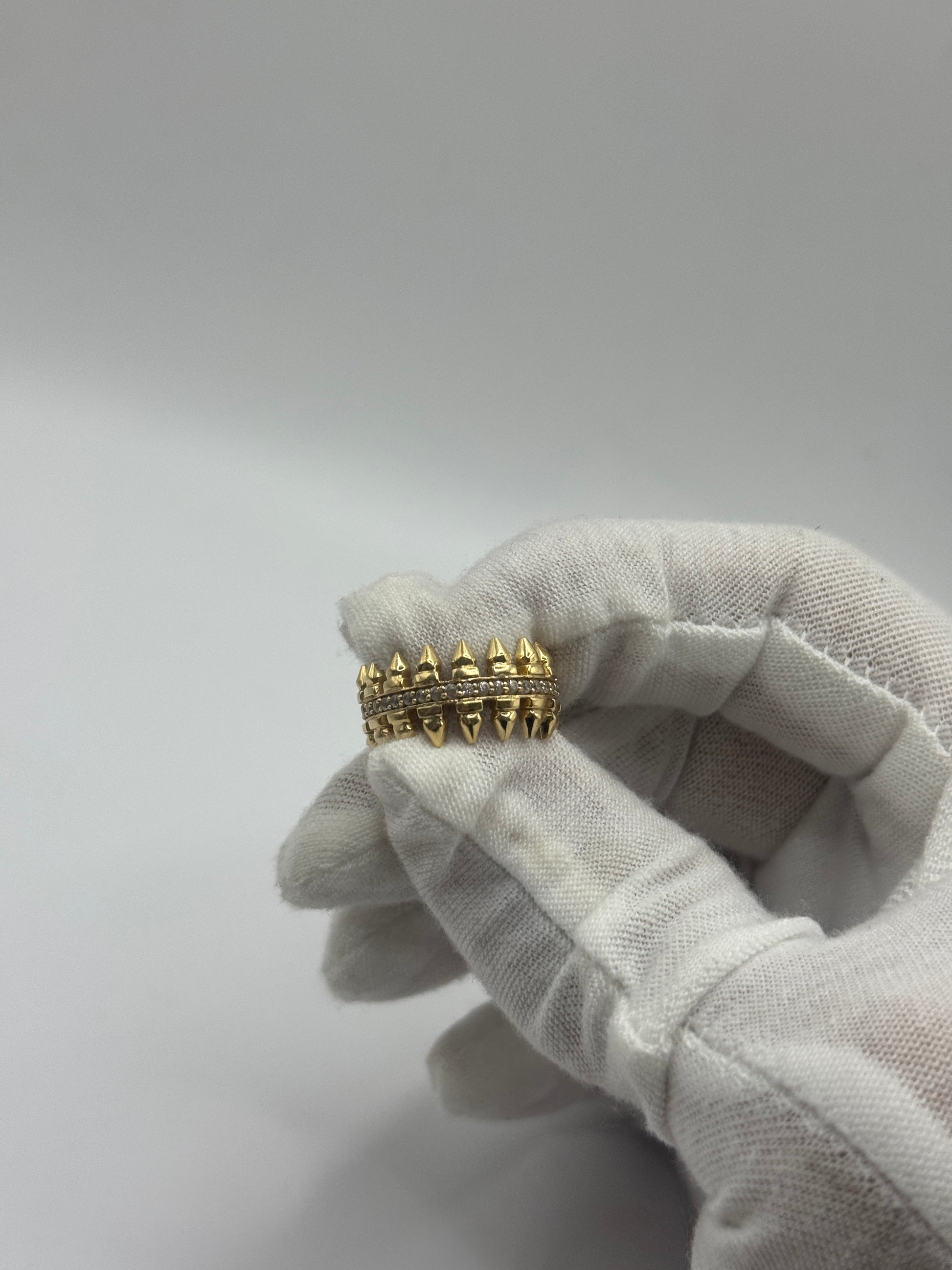 14K Gold Spiked Ring – Unisex – Size 6 with CZ